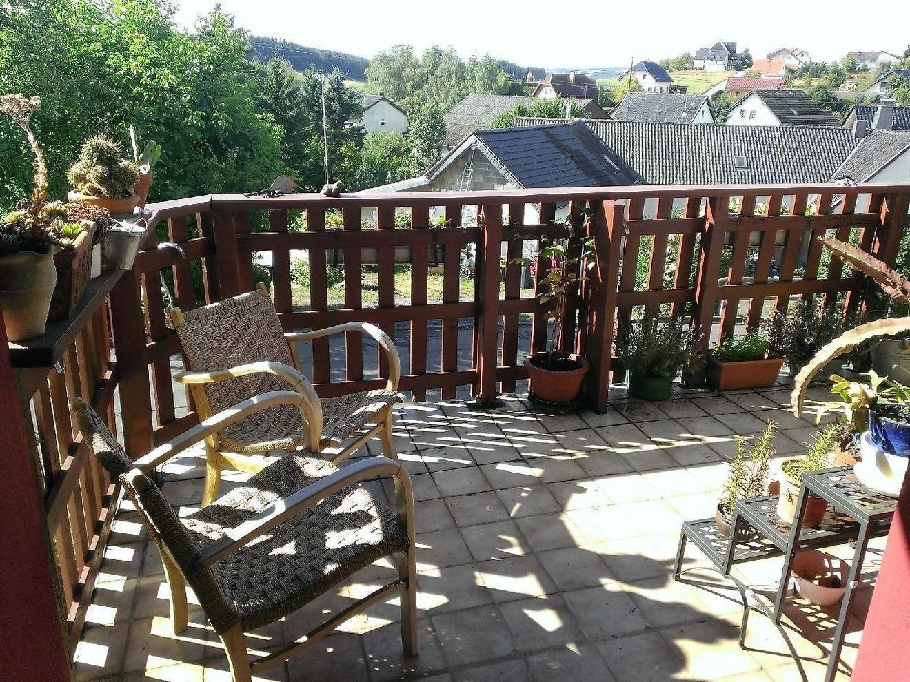 Im Außenbereich der Ferienwohnung können Sie die herrliche Luft der Eifel genießen. Haustiere sind in unserer Unterkunft herzlich willkommen, sodass Sie Ihren Urlaub zusammen mit Ihrem vierbeinigen Freund verbringen können. Dies macht unsere Ferienwohnung zu einem idealen Ausgangspunkt für ausgedehnte Spaziergänge und Erkundungstouren in die Umgebung. Für Wasserratten bietet der in 2 km Entfernung gelegene Freilinger See ausreichend Platz zum Schwimmen, Rundwandern u.v.m.