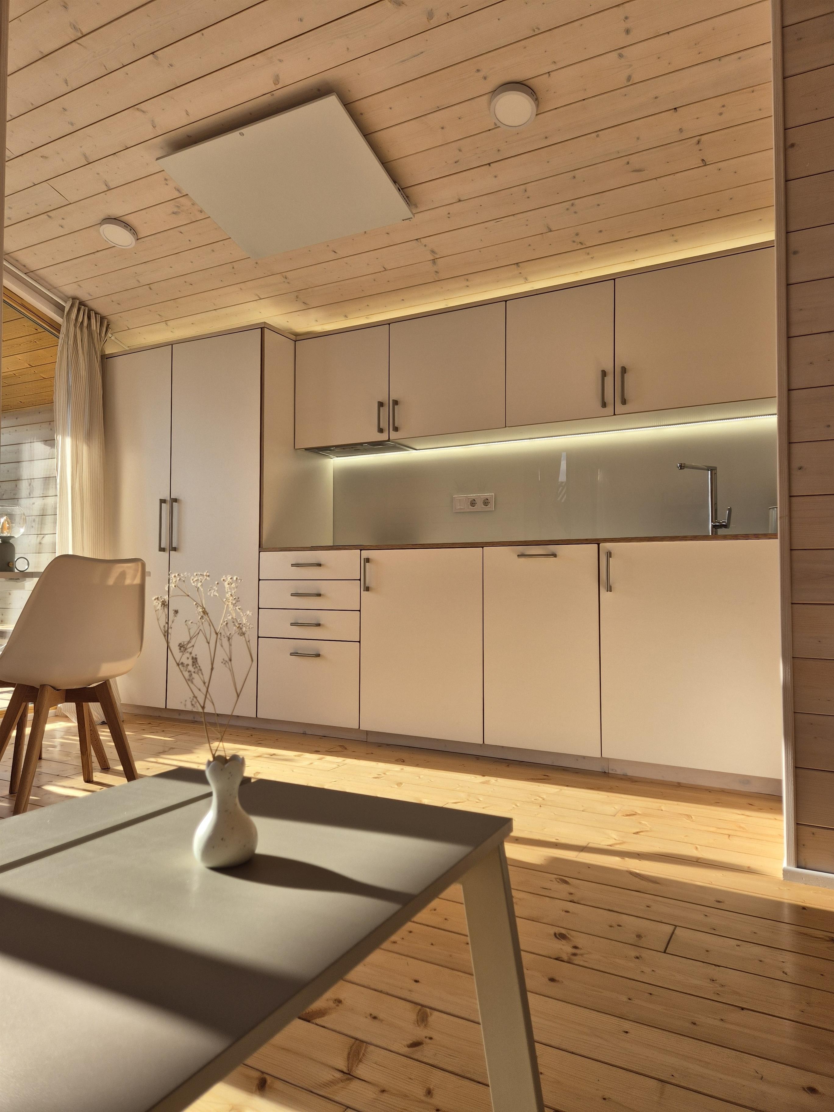 Neben dem kostenlosem WLAN und dem Smart-TV im Wohnbereich ist das Häuschen ausgestattet mit: