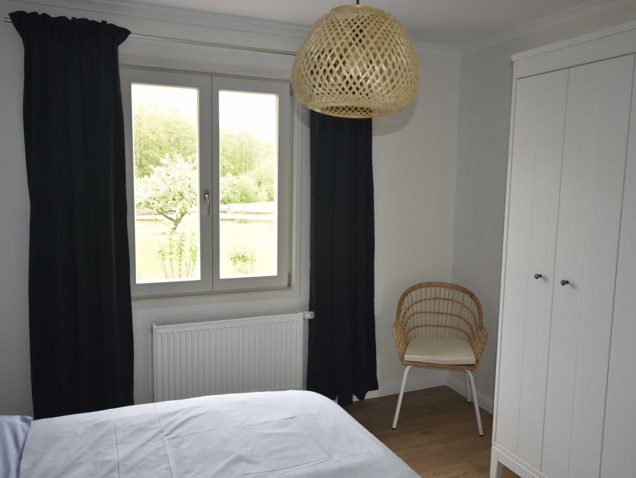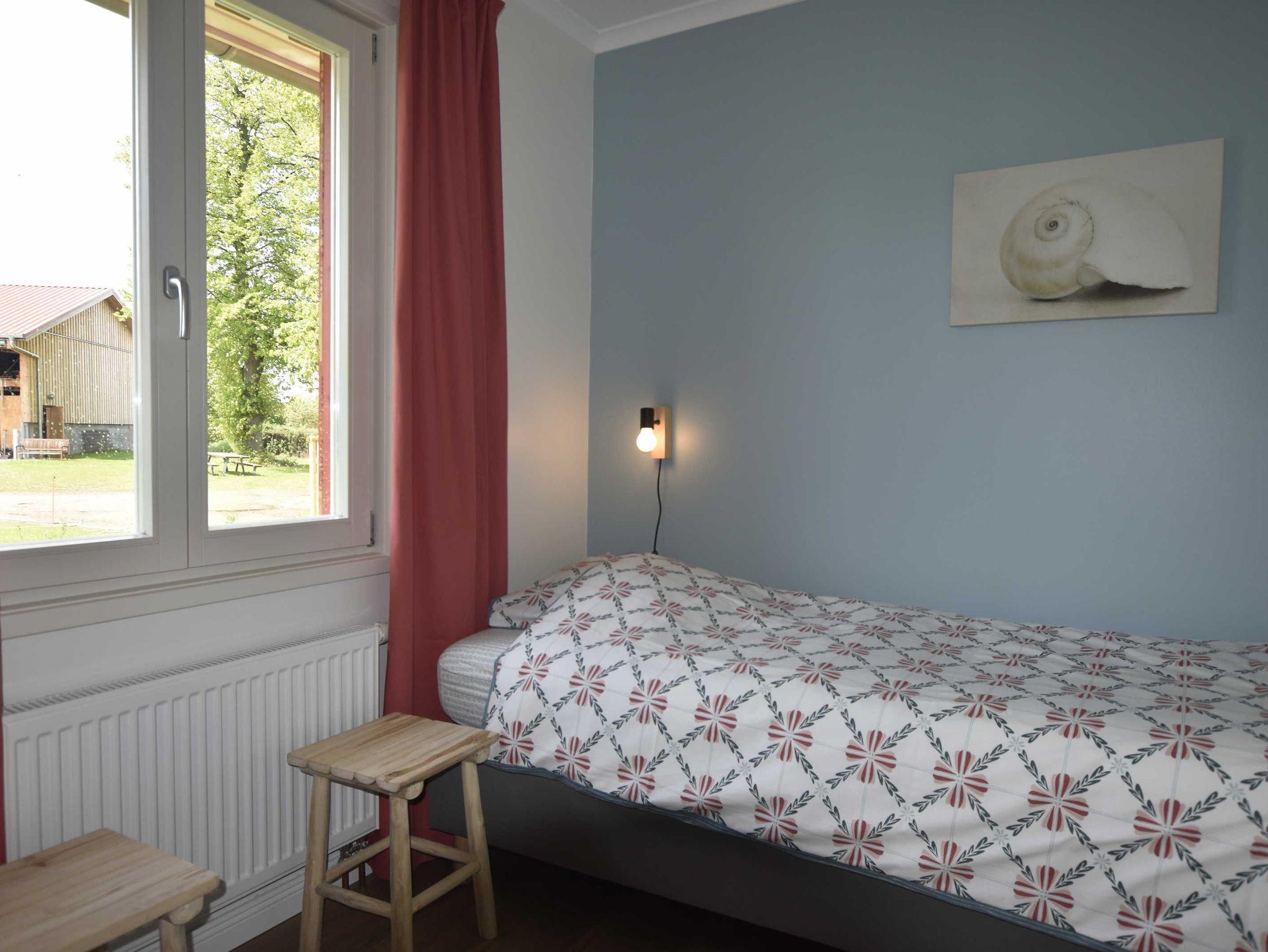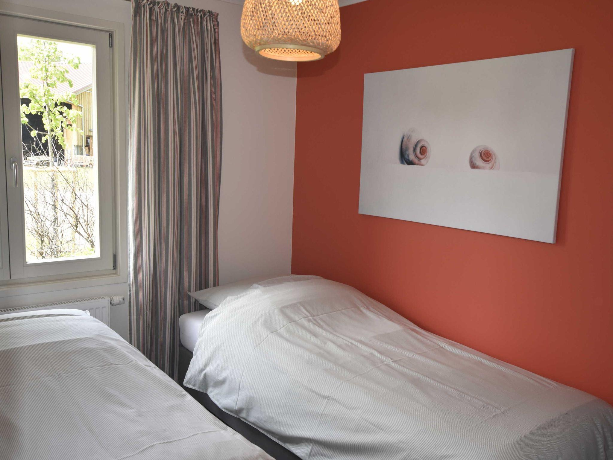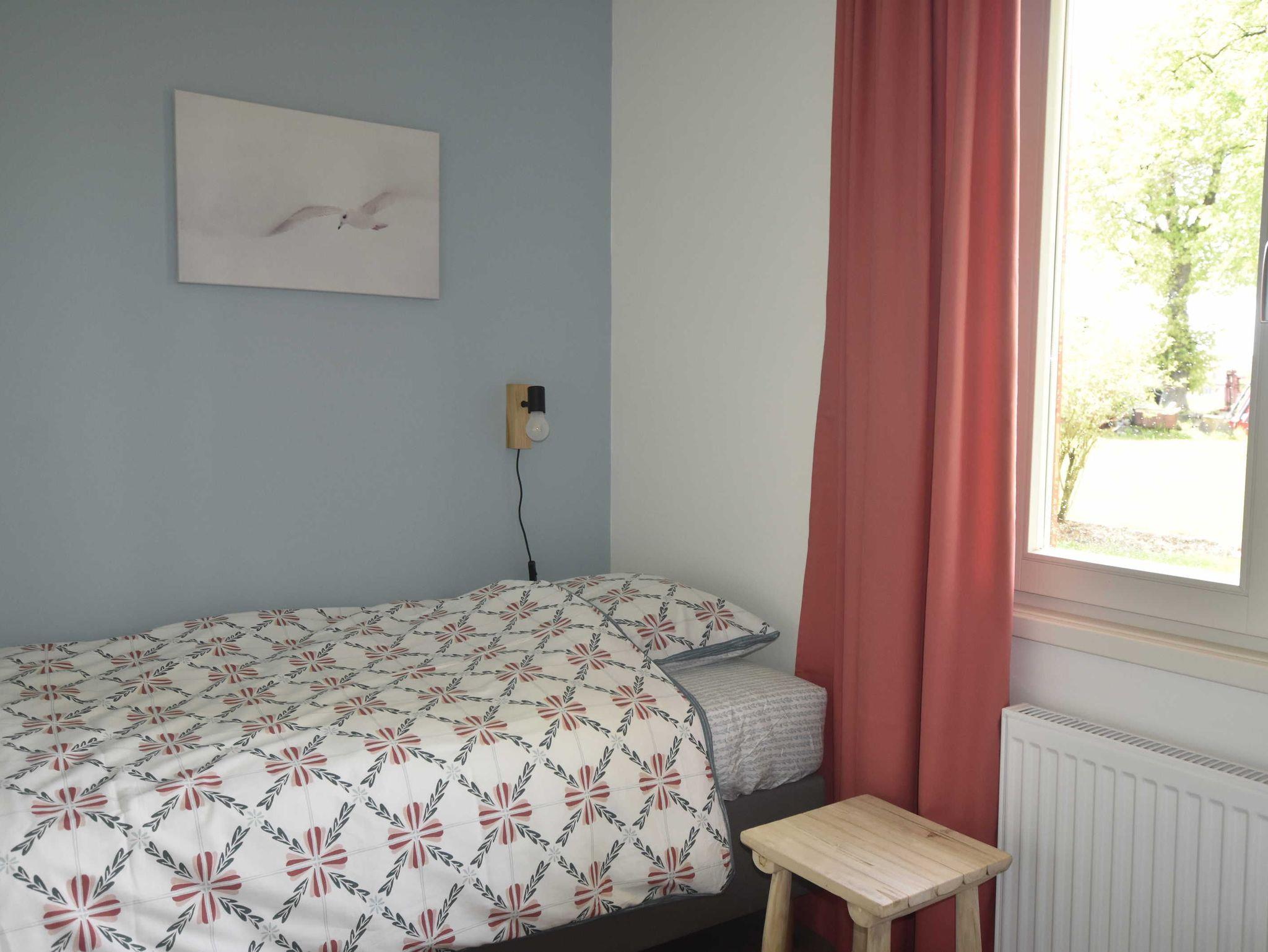 Neu gebautes (Fertigstellung April 2021) 4-Raum-Ferienhaus (94 qm) bis zu 8 Personen mit 2 Bädern. Ideal für Familien mit Kindern. Modern, farbenfroh und freundlich eingerichtet. Wohnzimmer mit integrierter Küche, großem Eßtisch und Sitzecke. Küche ausgestattet mit 4 Platten Ceranfeld, Geschirrspülmaschine, Backofen, Mikrowelle, Kaffeemaschine, Wasserkocher. 1 Schlafzimmer mit Doppelbett, 2 Schlafzimmer mit jeweils 2 Einzelbetten. Aufbettung für 7. und 8. Person im Wohnzimmer auf ausziehbarer Schlafcouch (=Doppelbett). Es gibt 2 Badezimmer; 1 Badezimmer mit Dusche, WC und Waschbecken und 1 Badezimmer mit Badewanne, WC und Waschbecken. Direkter Zugang vom Wohnzimmer zur Terrasse mit Gartenmöbel.