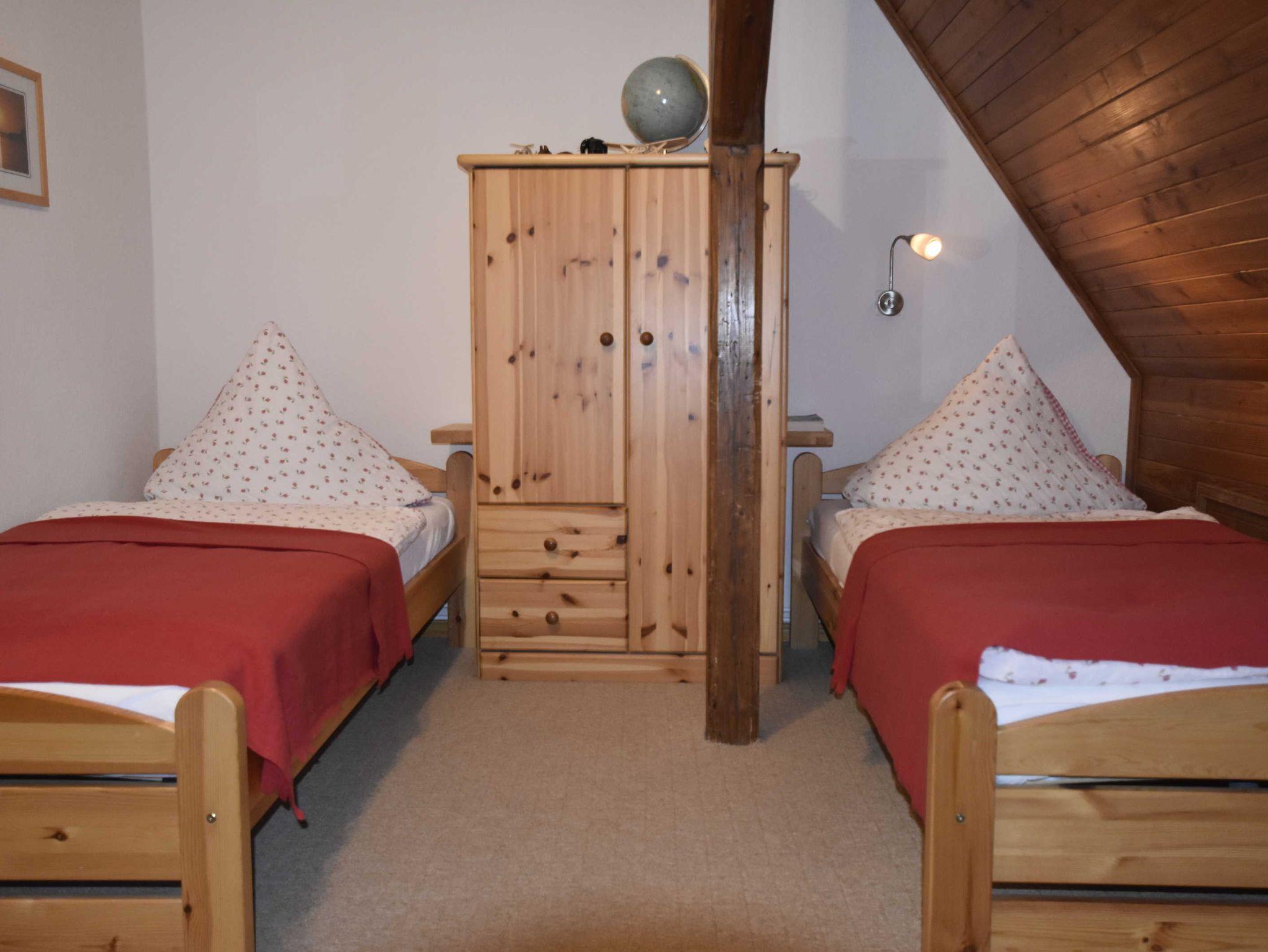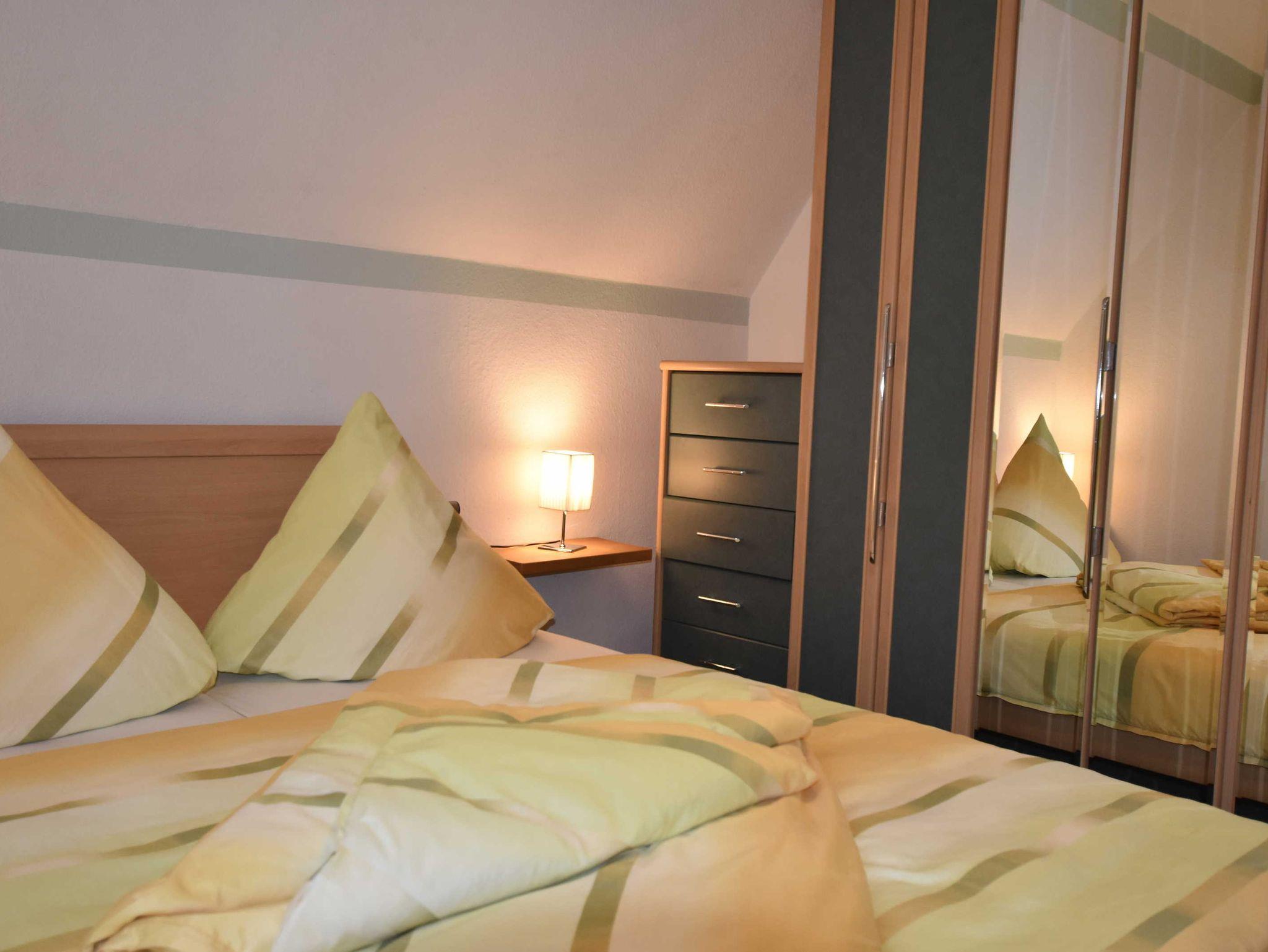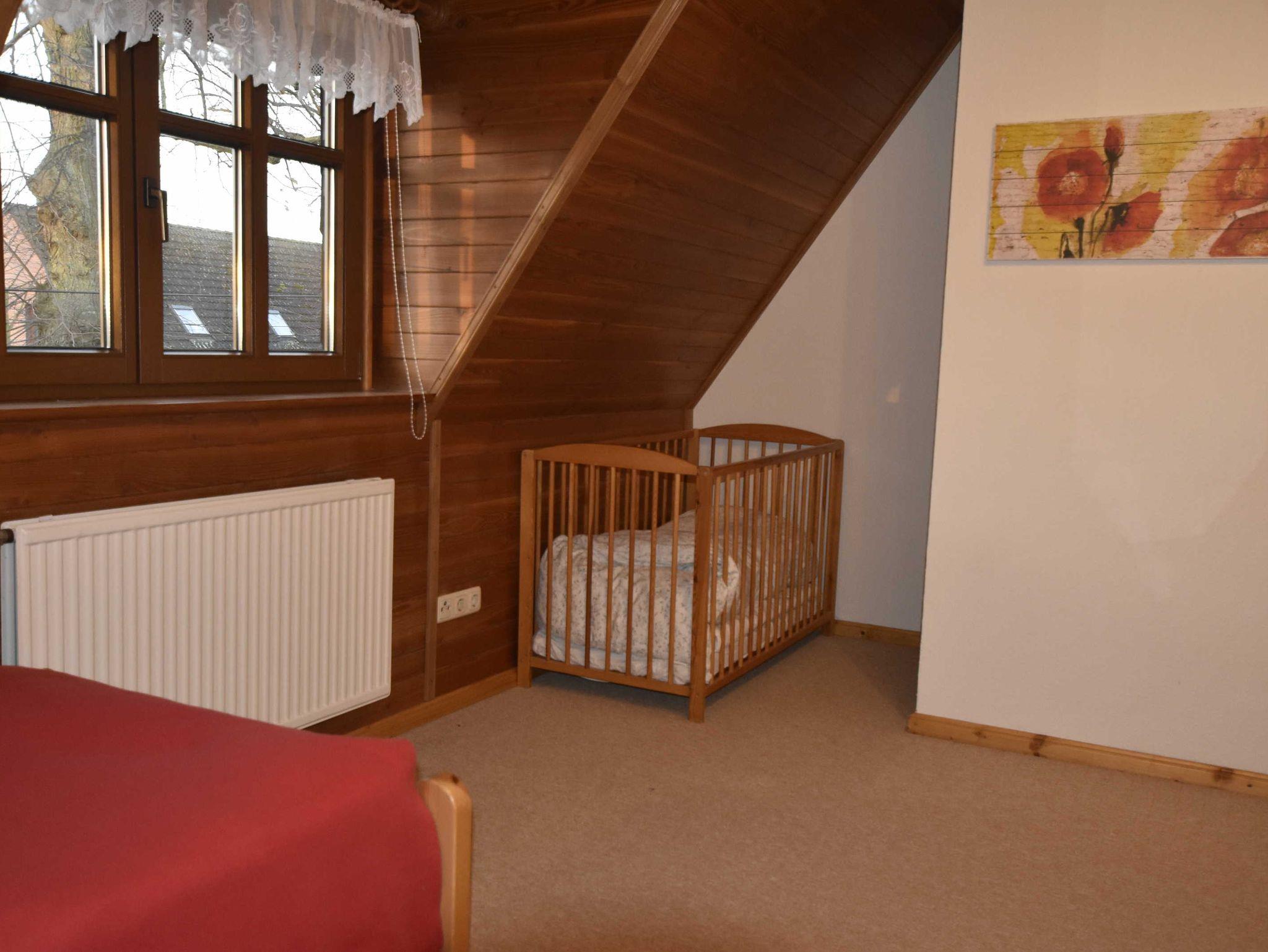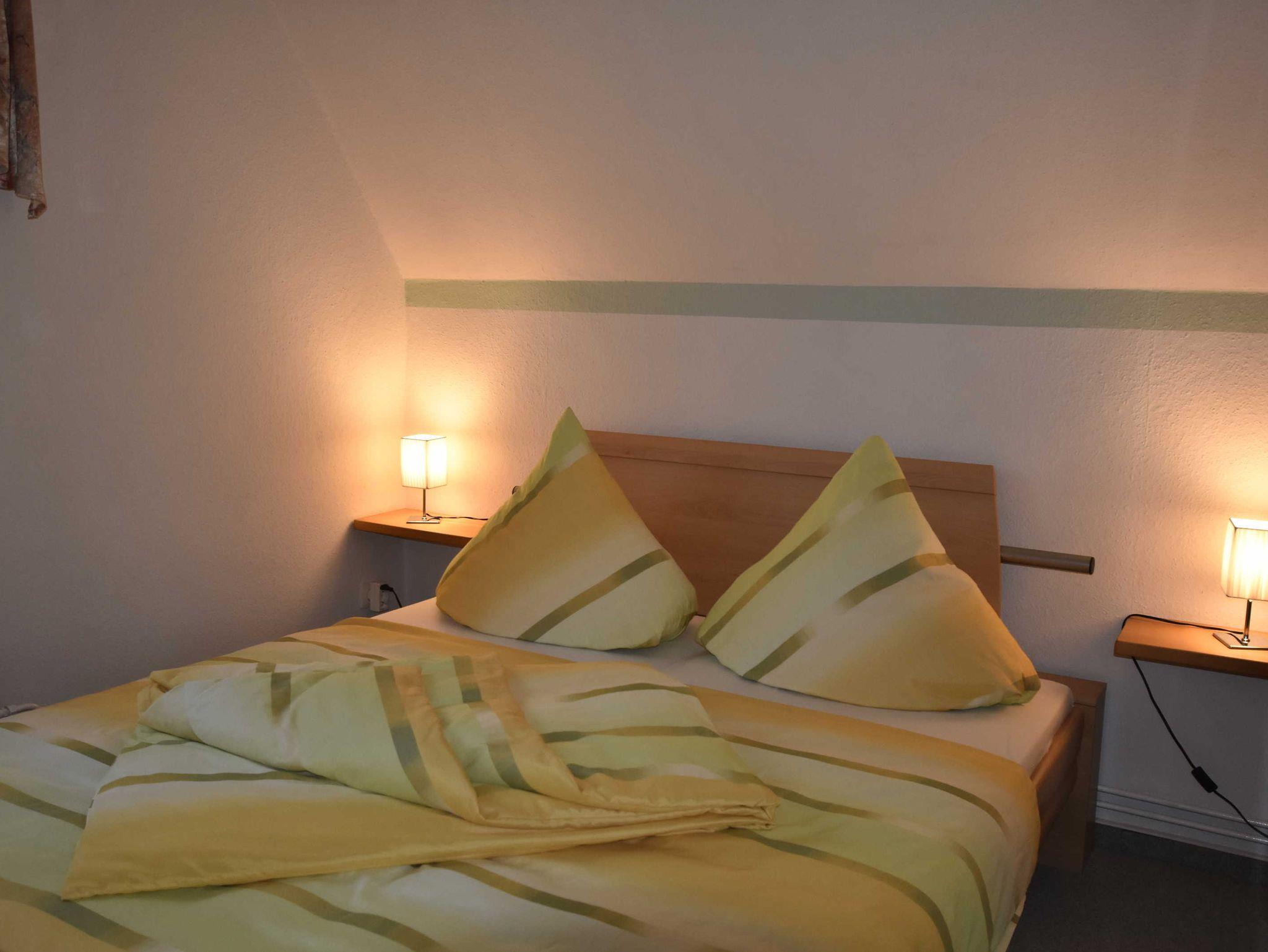 3-Zimmer-Wohnung (bis zu 4 Personen) mit separatem Eingang im Erdgeschoss. Über eine Treppe gelangt man in das Obergeschoss. Wohnzimmer mit moderner Küche, 2 Schlafzimmer, Bad mit Dusche/WC. Die Wohnung ist liebevoll eingerichtet und sehr gepflegt. Den Urlaubern steht der Garten mit Möbeln und Grill zur Verfügung.