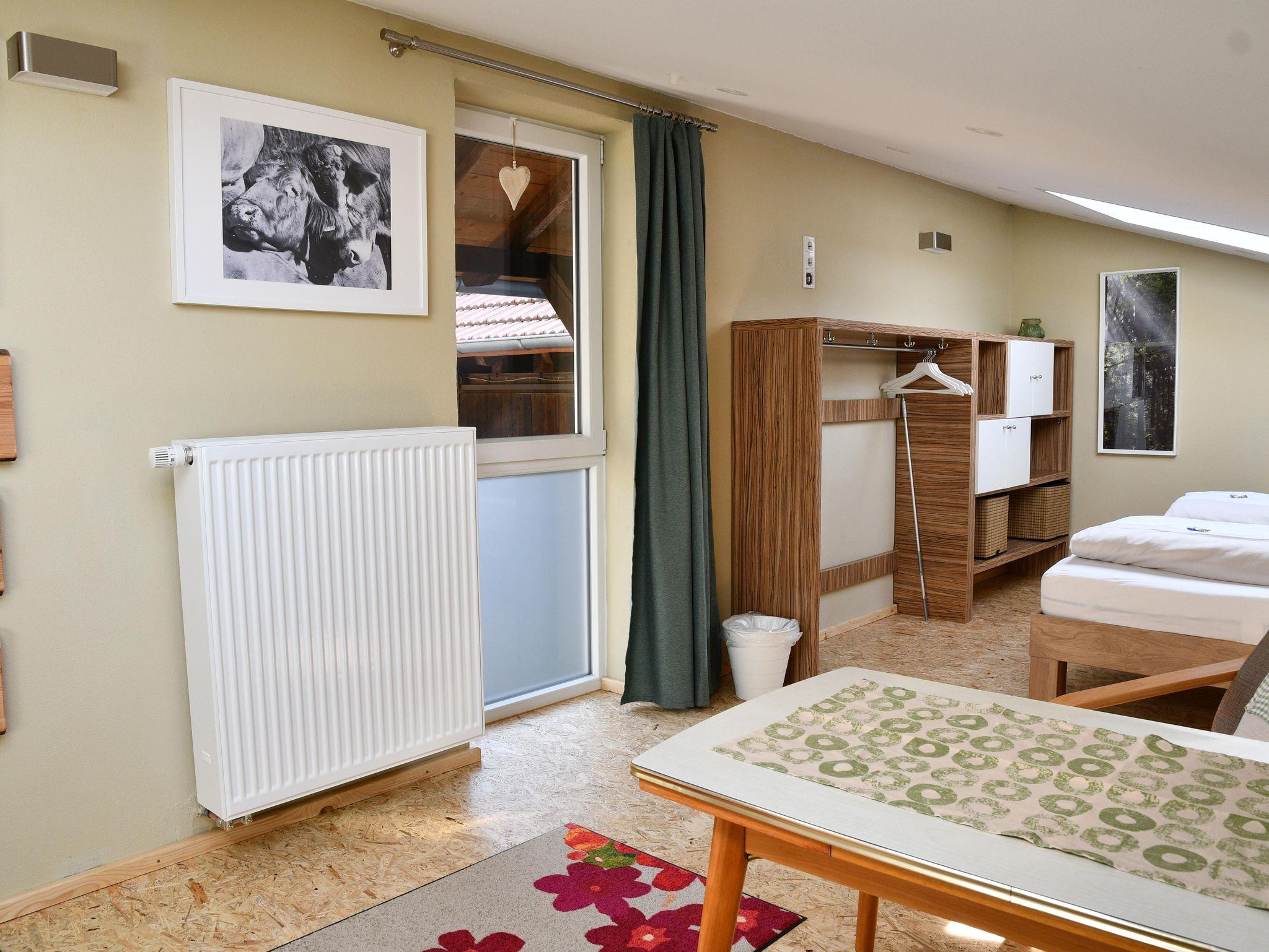 Das 5. Schlafzimmer ist über die Metalltreppe im Hof zu erreichen und verfügt über ein eigenes Bad. Diese Zimmer stellen wir Ihnen ab einer Belegung von 9 Personen kostenlos zur Verfügung. Sollten Sie das Zimmer trotzdem nutzen wollen, würden hier Zusatzkosten entstehen. Diese können Sie über unsere Homepage erfragen bzw. einsehen.