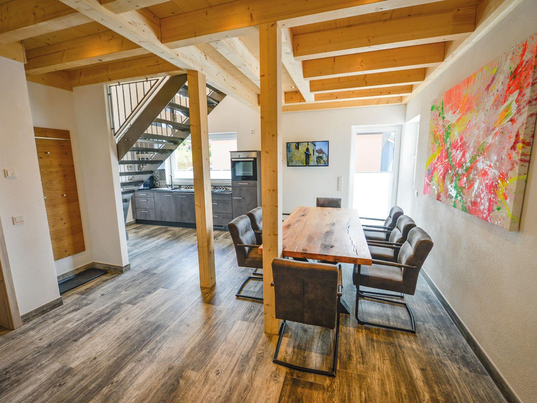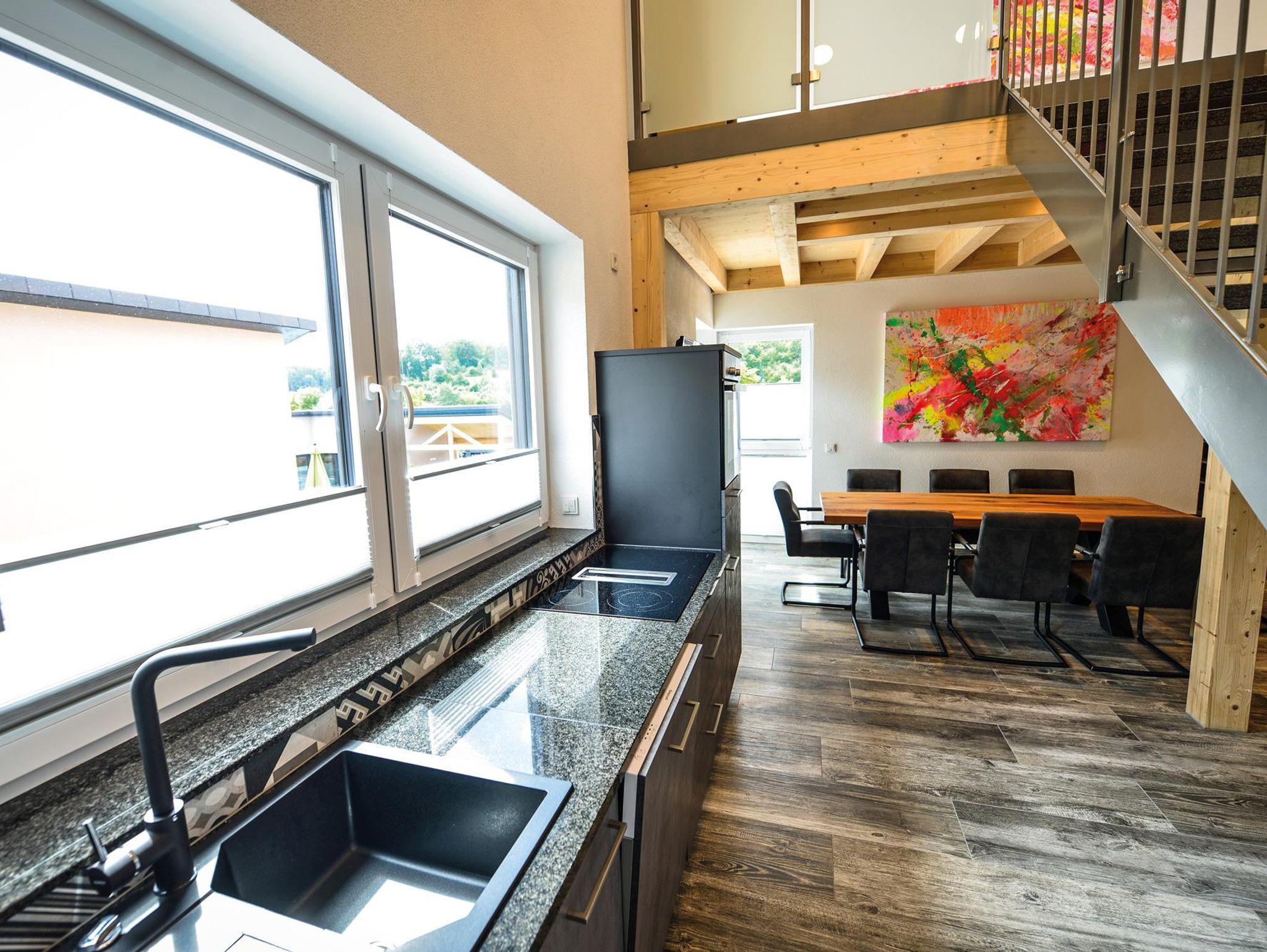 Funktional ausgestattete, offene Küche, großzügiger Essbereich und urgemütliches Schlafzimmer.