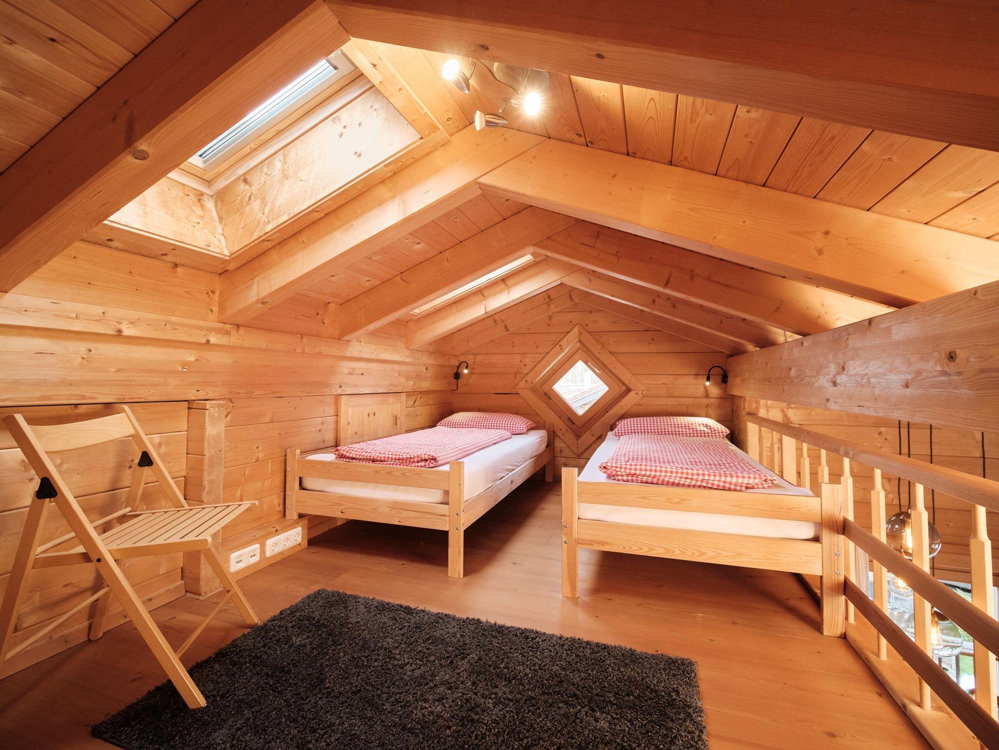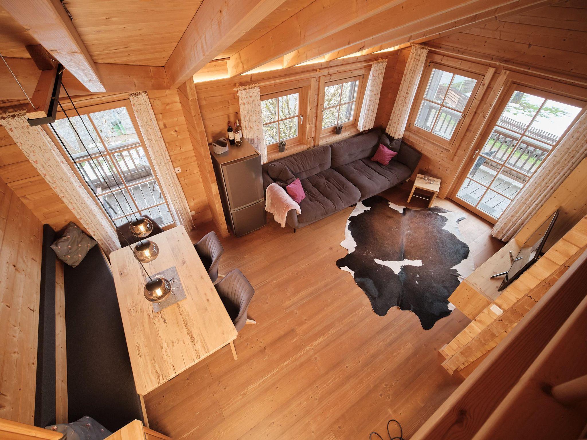 Sie hat ein Doppelzimmer, einen großen Wohn-/Hauptraum mit einer top ausgestatteten Küche und einer Schlafgalerie mit 2 weiteren Einzelbetten.