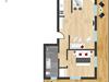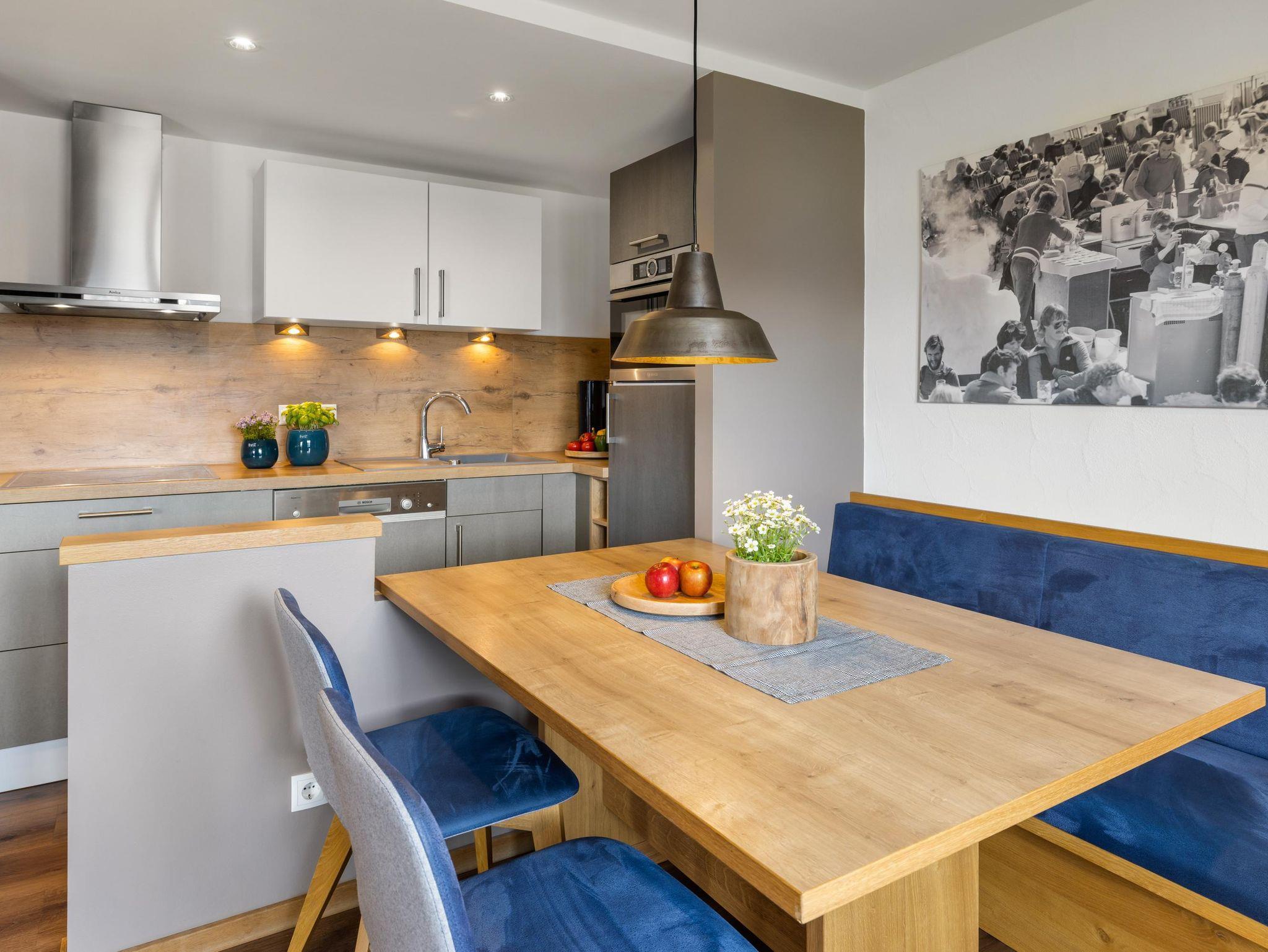 Die Wohnung im 1. Obergeschoss mit 52 m² verfügt über einen Wohnraum mit einer komplett ausgestatteten Küche, einem Esstisch, einer Sitzecke, Sat-TV, ein Schlafzimmer, Süd- und Ostbalkon und ein Bad mit Dusche und Toilette.