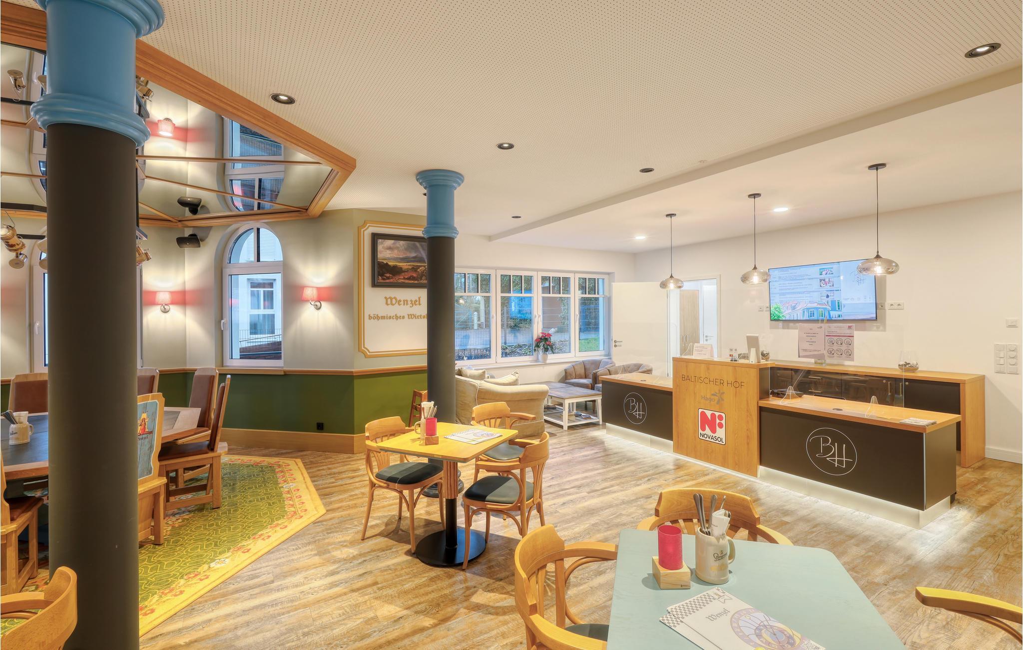 Keine 100 m vom Baltischen Hof entfernt liegt der feinsandige Ostseestrand. Hier können Sie im Strandkorb relaxen, mit den Kindern Sandburgen bauen oder mit den Füßen im Wasser spazieren gehen. Flanieren Sie entlang der Promenade und machen Sie nach der Shoppingtour in den Boutiquen eine Pause im Café. Gerade an kälteren Tagen können Sie es sich im Wellnessbereich des Baltischen Hofs gutgehen lassen: hier erwarten Sie zwei Saunen, eine Dusch-Grotte und Wärmebänke. Ein besonderes Highlight ist der Ruhebereich mit einer Aroma-Tapete aus echtem Heu, die ein ganz besonders entspannendes Flair zaubert.