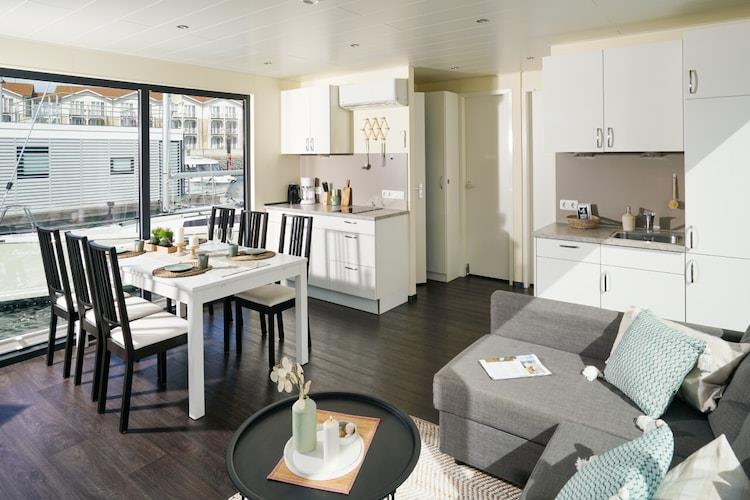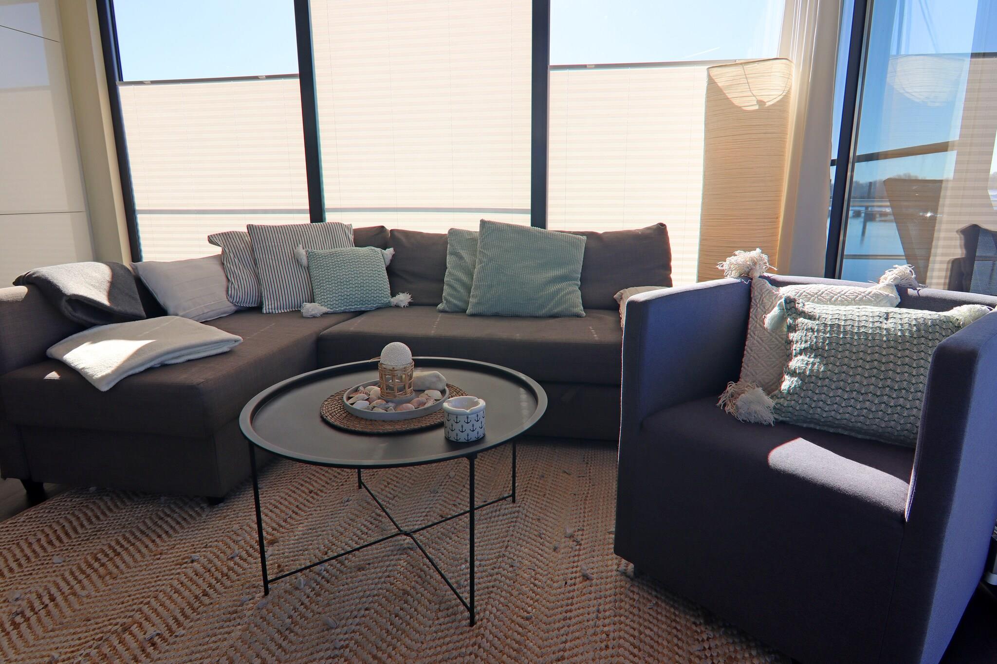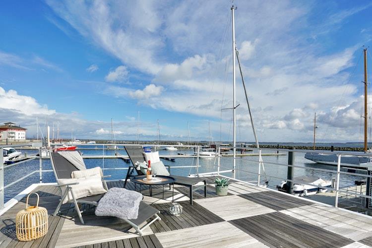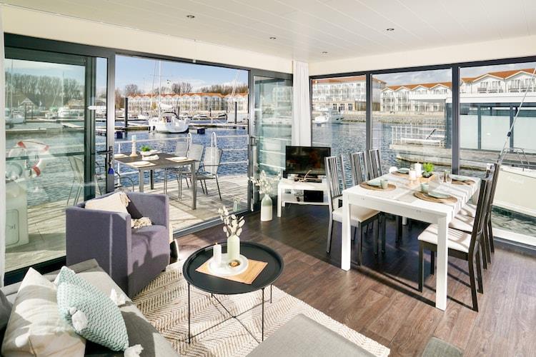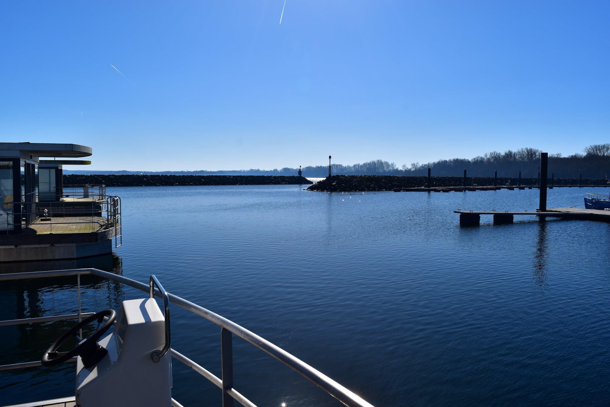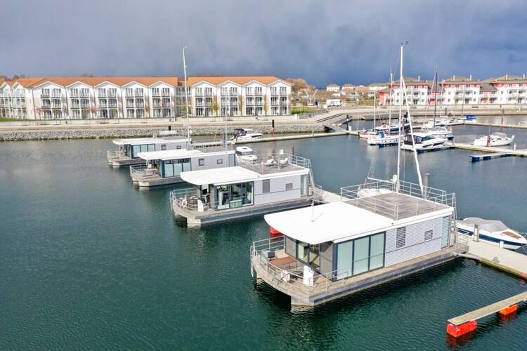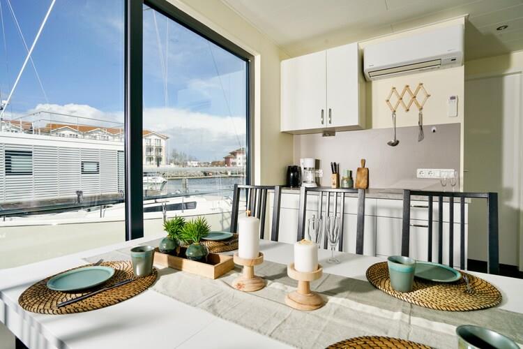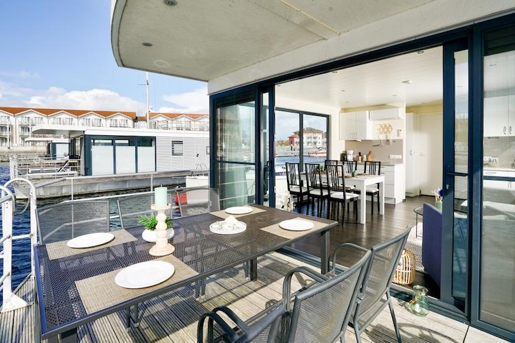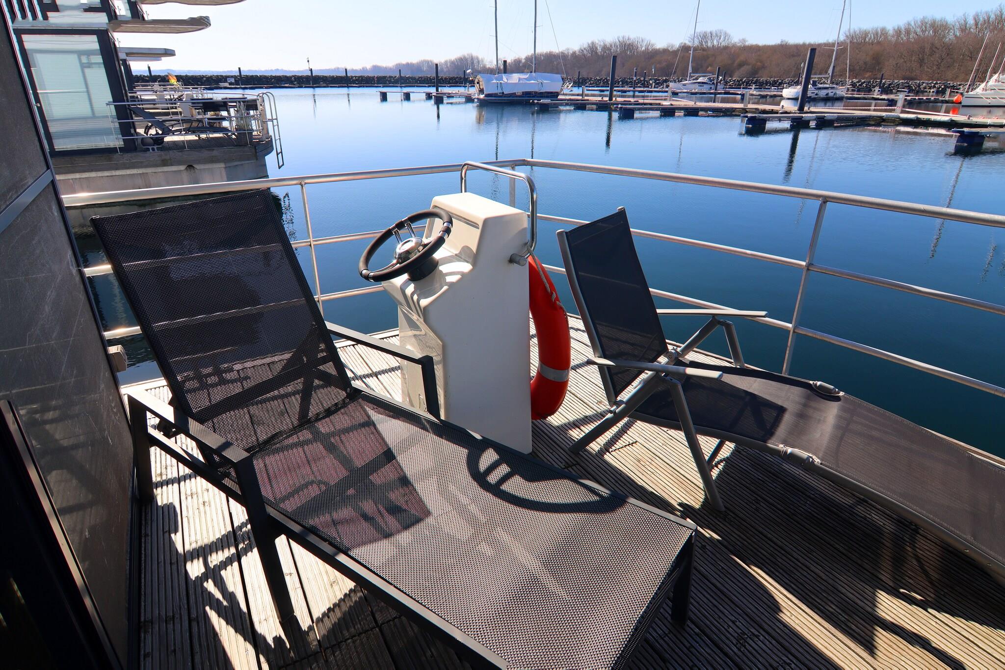 Erleben Sie Urlaub auf einem klimatisierten Hausboot mit Seeblick und Terrasse in Boltenhagen an der Ostsee.