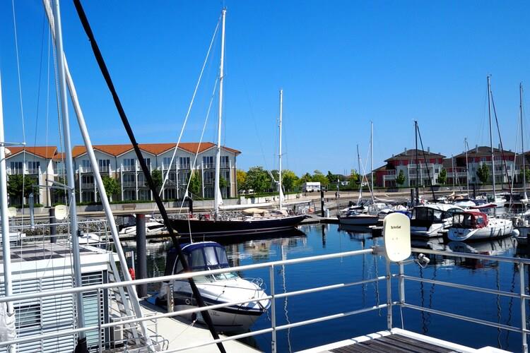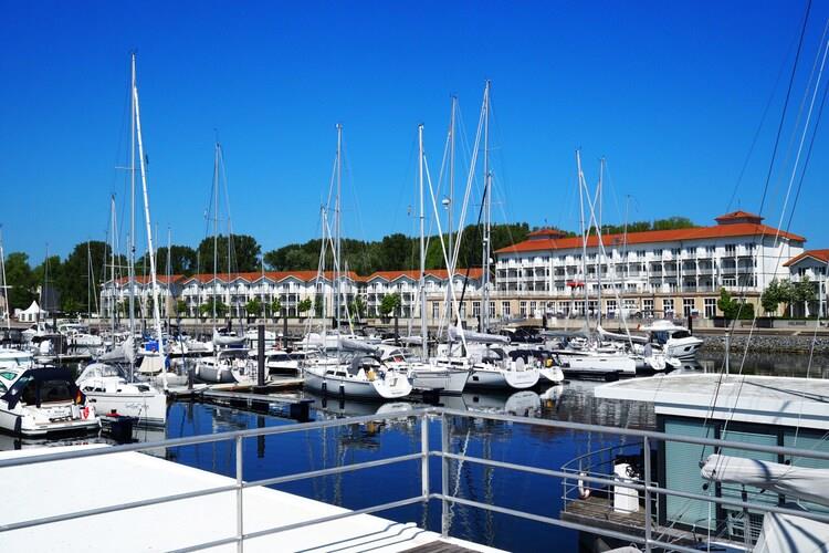 Erleben Sie erholsamen Urlaub auf einem komfortablen Hausboot in der Marina Boltenhagen mit direktem Ostseeblick.