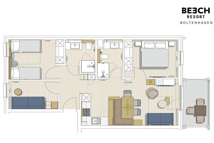 Familien-Rundum-Service im BEECH Resort Boltenhagen! Die autofreie Anlage lässt keine Wünsche offen. Eingebettet in das Ferienresort "Weiße Wiek" auf der Halbinsel Tarnewitz, direkt an der Ostsee mit eigenem Strandabschnitt, Strandbar und Promenade genießen Sie von jedem Appartement den herrlichen Blick aufs Meer. Die gemütlichen Appartements mit Balkon oder Terrasse bieten höchsten Komfort. Entdecken Sie das BEECH Resort mit seinen zahlreichen Sportmöglichkeiten und Freizeitbeschäftigungen und erleben Sie einen Urlaub, ganz auf Ihre Bedürfnisse abgestimmt. Auch kulinarisch hat das Ferienresort einiges zu bieten. Das Buffetrestaurant bietet sogar ein Kinderbuffet und einen Kinderspielbereich. Highlights inklusive: Alle verbrauchsabhängigen Energiekosten, Bettwäsche, Handtücher und Endreinigung WLAN Umfangreiche Babyausstattung Aktivitäten in der Nähe: Erkunden Sie die vielfältigen Möglichkeiten einen Urlaub unvergesslich zu machen. Gelegen an einer der schönsten Küstenabschnitte bietet das BEECHRESORT zahlreiche Freizeitaktivitäten. Verbringen Sie den Tag im Freien und lassen Sie sich bei einem Segeltörn oder bei einer Radtour mit der ganzen Familie die frische Ostseeluft um die Nase wehen. Für Kinder bieten liebevolle Betreuer und Animateure eine Betreuung der Extraklasse. Hinweis: maximale Belegung für 4 Erwachsene und 4 Kinder bis 12 Jahre.