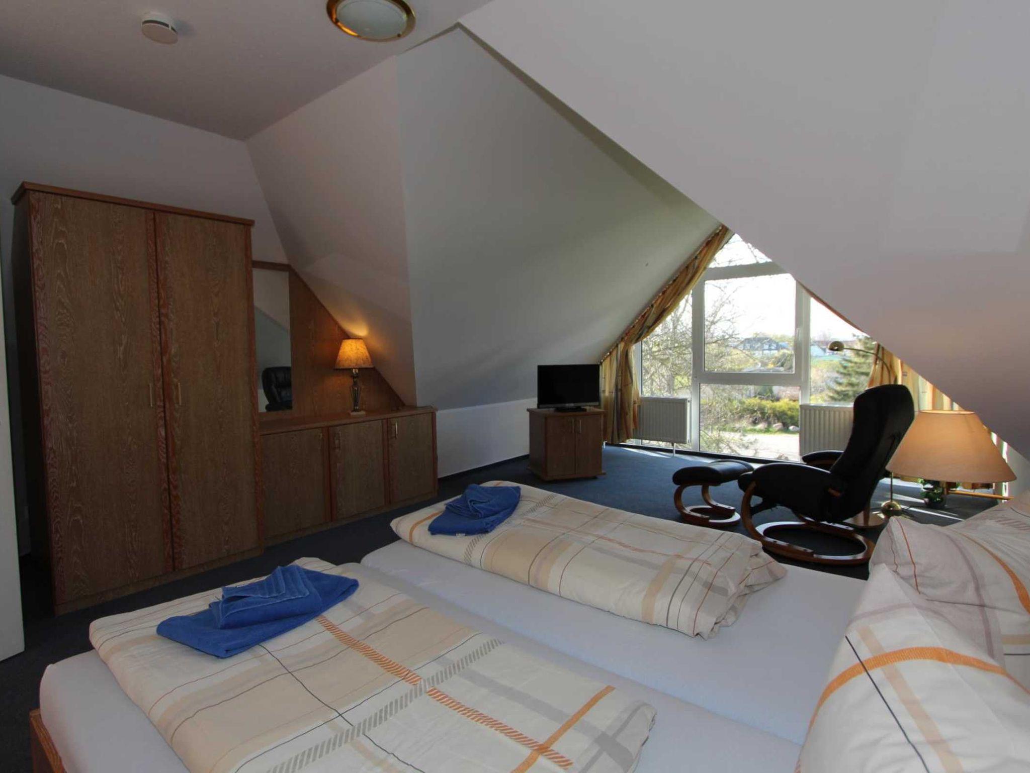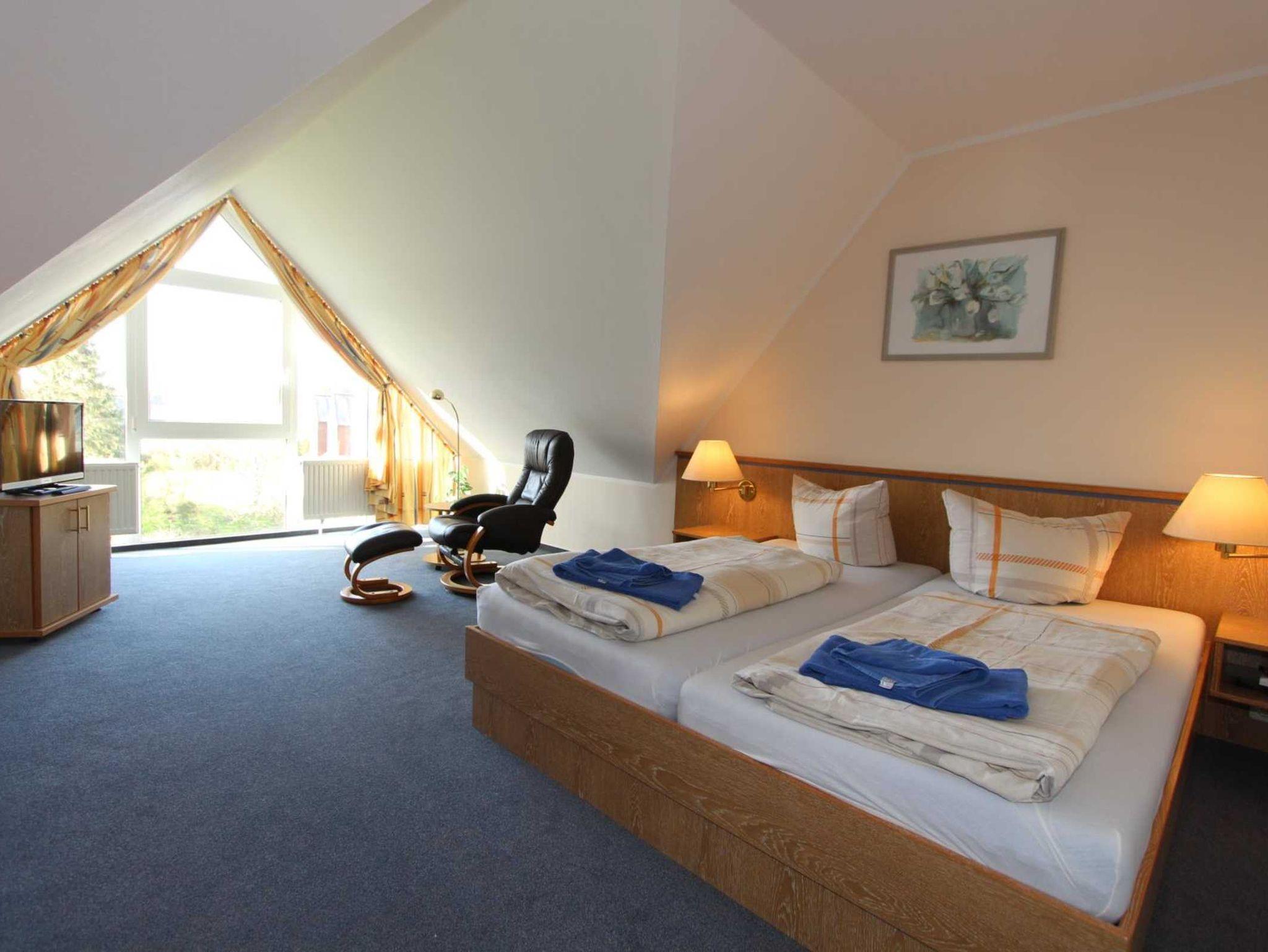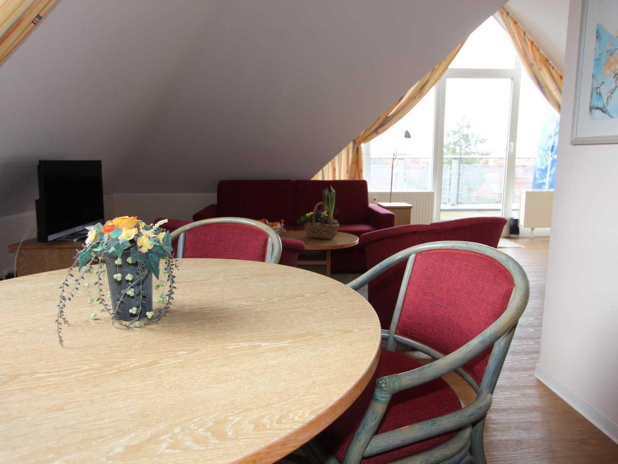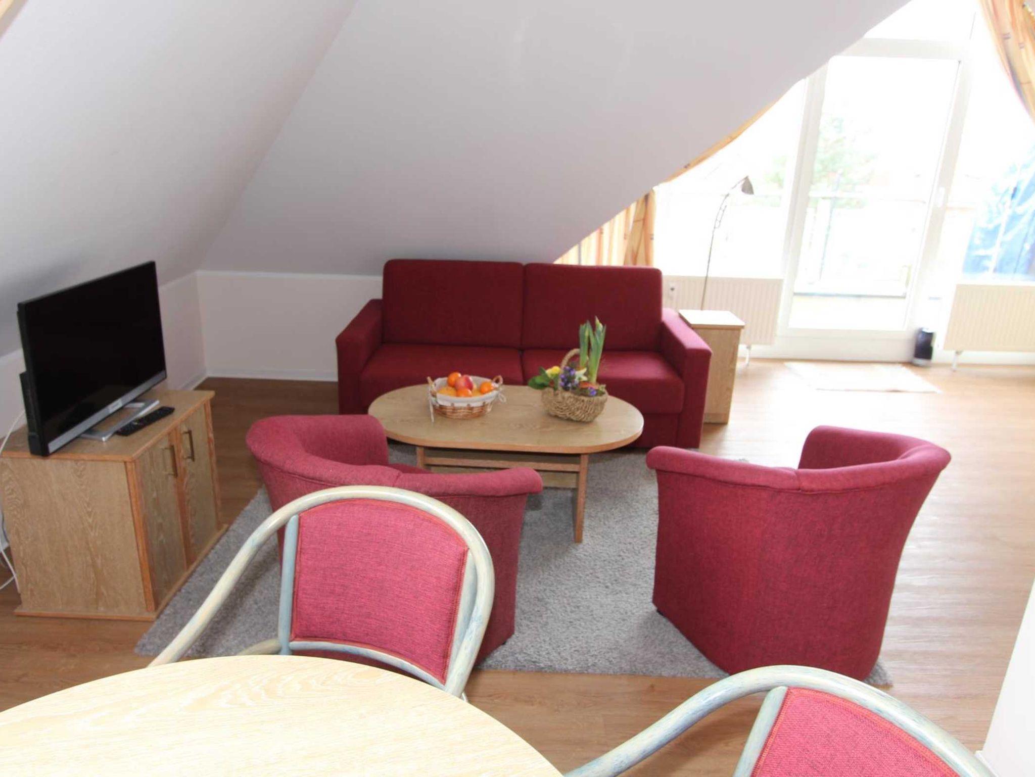 Sie wohnen in einem großzügigen 2-Zimmer-Appartement für bis zu 4 Personen auf ca. 65 m² im Spitzboden der Residenz Seestern. Das Appartement bietet ein geräumiges Schlafzimmer mit Doppelbett und zusätzlichem TV sowie einen großen, hellen Wohnraum mit bequemer Doppelbettcouch. Ein separater Essplatz und ein voll ausgestatteter Küchenbereich mit Geschirrspüler und Mikrowelle sorgen für komfortables Selbstverpflegen.