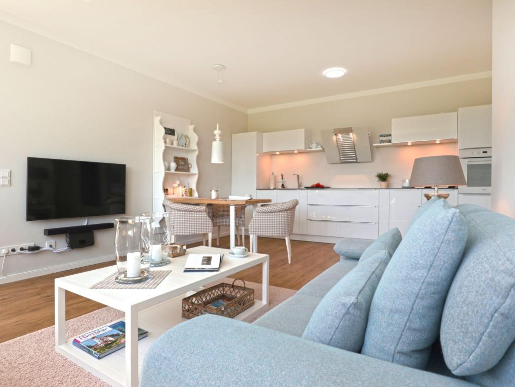 Das hochwertig eingerichtete 2 -Zimmer Feriendomizil befindet sich in der 2. Etage ? Fahrstuhl - und bietet auf großzügigen 61qm Wohnfläche den idealen Rahmen für erholsame Urlaubstage. Bis zu 2 Personen finden hier komfortabel Platz. Ein besonderer Vorzug ist der überdachte Süd-West Balkon mit Blick auf die Salzwiesen? perfekt für entspannte Stunden im Freien. Der stilvoll möblierte Wohn- und Essbereich heißt Sie mit einem Komfort Sofa sowie einem Esstisch willkommen. Für Unterhaltung sorgen insgesamt zwei Fernseher und kostenfreies WLAN. Die hochwertige, offen integrierte Küchenzeile lässt keine Wünsche offen: Herd, Backofen, Dunstabzugshaube, Kühlschrank, Kaffeemaschine, Wasserkocher, Toaster, Geschirrspüler und weitere praktische Küchenutensilien ermöglichen eine komfortable Selbstversorgung. Genießen Sie Ihre Mahlzeiten am Esstisch oder in den wärmeren Monaten auf dem saisonal möblierten Balkon, wo Sie es sich mit Blick auf die Haffwiesen gemütlich machen können. Das separate Schlafzimmer ist geräumig und verwöhnt mit einem Doppelbett in Überlänge 2,10m, einem Kleiderschrank sowie 2. TV-Gerät. Der Urlaubstag beginnt in einem modernen Badezimmer mit guter Bewegungsfreiheit und ebenerdiger Dusche, Waschtisch mit Unterschrank, WC sowie einer praktischen Handtuchheizung. Zur familienfreundlichen Ausstattung zählen ein Kinderhochstuhl und ein Kinderreisebett. Im Abstellraum innerhalb der Wohnung steht ein Waschtrockner zur Verfügung. Ein reservierter Außenstellplatz steht für Ihren PKW bereit. Für mitgebrachte Fahrräder gibt es abschließbare Unterstellmöglichkeiten sowie Fahrrad E-Ladestationen. Haustiere und Rauchen sind in dem Ferienappartement nicht erlaubt.