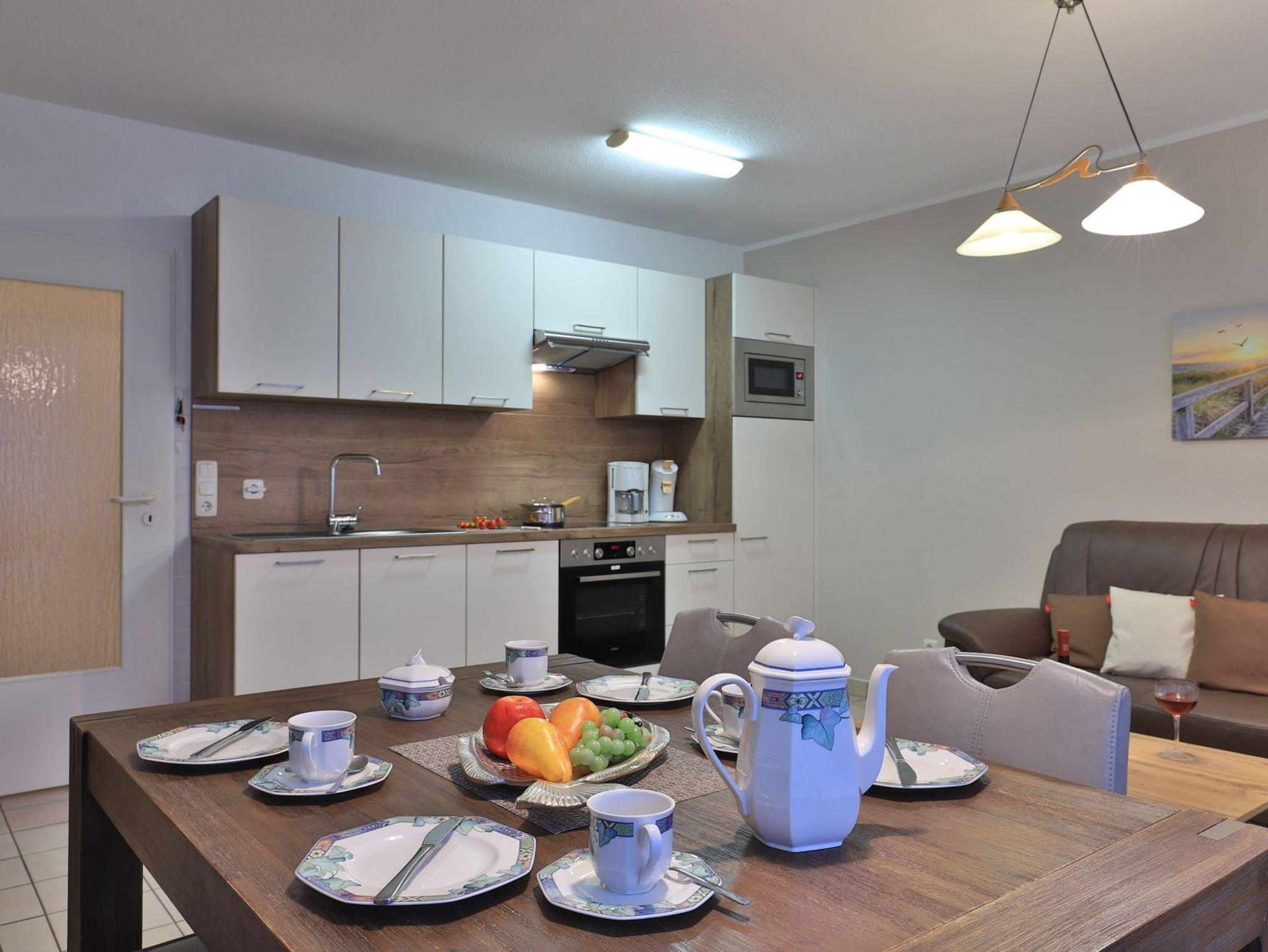 Die 2-Zimmer Ferienwohnung ?Likedeeler 29? mit Balkon, besitzt eine Wohnfläche von 50qm und ist für eine Belegung mit bis zu 2 Personen ausgestattet. Für technische Unterhaltung können Sie den Fernseher und Radio nutzen zudem steht WLAN kostenfrei bereit. Im wohnlich komfortabel möblierten Wohn-/Essbereich empfängt Sie ein schönes Sofa, Ruhesessel sowie ein Esstisch. Die in den Wohnbereich integrierte Wohnküche ist offen integriert und ermöglicht die Eigenversorgung mit: Ceranherd, Backofen, Mikrowelle, Dunstabzug, Kühlschrank mit integr. Gefrierfach, Geschirrspüler, Kaffeemaschine, Wasserkocher, Toaster usw. Ihre Urlaubsmahlzeiten können Sie bequem am Esstisch zu sich nehmen. An wärmeren Tagen genießen Sie den saisonal möblierten Balkon in südliche Ausrichtung. Im separaten Schlafzimmer mit bodentiefen Fenstern, erwartet Sie ein Doppelbett und auch ein geräumiger Kleiderschrank für die Urlaubsgarderobe. Das Duschbad ist mit Waschtisch, Föhn, WC sowie einer Waschmaschine ausgestattet. Ebenso können Sie ein Bügeleisen und Bügelbrett nutzen. Für Familien mit Kleinkind steht ein Kinderhochstuhl, Kinderbett bereit. Allen Gästen des Hauses stehen im Untergeschoss Waschmaschine und Wäschetrockner gegen Gebühr zur Verfügung. Ihr Fahrzeug parken Sie in der hauseigenen Tiefgarage auf einem fest zugeordneten Stellplatz. Mit dem Fahrstuhl gelangen Sie zu den Wohnungsetagen.