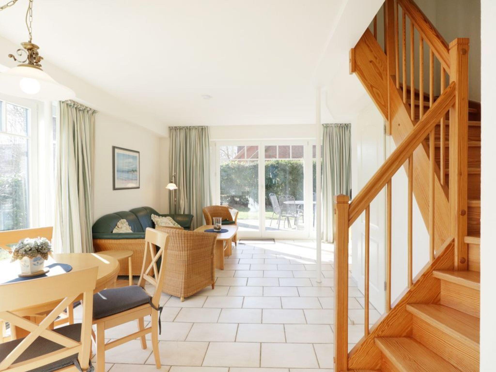 Das 3 Zimmer Endreihenhaus ?Seemöwe? mit zwei Terrassen, bietet eine komfortable Ausstattung sowie eine großzügige Wohnraumaufteilung auf 61qm. Eine Belegung ist mit max. 4 Personen möglich. Hell und freundlich empfängt das Erdgeschoss, wo eine Fußbodenheizung für wohlige Wärme sorgt. Über einen Windfang mit Garderobe betritt man den geräumigen Wohn-Essbereich mit Fernseher und DVD Player, Musikanlage ebenso die gut ausgestattete separate Küche. Im Küchenbereich mit Geschirrspüler, 4 Feld Ceranherd mit Backofen, Mikrowelle, Dunstabzug, Kaffeemaschine, Toaster usw. befindet sich auch ein kleiner Erker mit Frühstückstisch und Blick auf den Naturteich. Zwei separate Schlafzimmer (eines mit TV Gerät) mit jeweils zwei Schlafgelegenheiten und Laminat Fußboden liegen im Obergeschoss des Hauses, wie auch das geräumige Duschbad. Im Kellerbereich des Hauses können Waschmaschine und Wäschetrockner gegen Gebühr genutzt werden. Ein separater Abstellraum ist vorhanden. Der reservierte PKW Stellplatz befindet sich direkt am Ferienhaus. Familien mit Kindern verbringen hier einen erholsamen Urlaub umgeben von viel Natur. Gäste mit Hund sind herzlich willkommen. In nur ca. 20 Gehminuten oder mit dem Bus Shuttle ist der quirlige Ortskern von Boltenhagen zu erreichen.