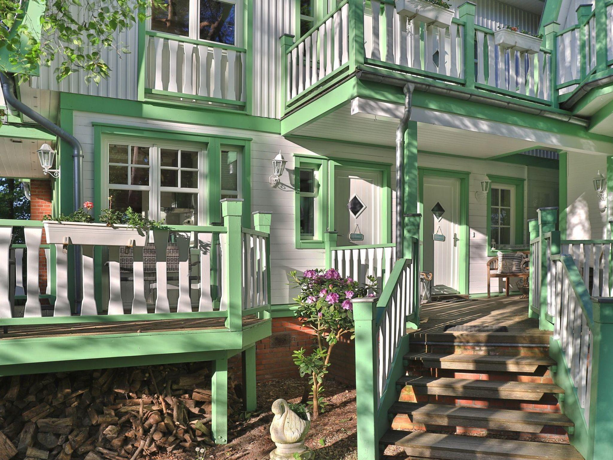 Wellenrauschen inklusive. In dieser Traumvilla wohnen Sie nur 30m zum Strand. Die vollständig sanierte Villa im Landhausstil der 20iger Jahre, beheimatet sieben exklusive Suiten je Haus. Die edlen Appartements bieten überwiegend Seeblick, sind teilweise mit Kaminofen ausgestattet und bieten Raum für 2 bis 4 Gäste. Bezogene Betten und Handtücher bei Anreise inklusive. Sämtliche Wohnungen verwöhnen mit Balkon, bzw. zwei Balkonen oder ggf. Balkonterrasse mit Gartenzugang. Einige Suiten sind Maisonetten Wohnungen. Das anmutige Landhaus ist umgeben von einem 2000qm Waldpark mit Kiefern und Rhododendron. Kostenfreies WLAN und PKW-Außenstellplätze auf dem hauseigenen Grundstück. Keine Haustiere. Nichtraucher.