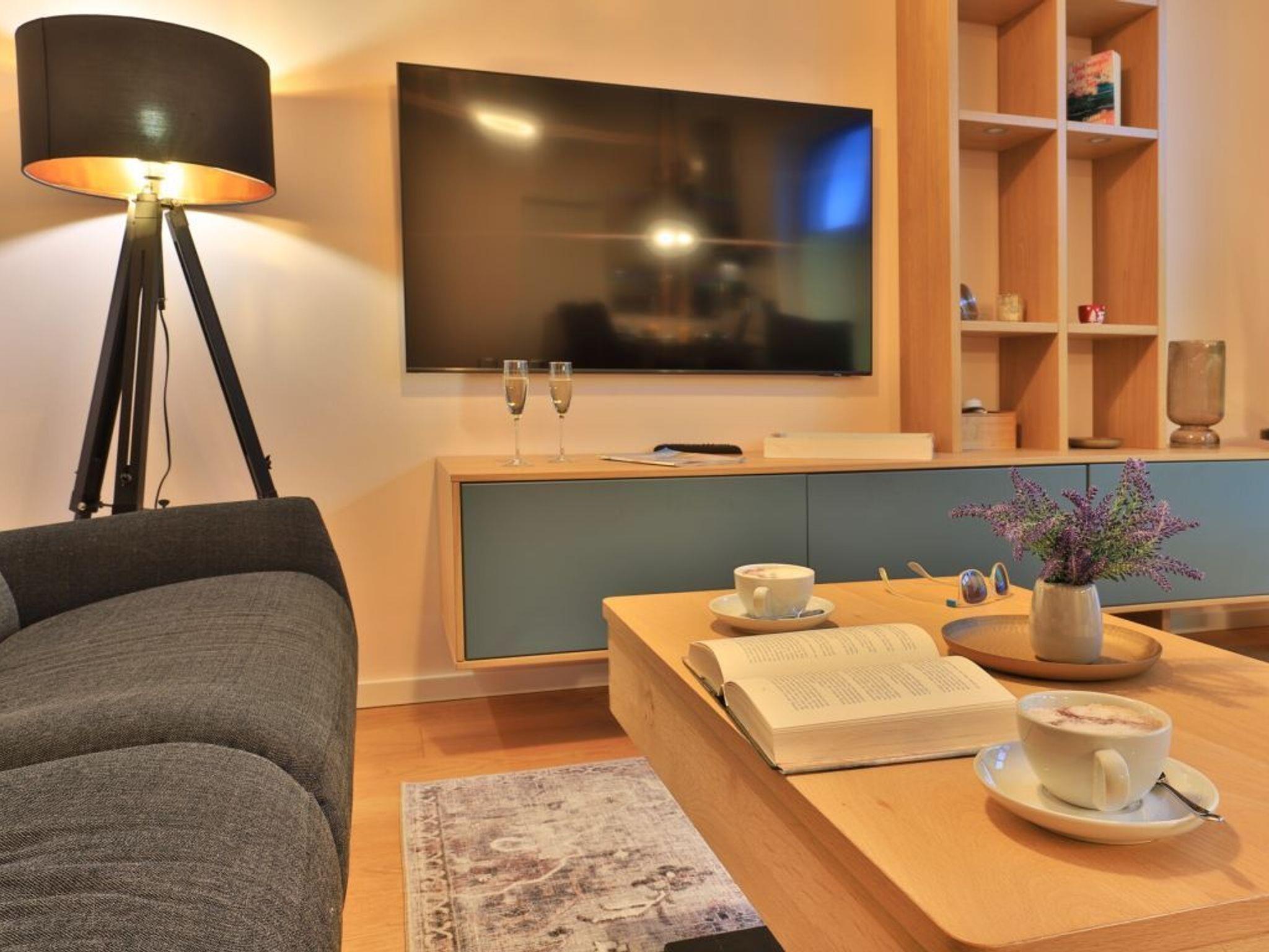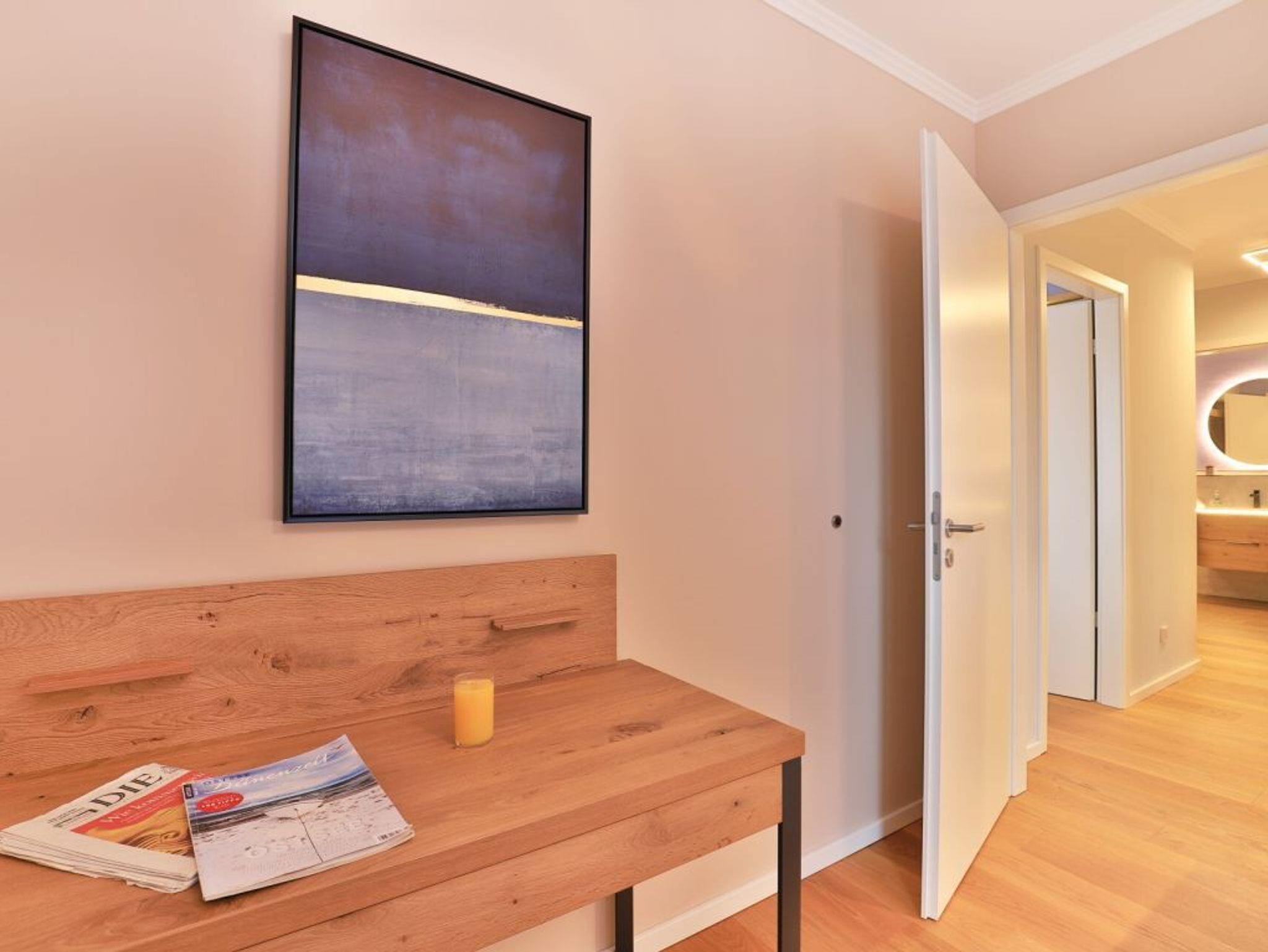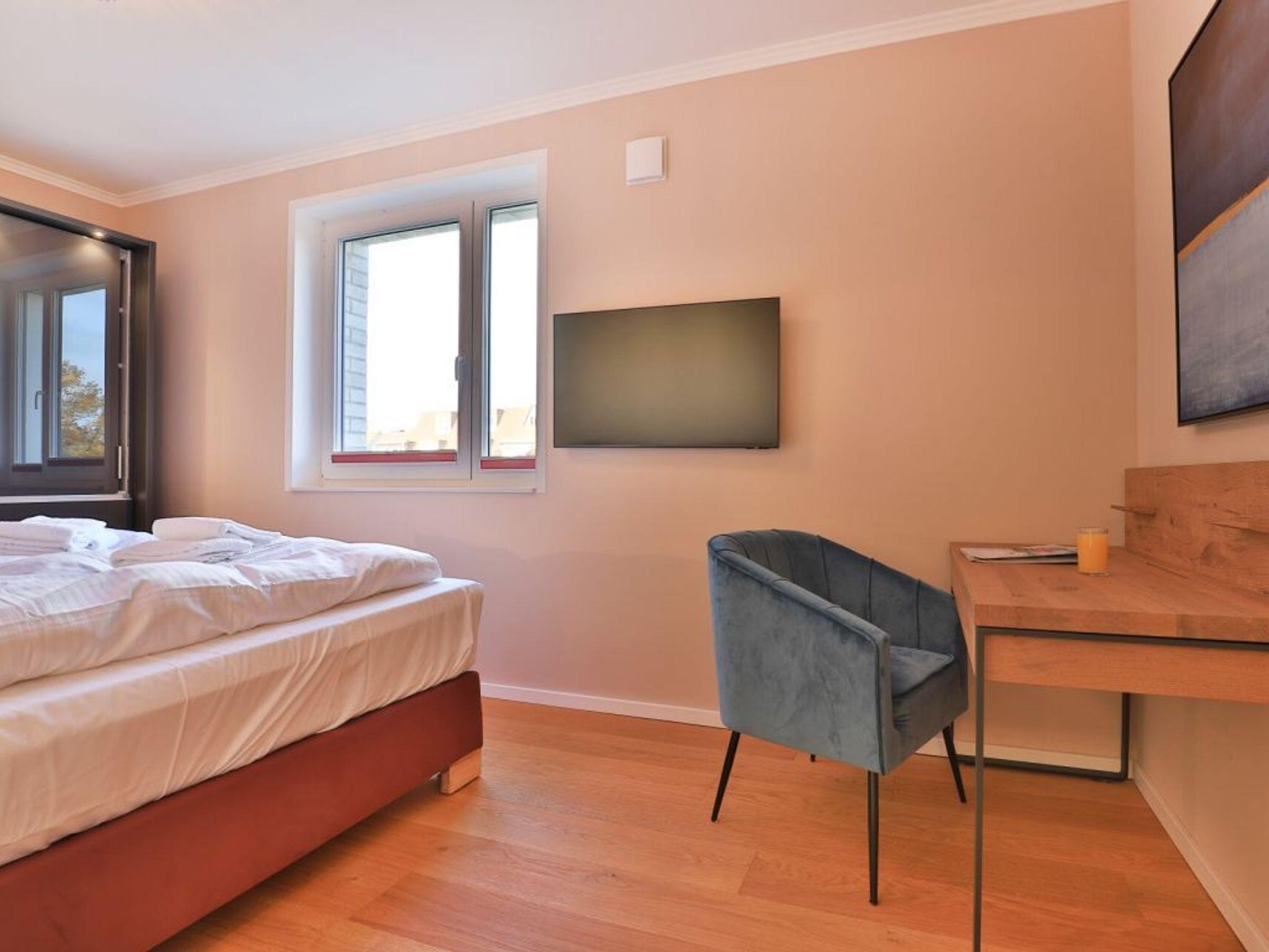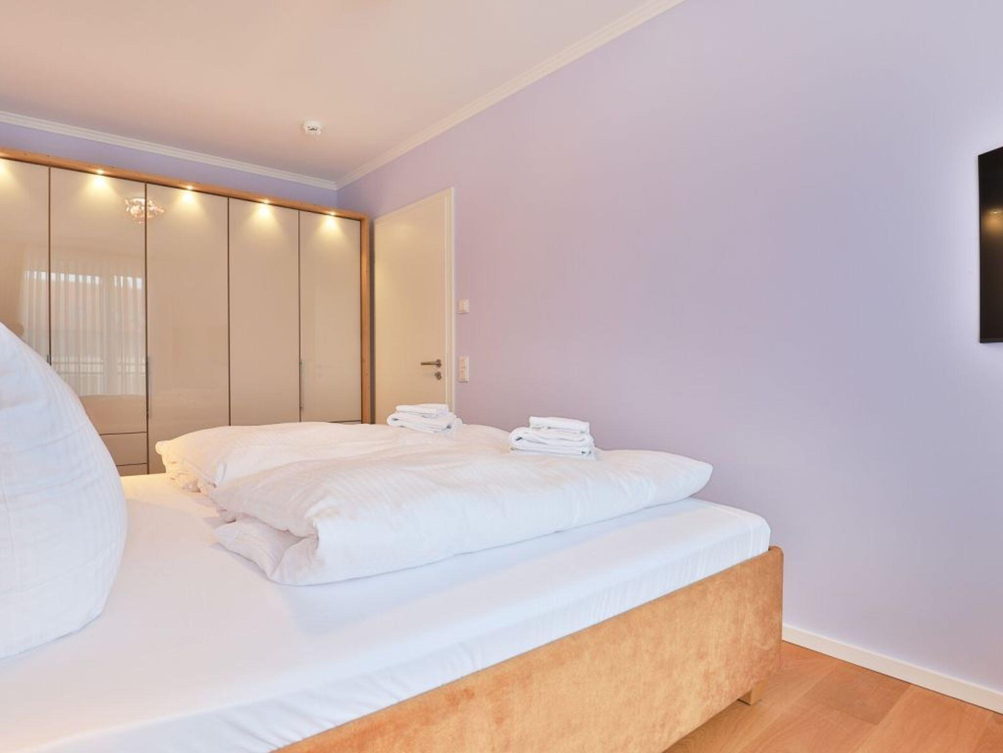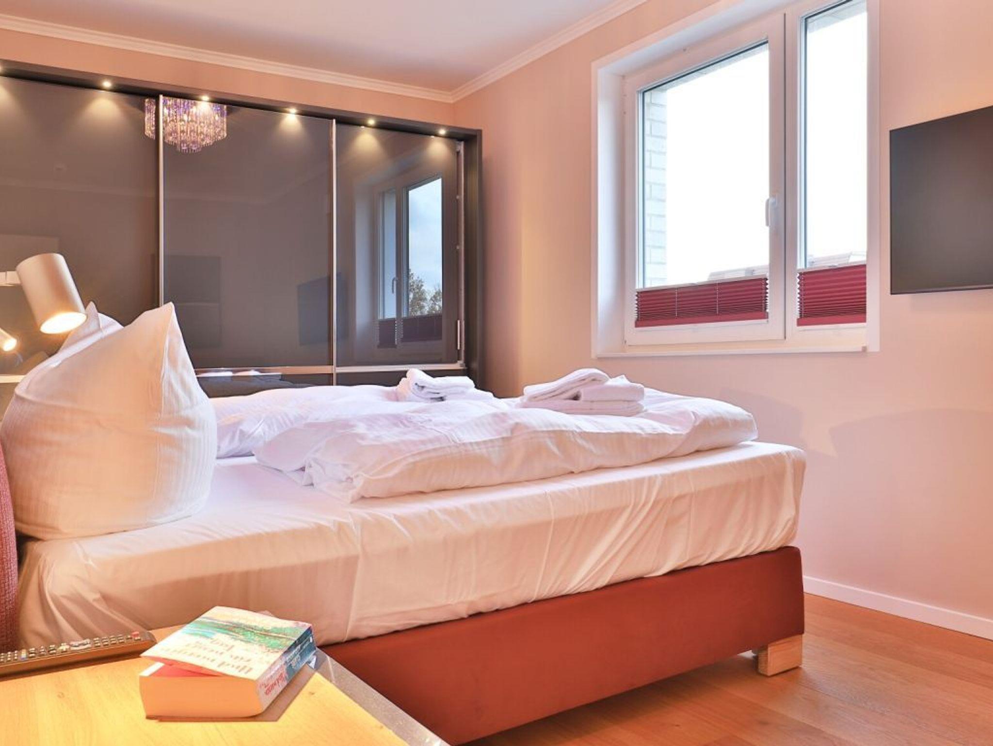 Die 3-Zimmer Penthouse Wohnung bietet auf 101qm Wohnfläche den idealen Rahmen für besondere Urlaubstage. Bis zu vier Personen finden hier luxuriöses Wohnen. Ein inspirierender Mehrwert sind die beiden saisonal möblierte Dachterrassen ? perfekt für entspannte Stunden im Freien. Das Highlight dieser bezaubernden Ferienwohnung ist die wohnungseigene Infrarotkabine mit Farblichtambiente, im Wellnessbad. Der modern und edel möblierte Wohn- und Essbereich heißt Sie mit einem bequemen Sofa sowie einem Esstisch mit vier bequemen Sitzplätzen willkommen. Für Unterhaltung sorgen insgesamt 3 Fernseher -Smart TV, kostenfreies WLAN. Die hochwertige, offen integrierte Küchenzeile lässt keine Wünsche offen: Herd, Backofen, Mikrowelle, Dunstabzugshaube, Kühlschrank, Kaffeemaschine, Wasserkocher, Toaster und weitere praktische Küchenutensilien ermöglichen eine komfortable Selbstversorgung. Für einen edlen Tropfen am Abend bevorzugen Weinkenner den vorhandenen Weinklimaschrank. Genießen Sie Ihre Mahlzeiten am Esstisch oder in den wärmeren Monaten auf der saisonal möblierten Dachterrasse mit Panoramablick über die Salzwiesen, wo Sie es sich an frischer Meeresluft gemütlich machen können. Zwei separate Schlafzimmer sorgen für erholsame Nächte. Beide Schlafräume bieten ein hochwertiges Doppelbett, Kleiderschrank, TV- Gerät. Eines der Schlafzimmer ermöglicht den Zugang auf die zweite Dachterrasse. Der Urlaubstag beginnt in einem Luxusbadezimmer mit Infrarotkabine, ebenerdiger Dusche, Waschtisch mit Unterschrank, WC sowie einer Handtuchheizung. Das zweite Duschbad ist mit Waschtisch, WC, Handtuchheizung ausgestattet. Zudem stehen im Appartement Waschmaschine, Wäschetrockner, Bügelbrett und Bügeleisen im Abstellraum bereit. Ein reservierter Außenstellplatz steht für Ihren PKW zur Verfügung. Für mitgebrachte Fahrräder gibt es abschließbare Unterstellmöglichkeiten sowie Fahrrad E-Ladestationen. Haustiere und Rauchen sind in der Wohnung nicht erlaubt.