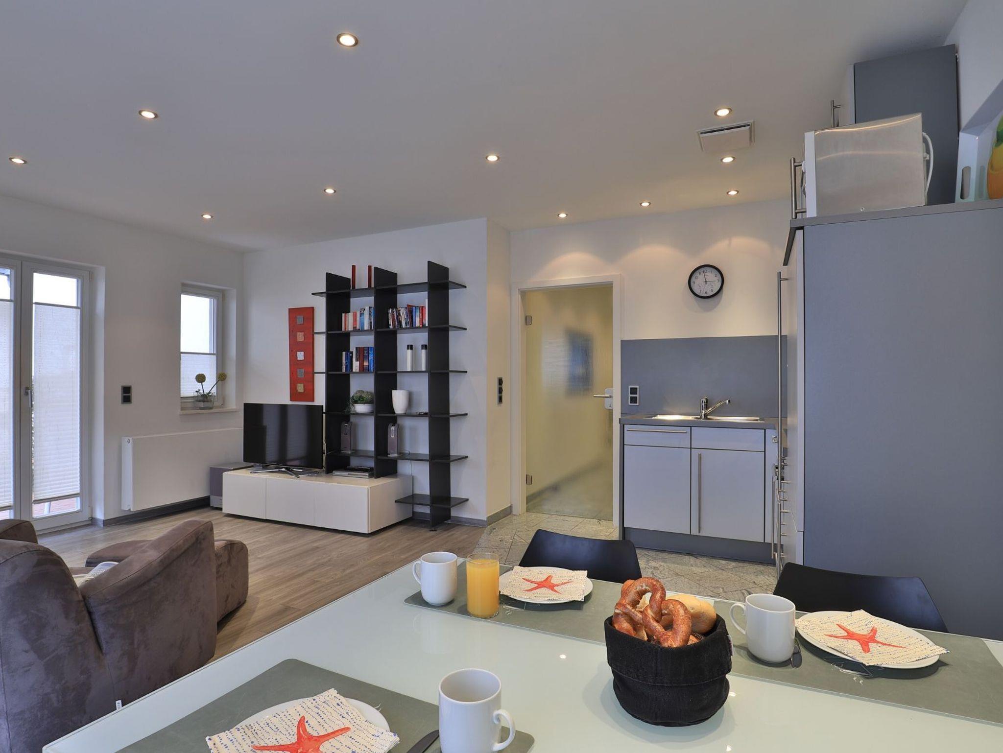 Nur 30 Meter vom Strand entfernt erwartet Sie die exklusive 3-Zimmer-Ferienwohnung ?Villa Wagenknecht? im Erdgeschoss mit einer Wohnfläche von 62 m² und hochwertiger Ausstattung. Das stilvolle Feriendomizil mit Südwest-Terrasse bietet idealen Raum für bis zu vier Personen. Der modern und geschmackvoll gestaltete Wohnbereich empfängt Sie mit einem komfortablen Sofa, Sessel, Esstisch sowie TV, DVD-Player, Musikanlage und kostenfreiem WLAN. Die integrierte, hochwertige Küchenzeile ist mit Ceranfeld, Mikrowelle, Backofen, Kühlschrank und Geschirrspüler bestens ausgestattet und lässt keine Wünsche offen. Eines der separaten Schlafzimmer verfügt über ein Doppelbett, einen Kleiderschrank und einen zusätzlichen Fernseher. Das zweite Schlafzimmer ist mit zwei Einzelbetten eingerichtet. Das moderne Duschbad mit hochwertiger Granitausstattung und Fußbodenheizung sowie ein zusätzliches Gäste-WC sorgen für angenehmen Komfort. Bei Ihrer Anreise sind die Betten bereits bezogen, Hand- und Duschtücher liegen für Sie bereit. Ein Strandkorb ist saisonal von etwa Mai bis zum 30. September im Mietpreis enthalten. Für Ihren Pkw steht ein reservierter Stellplatz in der Tiefgarage zur Verfügung. Waschmaschine und Wäschetrockner befinden sich im Haus und können gegen Gebühr genutzt werden. Ein Fahrradkeller ist ebenfalls vorhanden. Es handelt sich um eine Nichtraucher-Ferienunterkunft; Haustiere sind nicht gestattet. Sie verbringen Ihren Aufenthalt in einer privaten Villa in direkter Lage an der Mittelpromenade. Herzlich willkommen bei uns an der Ostsee.