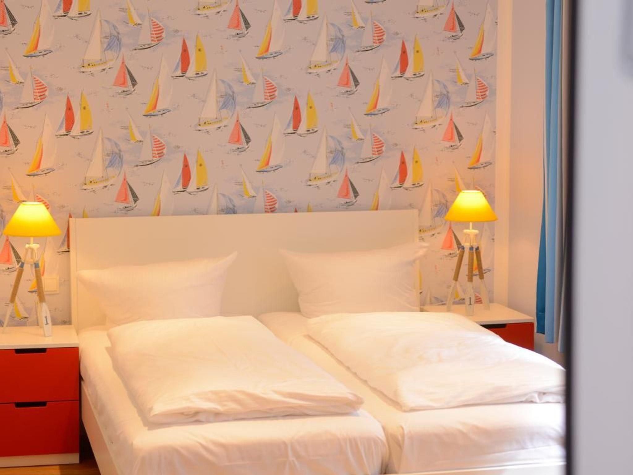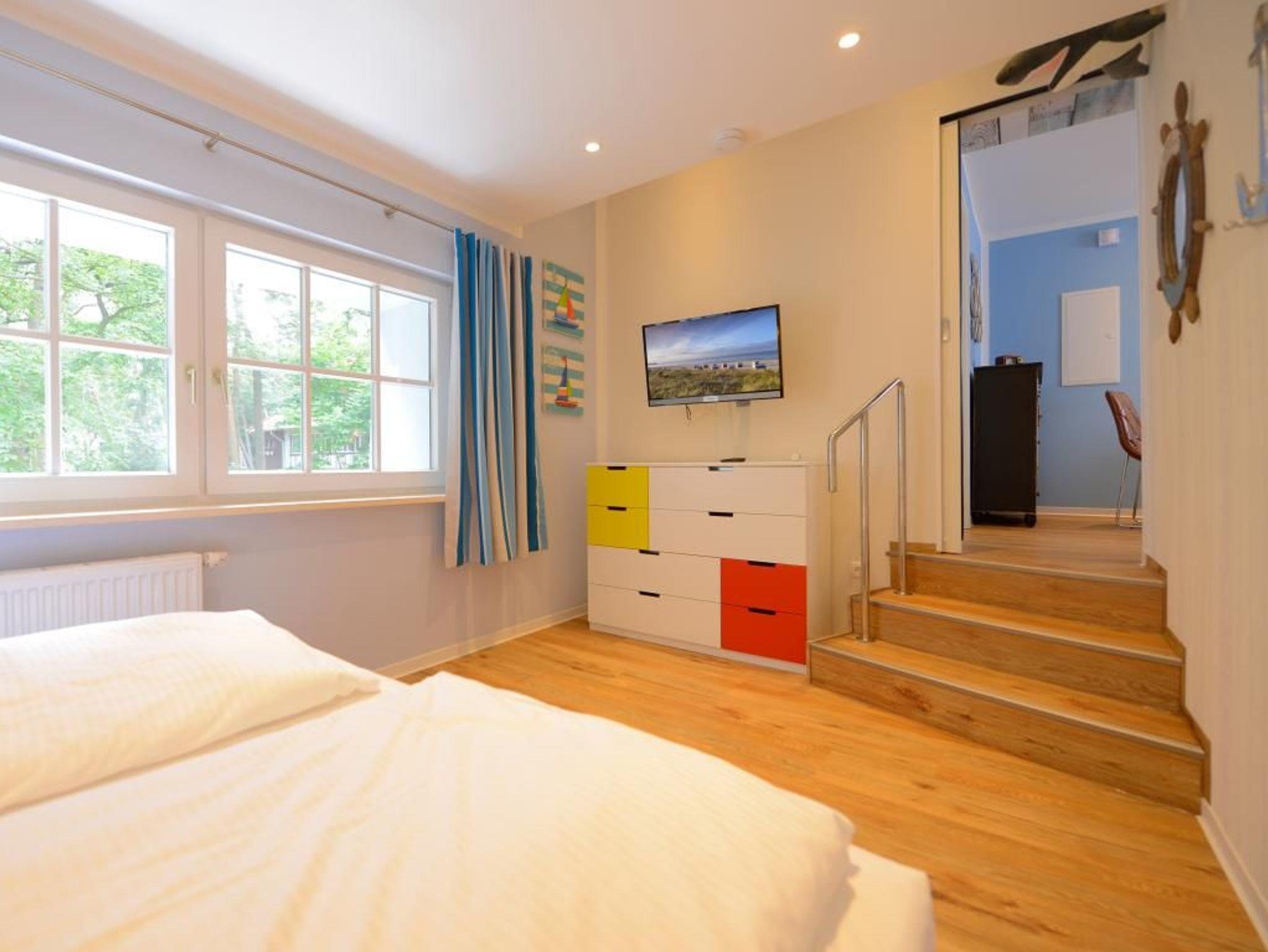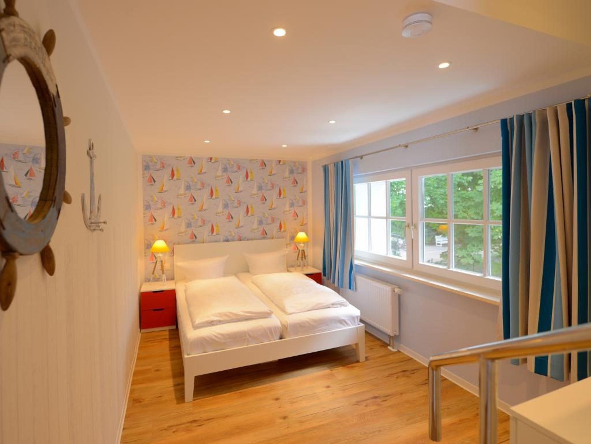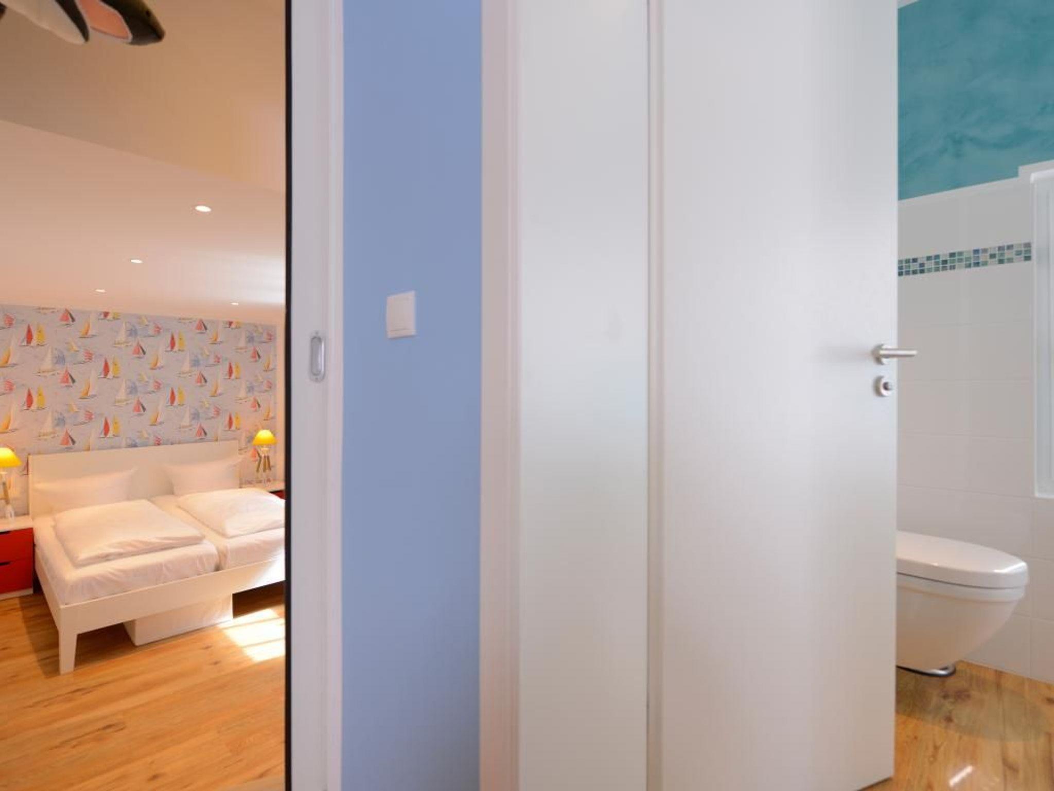 Zwei separate Komfortschlafzimmer schenken erholsame Nächte. Ein davon als sehr geräumiges Schlafzimmer mit Doppelbett, Kleiderschrank, Fernseher und Dachterrassen Zugang. Über drei Treppenstufen gelangen Sie in das zweite, kleinere Schlafzimmer mit Doppelbett 1,60m x 2,00m, Kommode, Fernseher. Bei Anreise sind bezogene Betten für 2 Personen inklusive. Ein schickes Tageslicht Duschbad mit Waschtisch, Föhn, WC, rundet das Angebot ab. Die Nutzung einer Waschmaschine ist gegen Gebühr möglich. Für Ihren PKW befindet sich ein Stellplatz in der Tiefgarage des Hauses, die Sie mit dem Autolift erreichen. Es handelt sich um ein Nichtraucher Domizil. Haustiere dürfen nicht mitgebracht werden.