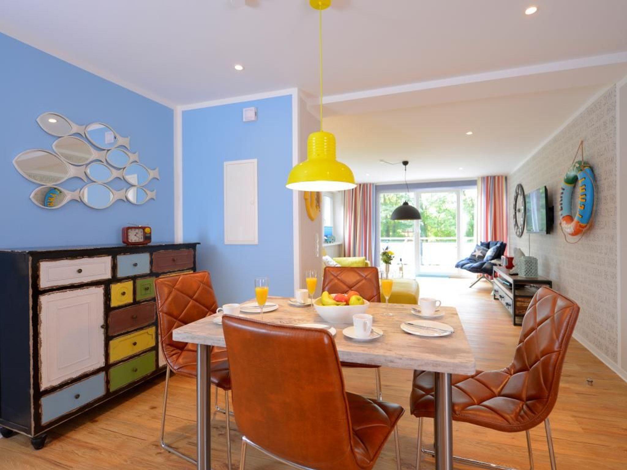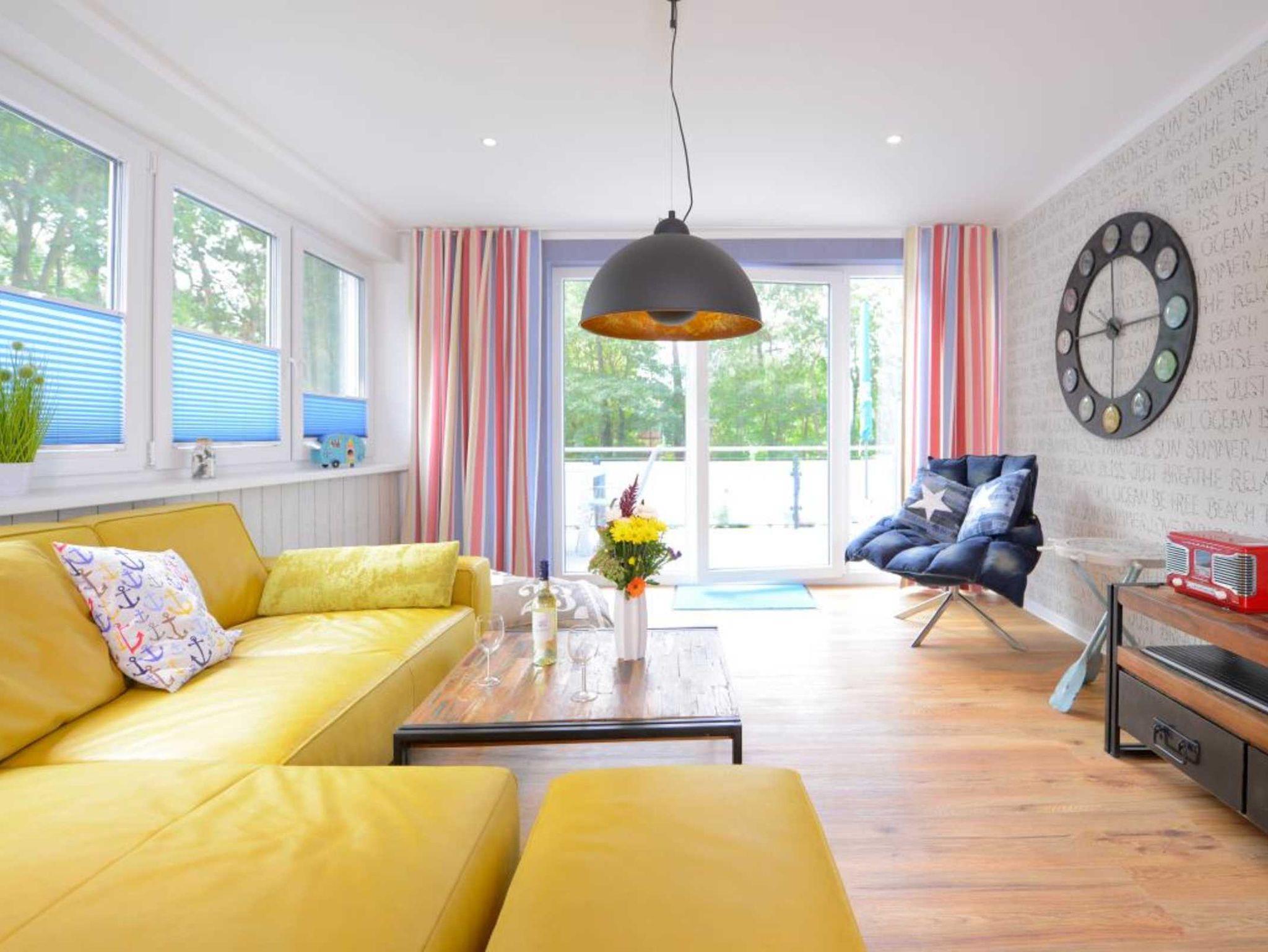 Das 3- Zimmer Traumdomizil ? Florida 5 Freitag - mit zwei Dachterrassen, bietet eine Wohnfläche von 75qm. Eine Belegung ist mit max.4 Personen möglich. Im höchsten Wohnkomfort eingerichtet, erwartet Sie hier warme Wohnatmosphäre mit Holzoptikbodenbelag. Der Wohn-/Essbereich lädt mit einer Sofalandschaft und einem gemütlichen Essbereich zum Träumen ein. Technische Unterhaltung bieten Fernseher, Blu-Ray-Player, DVD, und Musikanlage. WLAN nutzen Sie gebührenfrei. Vom Wohnraum aus gelangen Sie auf eine der Dachterrassen. Ebenso hochwertig ist die Ausstattung der Wohnraumküchenzeile, die Ihnen die Eigenversorgung ermöglicht mit: Herd, Backofen, Dunstabzug, Mikrowelle, Kühlschrank mit integr. Gefrierfach, Geschirrspüler, Kaffeemaschine, Wasserkocher, usw.