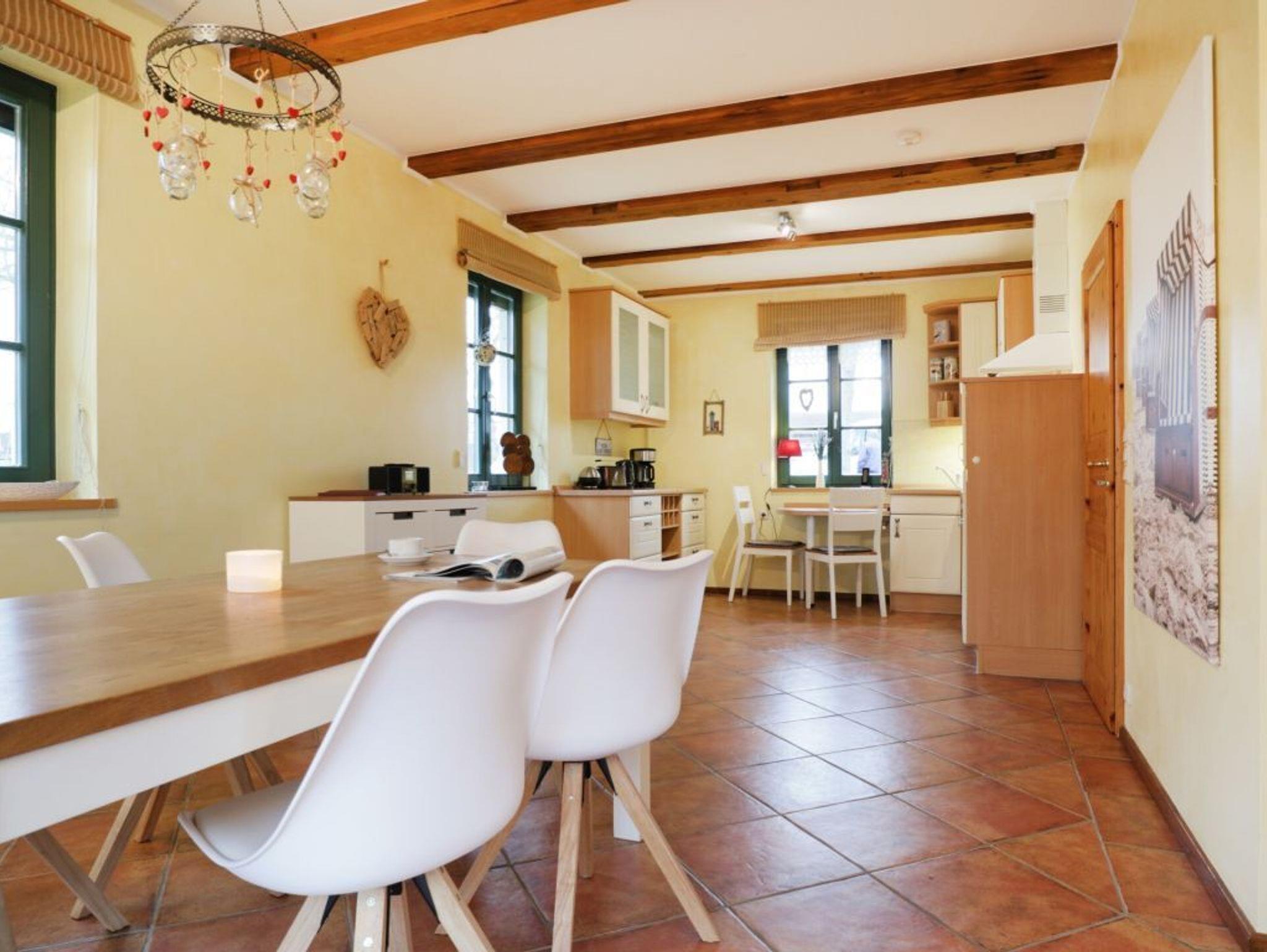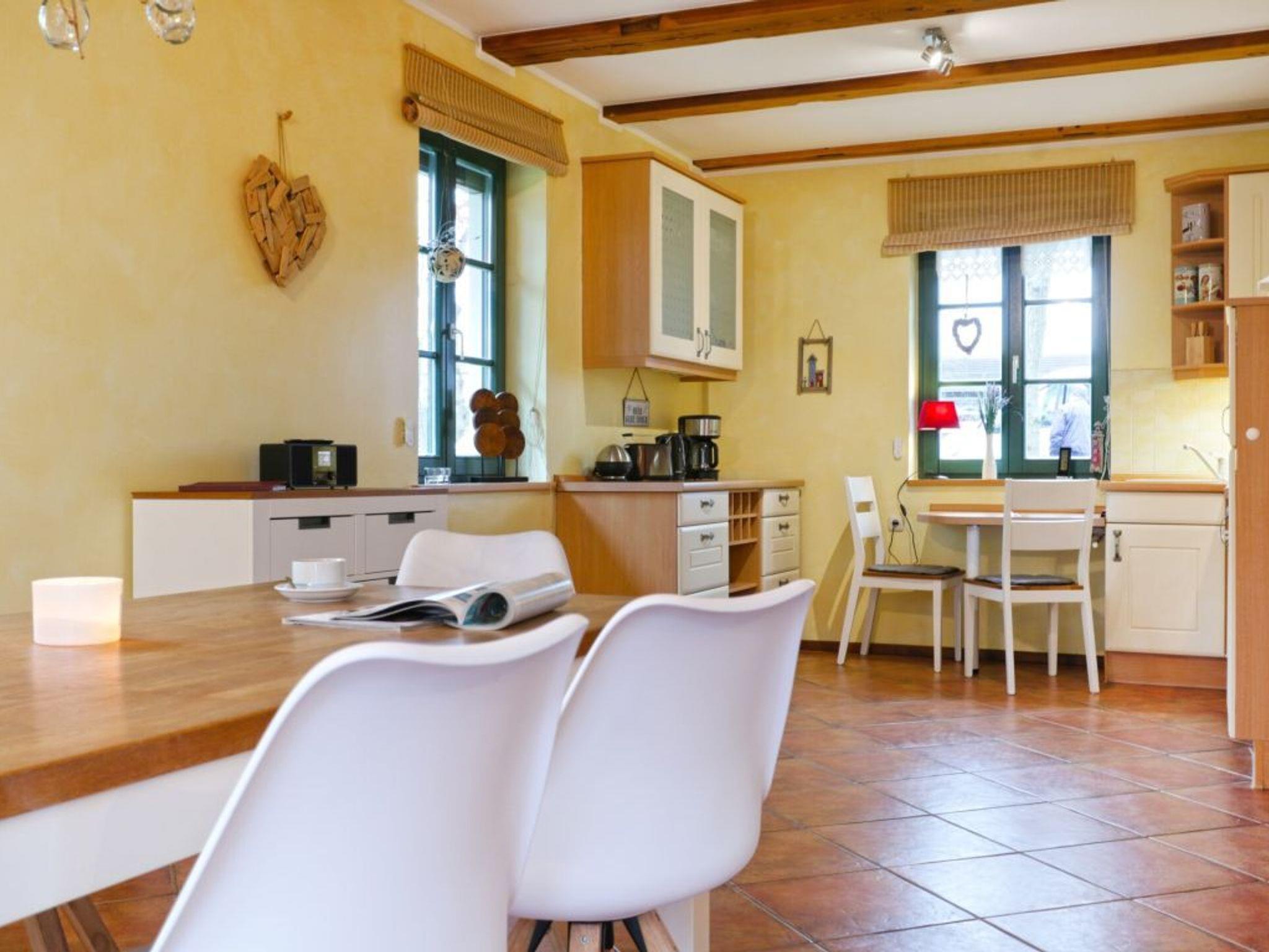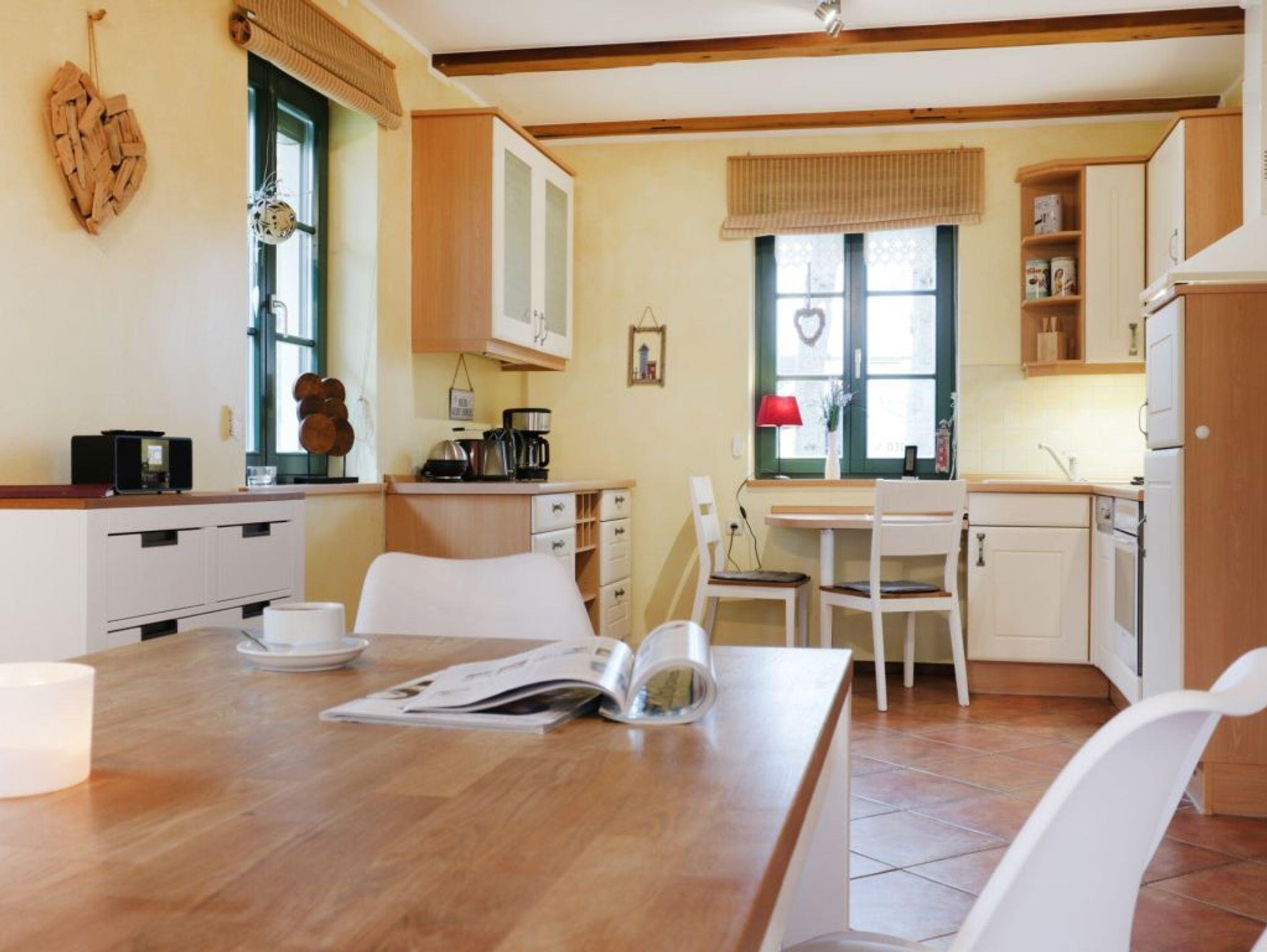 Die moderne Küche ist komplett ausgestattet (Mikrowelle, Kühlschrank, Gefrierfach, Herd, Backofen, Cerankochfeld, Geschirrspüler u.v.m.). Ein Gäste WC befindet sich ebenfalls auf dieser Wohnebene. Im Obergeschoss befinden sich die 2 Schlafzimmer (1x Doppelbett + Kleiderschrank, 1x Doppelbett + Einzelbett) und das großzügige Dusch- und Wannenbad. Eine Waschmaschine gegen Gebühr sowie ein Bollerwagen sind auch vorhanden. Das Grundstück ist komplett eingezäunt. Für Ihre Autos stehen Ihnen zwei Außenstellplätze in der Nähe des Grundstückes zur Verfügung! Sie müssen ca. 3 min laufen.