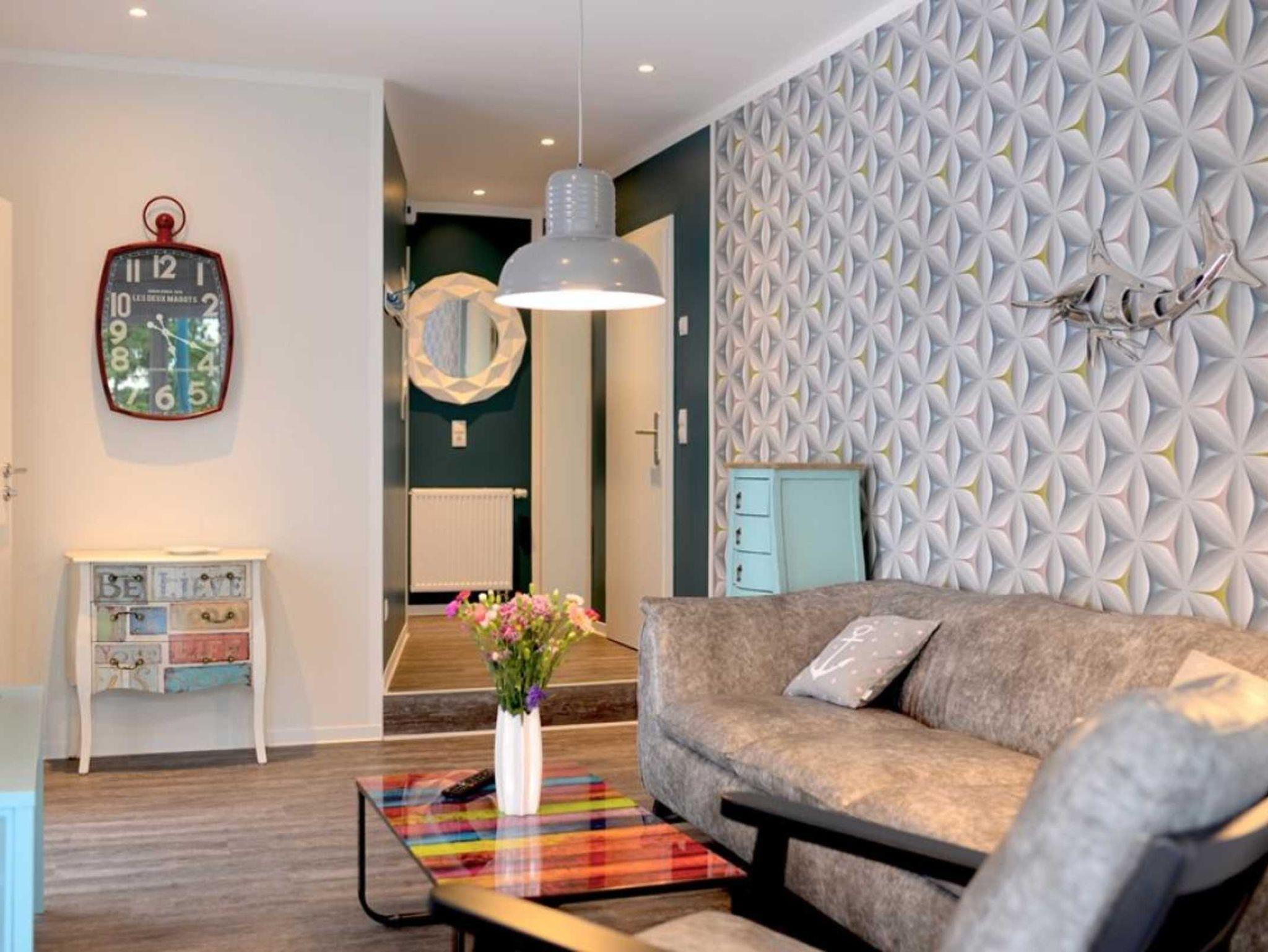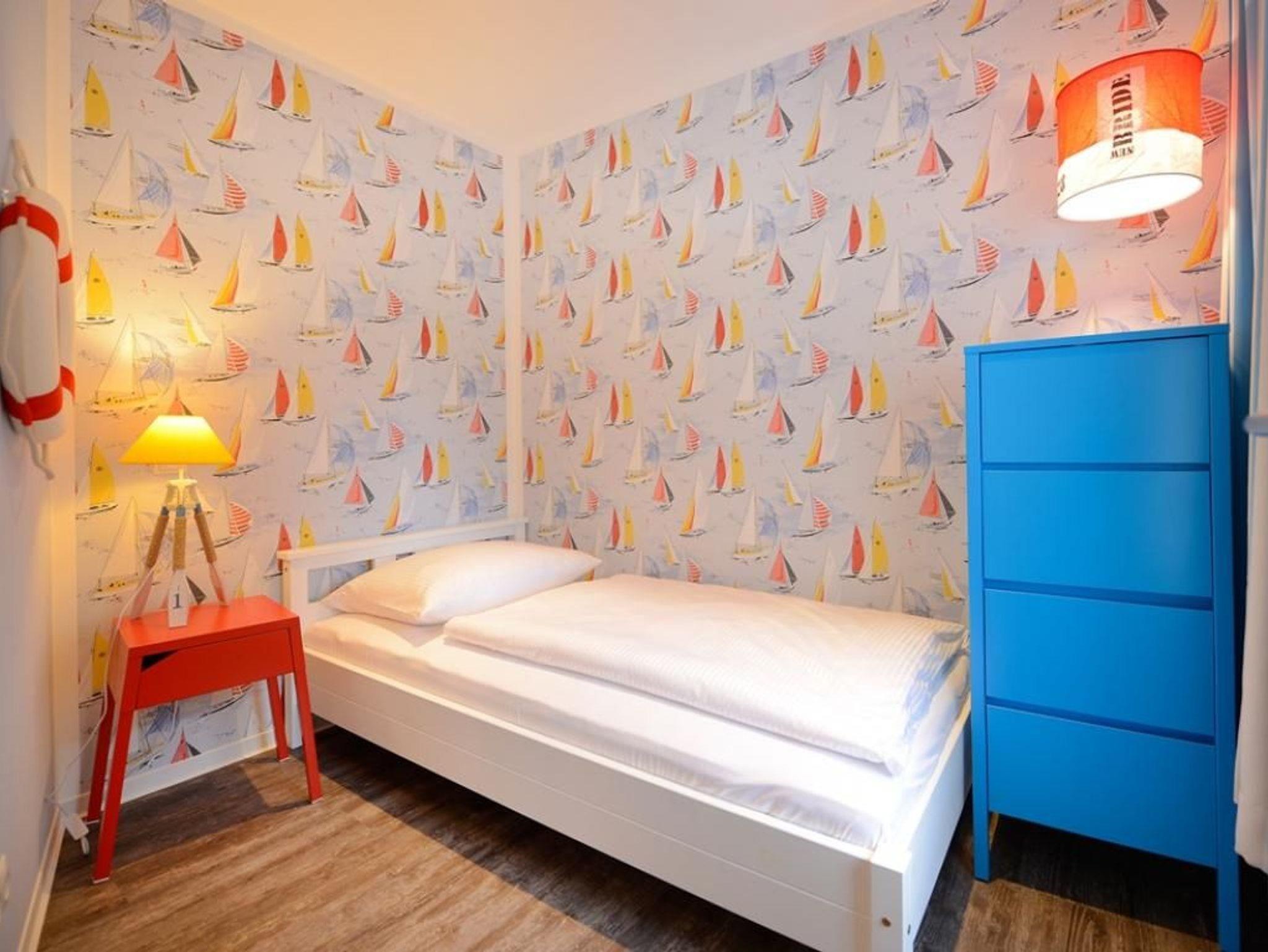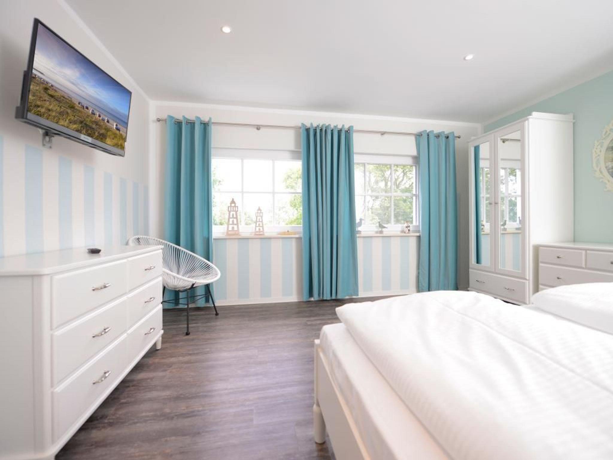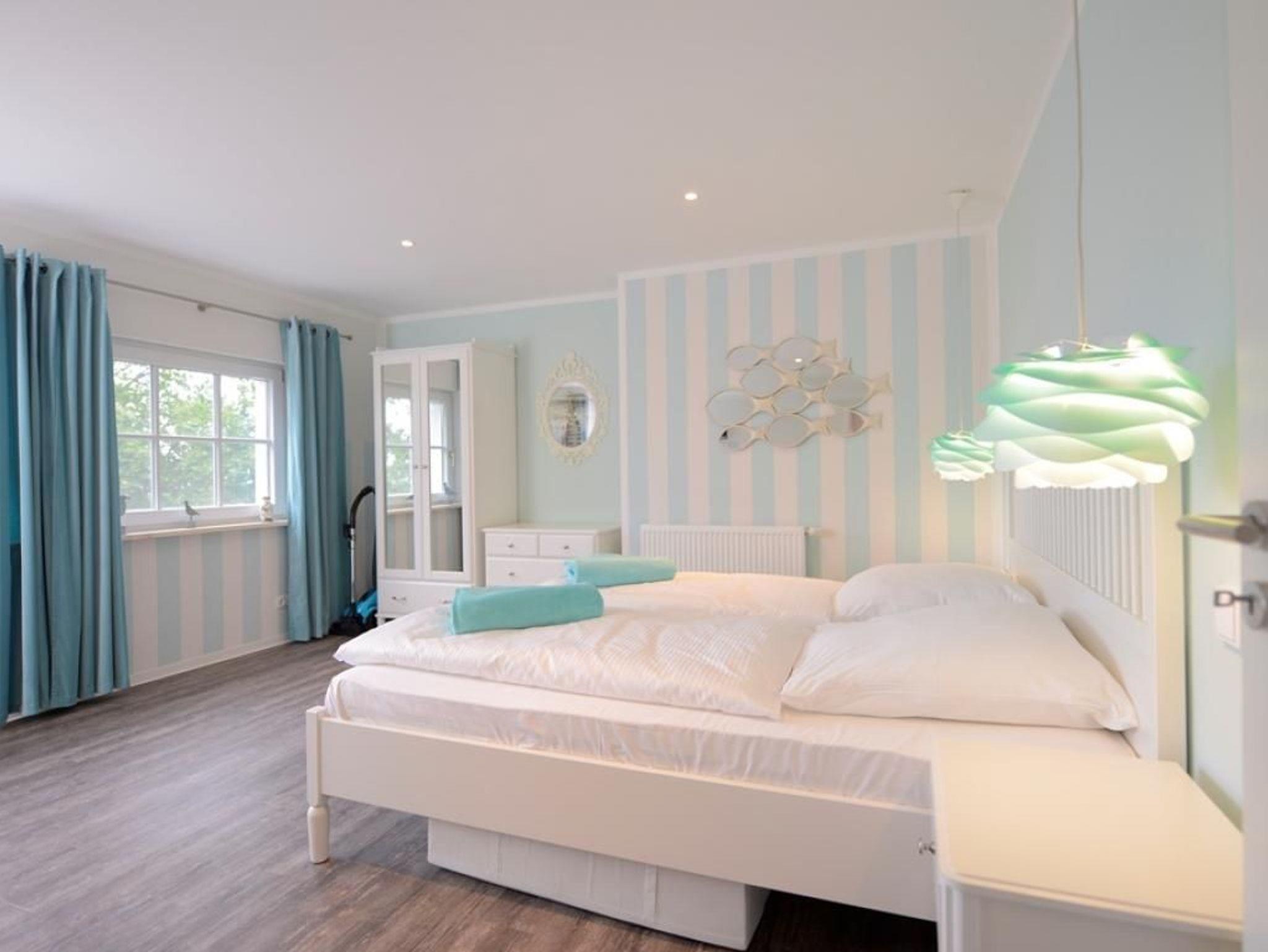 Zwei separate Wohlfühlschlafzimmer ermöglichen erholsamen Schlaf. Eines davon als sehr geräumiges Schlafzimmer mit Doppelbett, Kleiderschrank, Fernseher, Sitzgelegenheit. Das zweite, maritime Schlafzimmer mit Einzelbett und Kommode. Bei Anreise sind bezogene Betten für 2 Personen inklusive. Ein schickes Tageslicht Duschbad mit Waschtisch, Föhn, WC, rundet das Angebot ab. Die Nutzung einer Waschmaschine ist gegen Gebühr möglich. Für Ihren PKW befindet sich ein Stellplatz in der Tiefgarage des Hauses, die Sie mit dem Autolift erreichen. Es handelt sich um ein Nichtraucher Domizil. Haustiere dürfen nicht mitgebracht werden.