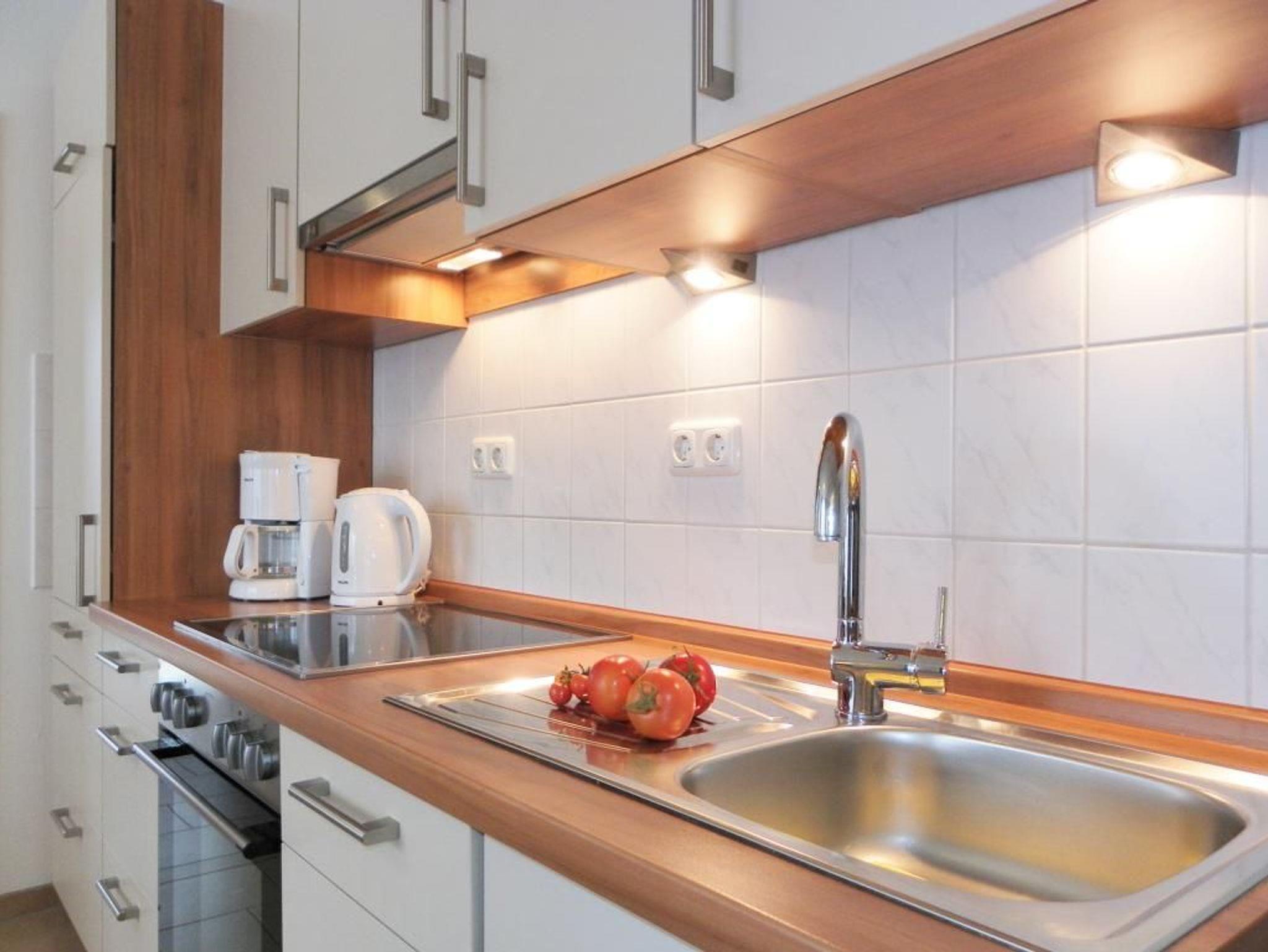 Das sehr komfortable 2-Zimmer-Appartement im 1. Obergeschoss bietet auf 50 m² Platz für bis zu 4 Personen. Es verfügt über einen Balkon mit Blick auf die Kirche zur Paulshöhe. Eine voll ausgestattete Wohnküche, ein separates Schlafzimmer und ein modernisiertes Duschbad mit WC sind vorhanden. Der gemütliche Wohnbereich ist mit einem Sofa ausgestattet, das sich einfach in eine Schlafcouch verwandeln lässt. Zur technischen Ausstattung gehört ein Fernseher mit SKY (Cinema, Sport), ein DVD-Player, eine Musikanlage und kostenfreies WLAN. Die Küchenzeile ist ideal für Selbstversorger und bietet einen Ceranfeldherd mit Backofen, Mikrowelle, Kühlschrank mit Gefrierfach, Geschirrspüler und weitere Geräte. Ihre Mahlzeiten können Sie am Esstisch oder auf dem saisonal möblierten Balkon zu sich nehmen. Das geräumige Schlafzimmer ist mit einem Doppelbett, einem großen Kleiderschrank und einem Fenster mit Insektenschutzgitter ausgestattet. Ein Einbauschrank im Eingangsflur bietet zusätzlichen Stauraum, und ein Kinderhochstuhl steht bereit. Der Fußboden ist gefliest. Ihr Fahrzeug parken Sie kostenfrei auf dem eigenen Tiefgaragenstellplatz. Eine Waschmaschine und ein Wäschetrockner sind im Haus gegen Gebühr verfügbar. Hunde sind gegen Gebühr willkommen. Bitte beachten Sie, dass es sich um eine Nichtraucherwohnung handelt und Hunde die Möbel nicht als Liege- oder Schlafplatz nutzen dürfen.