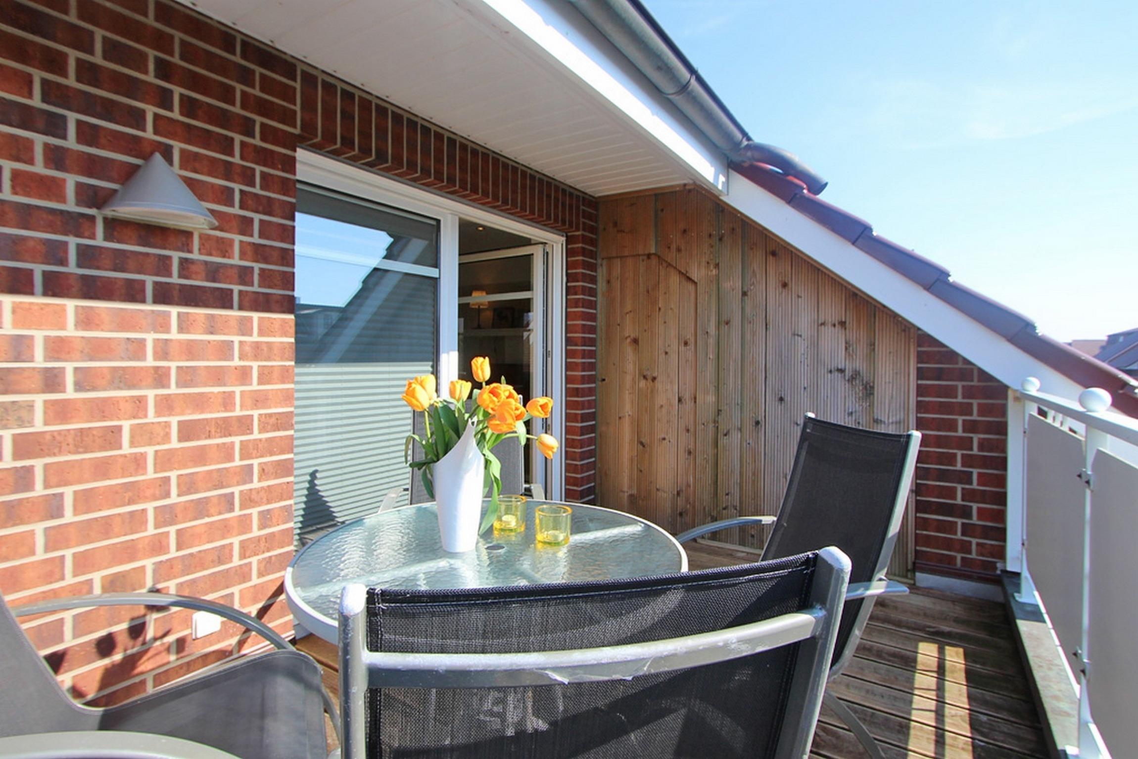 Der offene Wohn- und Essbereich in der ersten Wohnebene sowie der helle Wohnbereich mit direktem Zugang zum großen möblierten Südwest-Balkon, laden zum Entspannen ein. Der große TV sowie der DVD-Player sorgen für Ihre Multimediaunterhaltung.