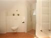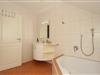 Das großzügige Badezimmer mit Eckbadewanne, fast bodengleicher Dusche (1cm Höhe) sowie Waschtisch und WC bietet genügend Platz für die Familie. Das Fenster spendet angenehmes Tageslicht und erleichtert das Lüften nach dem Duschen.