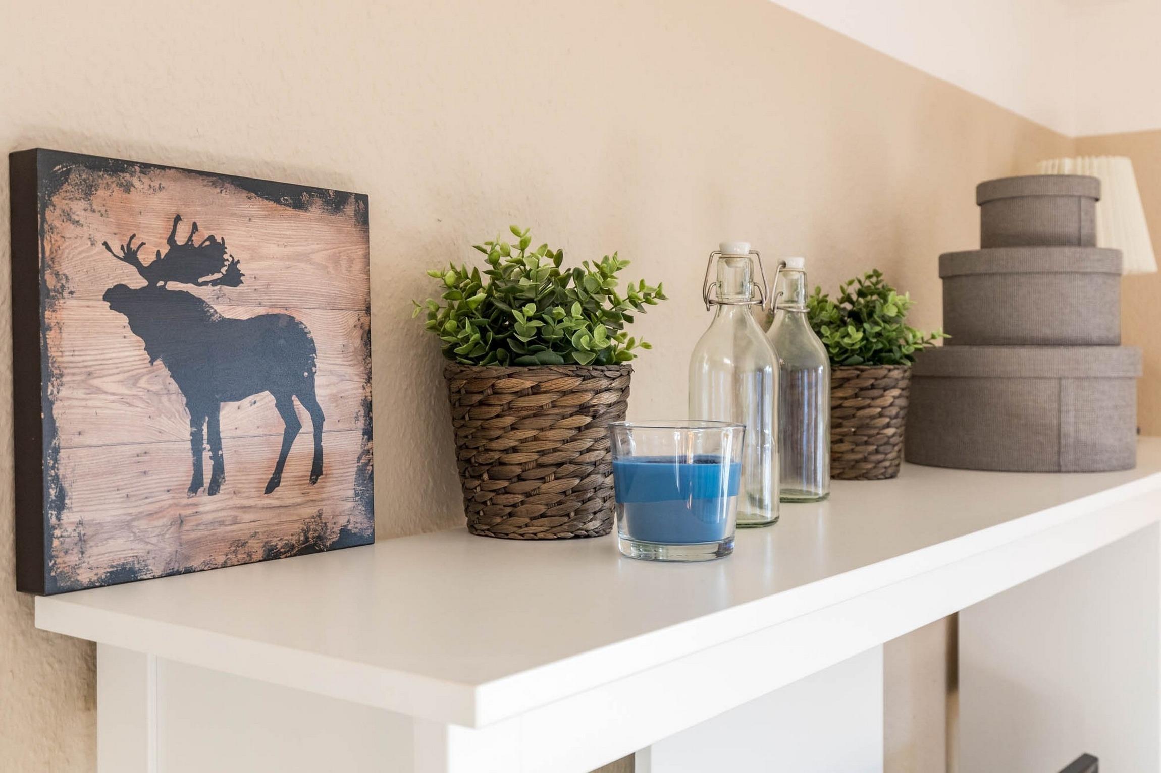 Die 4-Zimmer-Ferienwohnung "Denise" im 1.OG verteilt sich über zwei Wohnebenen auf circa 80 m² Wohnfläche und bietet eine moderne Ausstattung für 5 Gäste + Kleinkind. Die Zimmer sind gemütlich und stimmig zum Wohlfühlen eingerichtet.