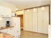 In der großen Wohnküche mit Essecke befinden sich eine Küchenzeile mit Herd, Backofen, Kühlschrank, Gefrierfach, Spülmaschine und Microwelle sowie ein Toaster, ein Eierkocher, eine Kaffeemaschine und einen Wasserkocher.