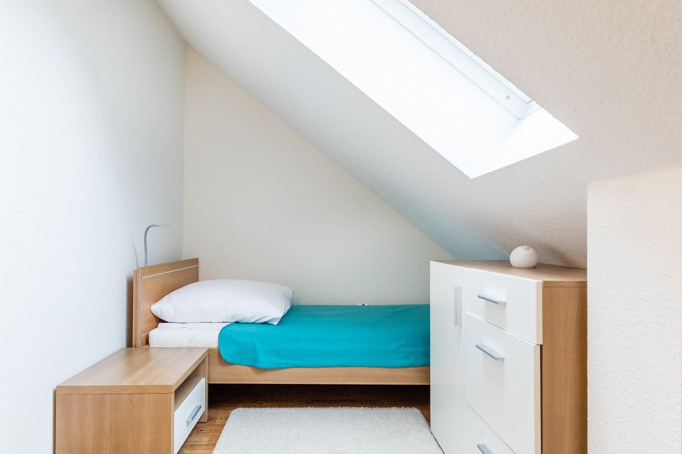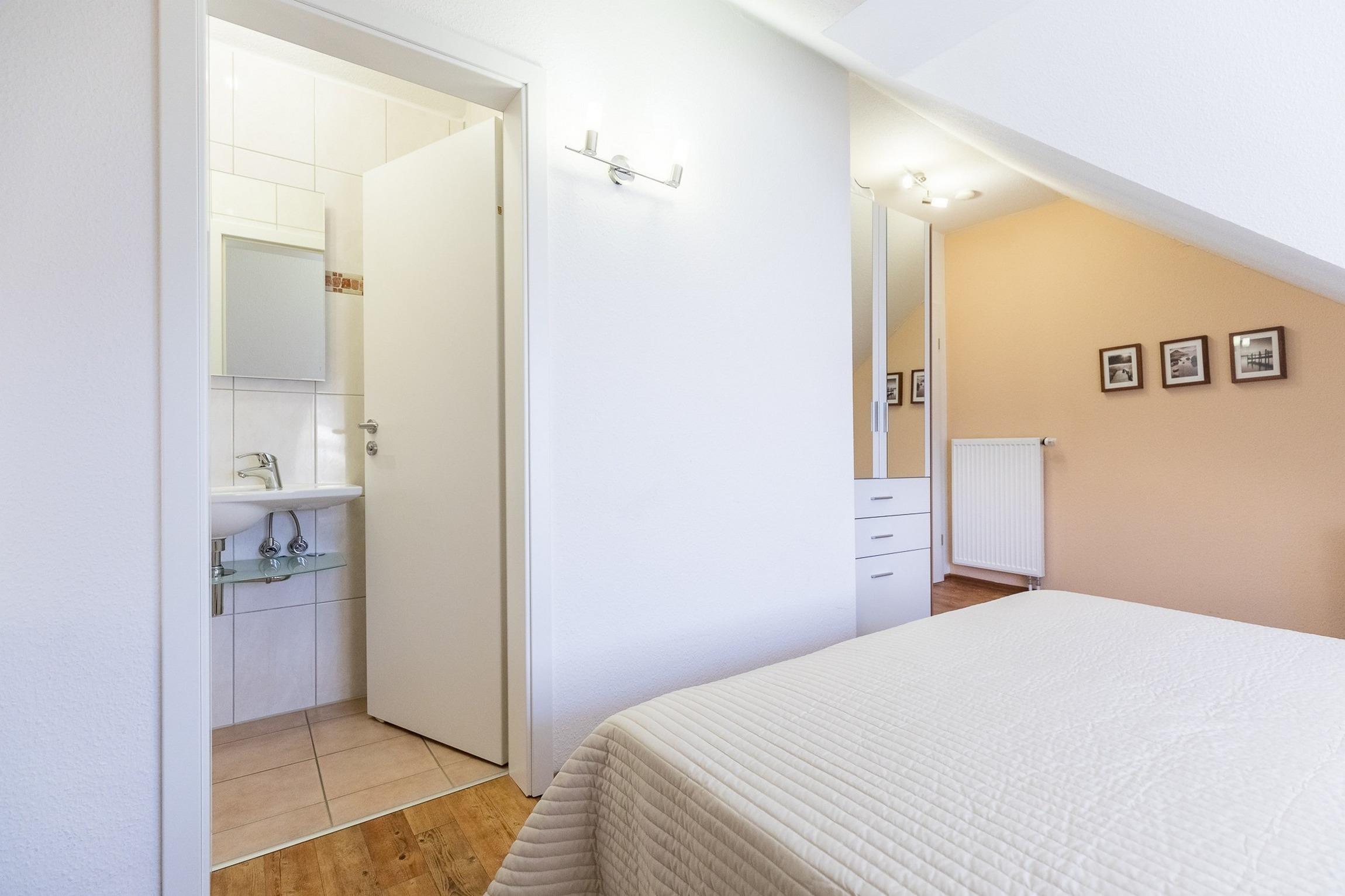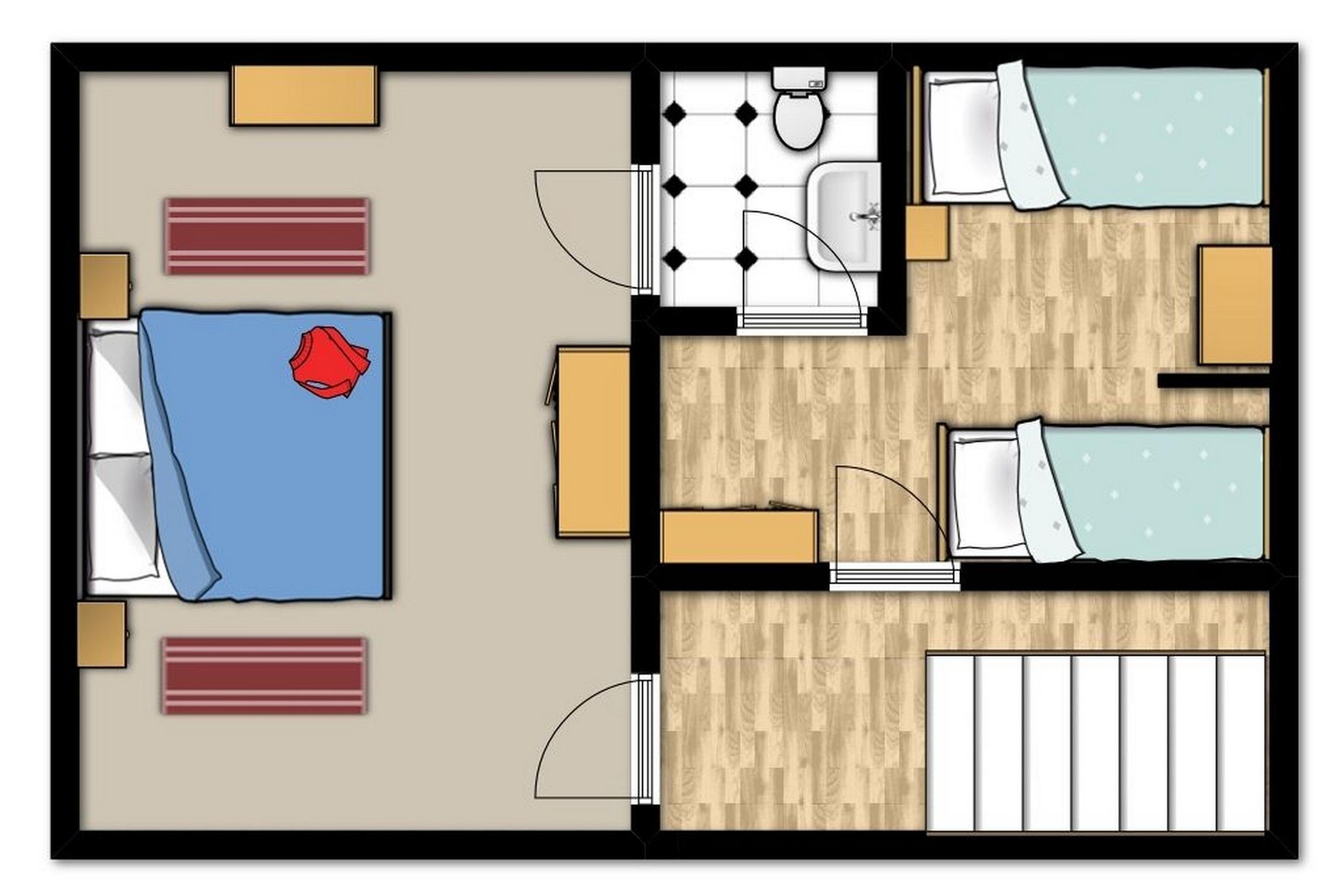Die 2.Wohnebene besteht aus einem Schlafzimmer mit Doppelbett, einem Gästezimmer mit zwei Einzelbetten und einem Gäste-WC.