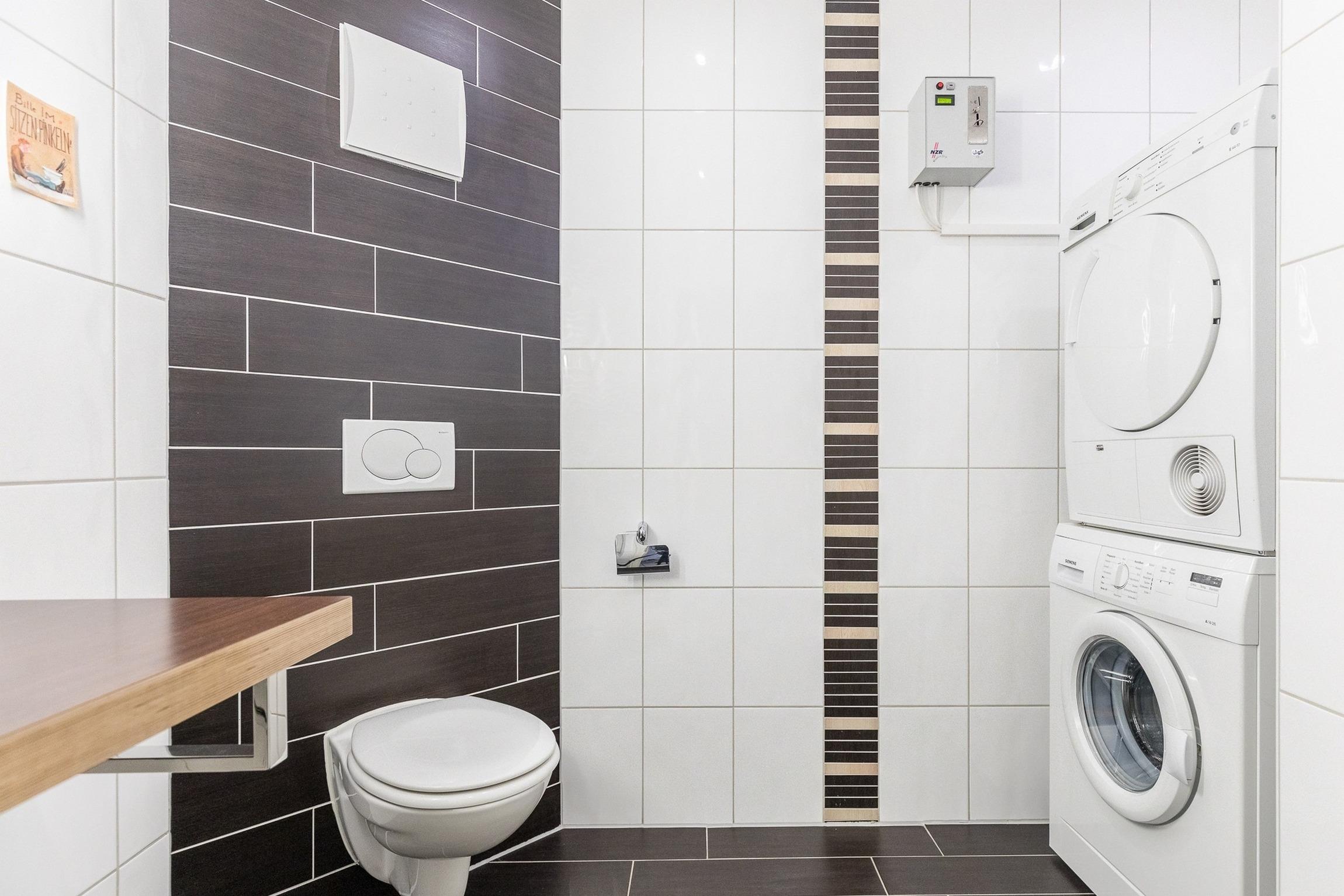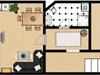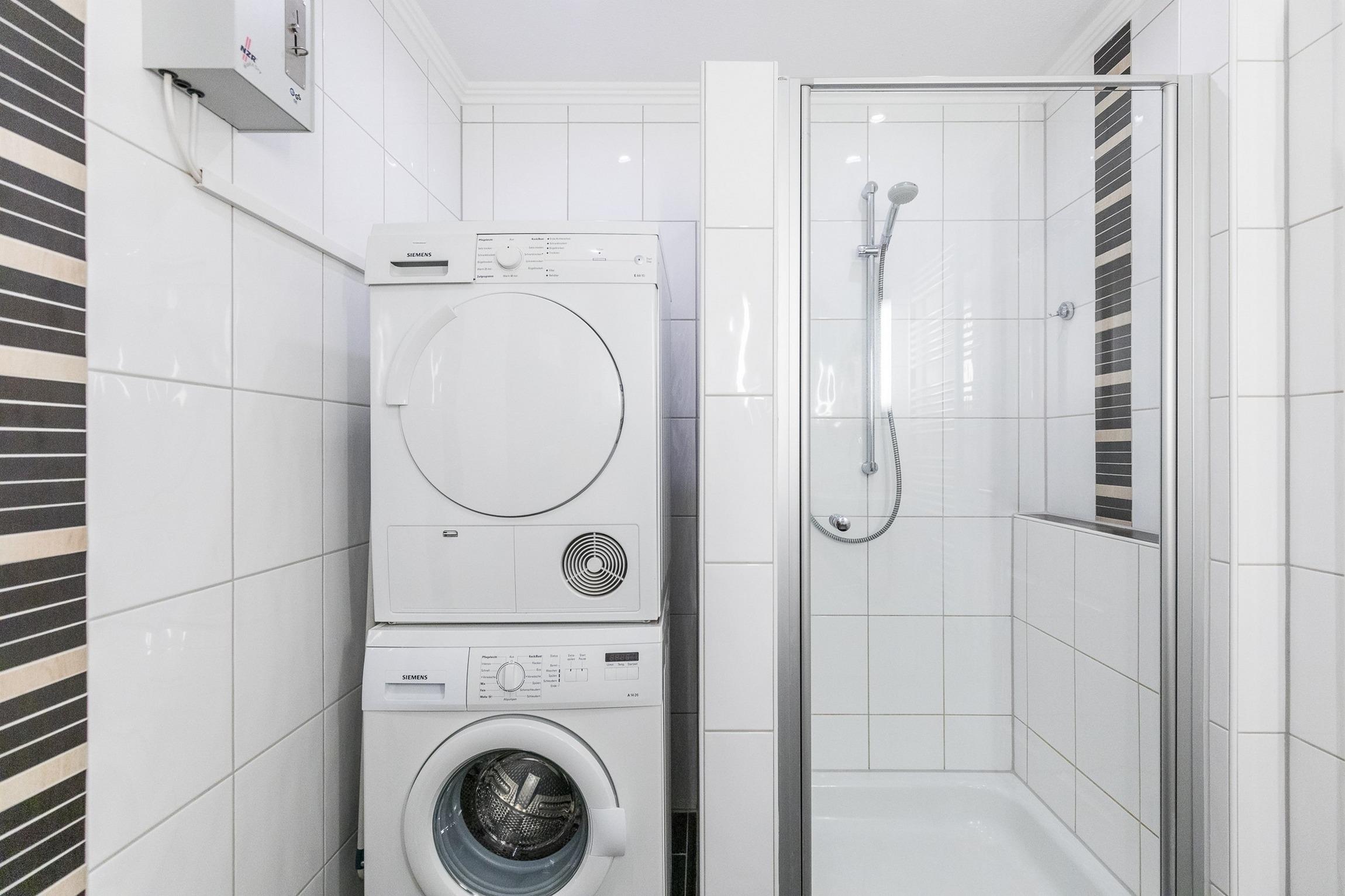 In der 1.Ebene befinden sich eine offene Küche, eine Essecke, ein Wohnbereich sowie ein Duschbad mit WC, Waschmaschine und Trockner (beide mit Münzautomat).