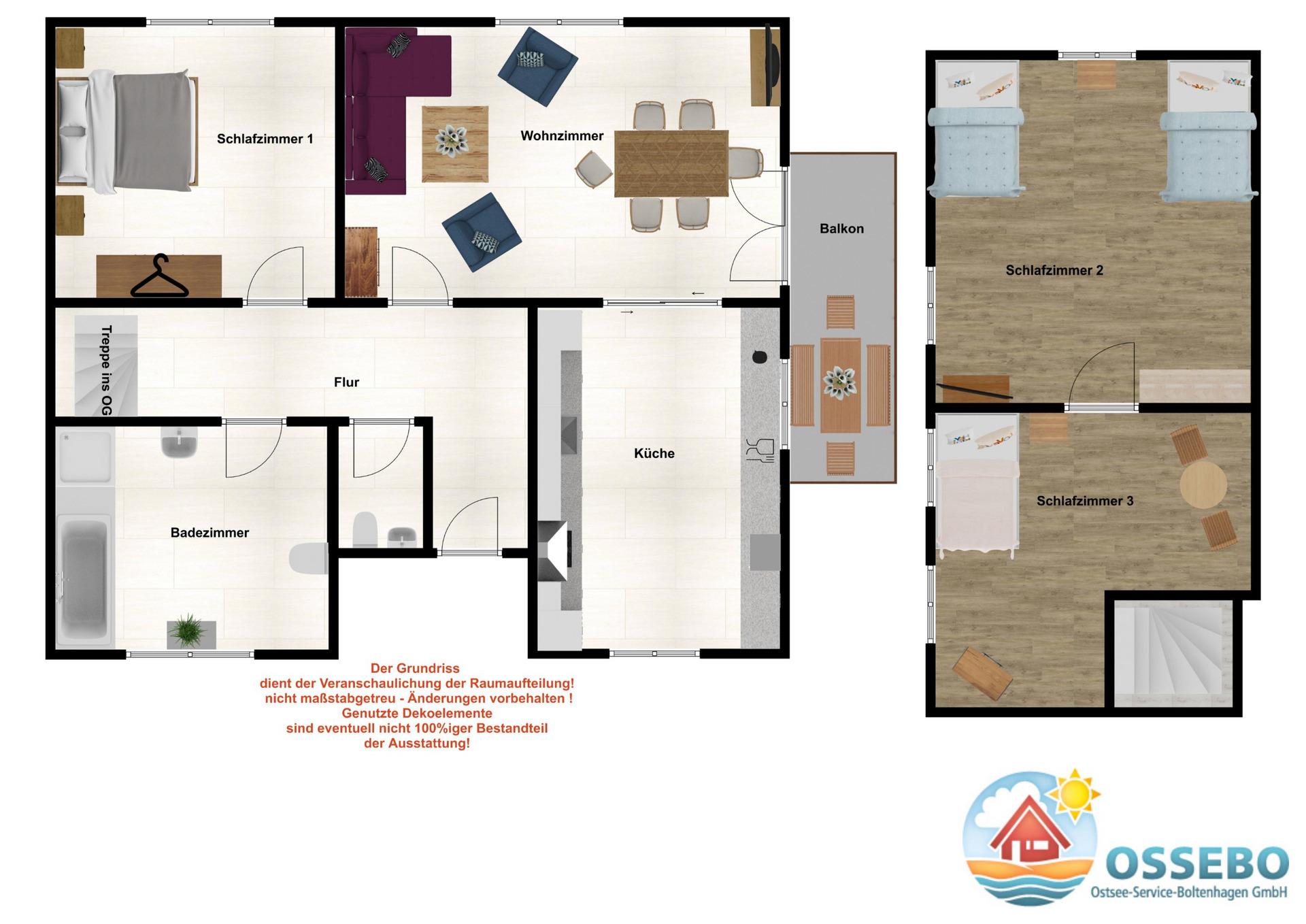 Die familienfreundliche 3-Zimmer-Ferienwohnung liegt im 1.OG und erstreckt sich über zwei Wohnebenen. Auf rund 80qm wird Ihnen eine moderne Ausstattung bis 7 Gäste + Kleinkind angeboten. Ideal also für größere Familien / Gruppen.