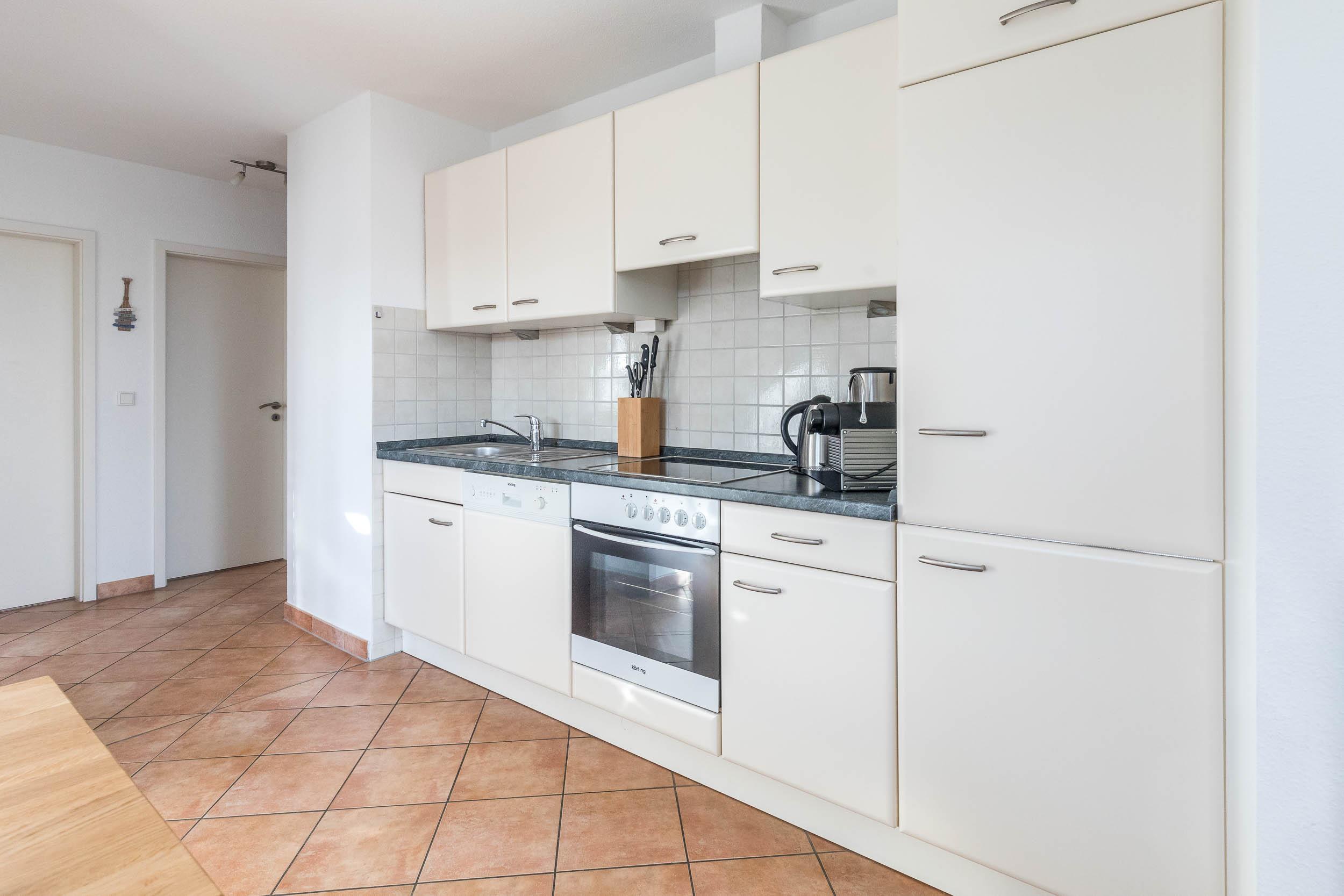 Außerdem befindet sich hier eine moderne offene Küchenzeile mit Spülmaschine, Herd und Mikrowelle uvm., sodass einer kompletten Selbstverpflegung nichts im Wege steht.