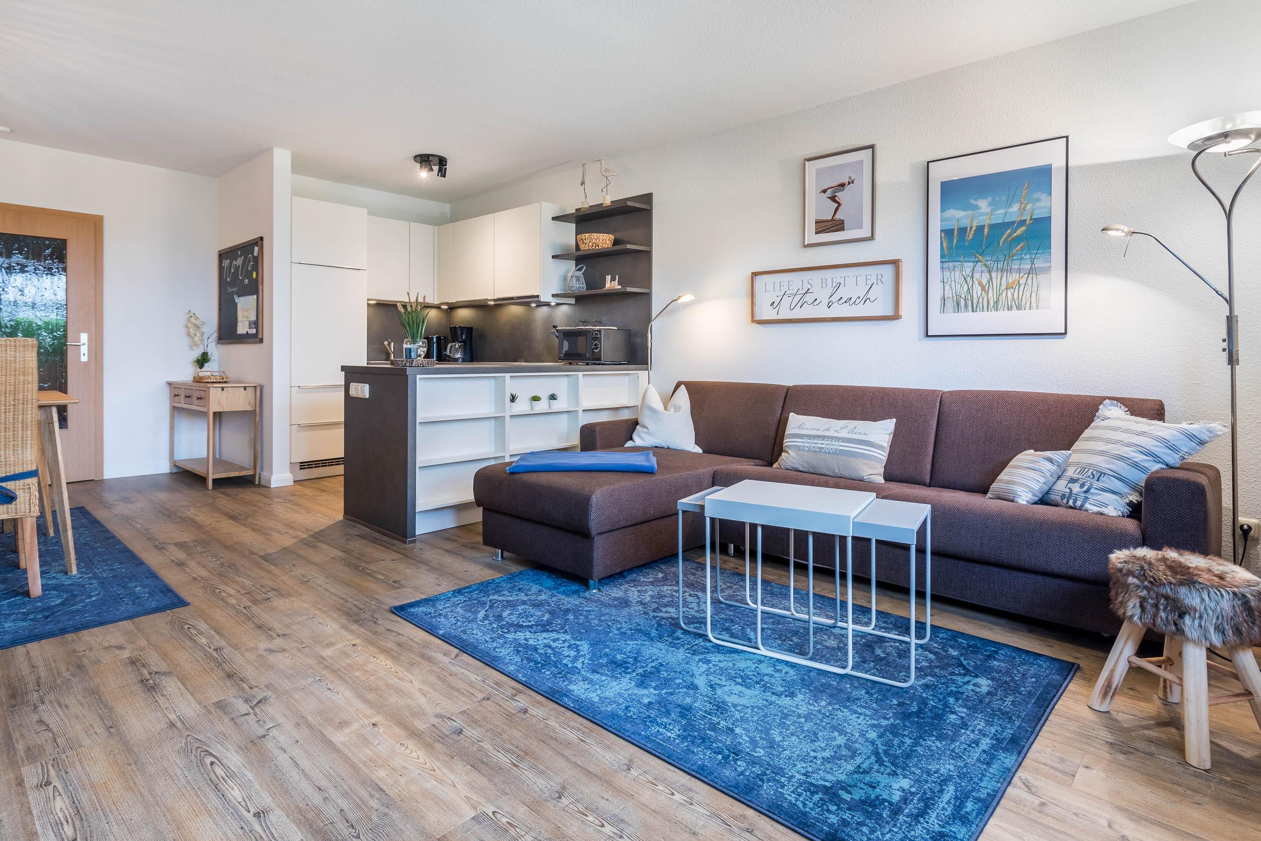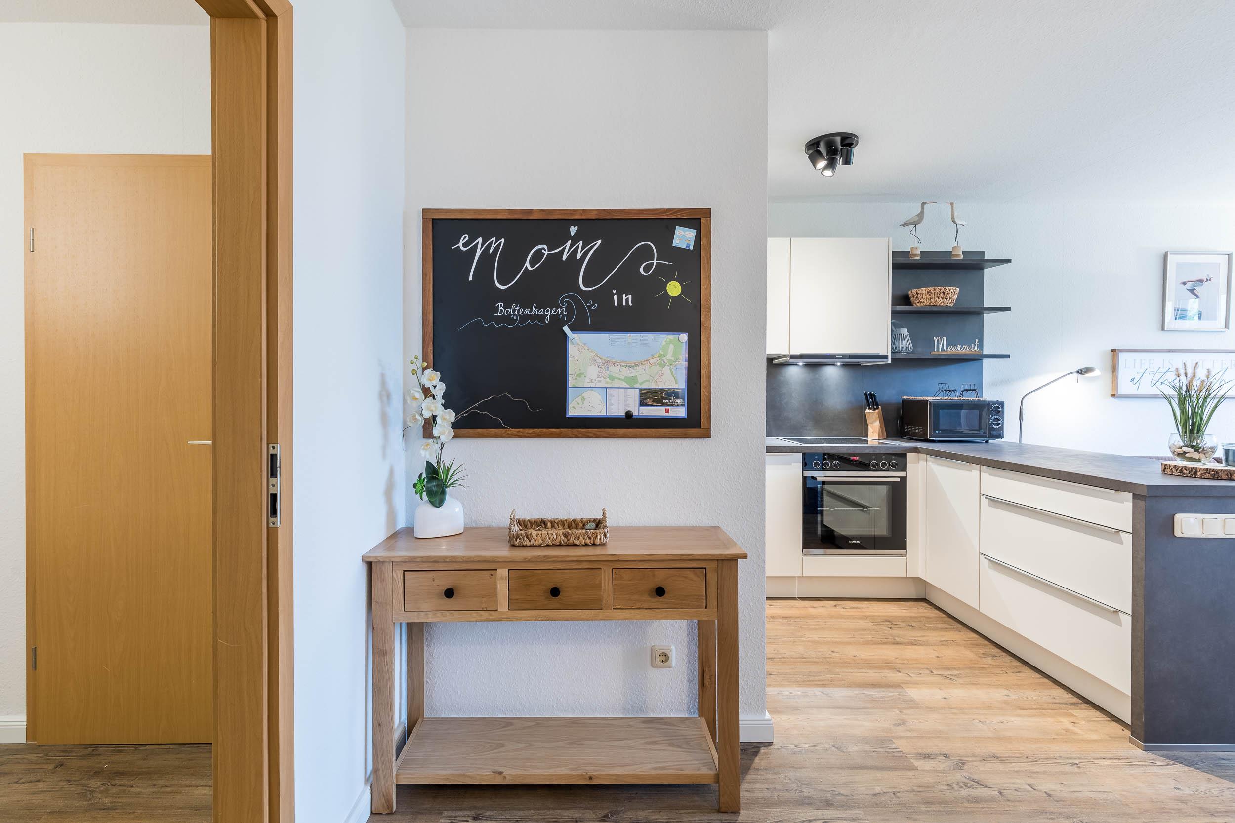 Wohlfühlatmosphäre mit Komfort in hellen Räumen und eine Privatterrasse erwarten Sie in diesem strandnahen Appartement im Ostseeurlaub Boltenhagen.