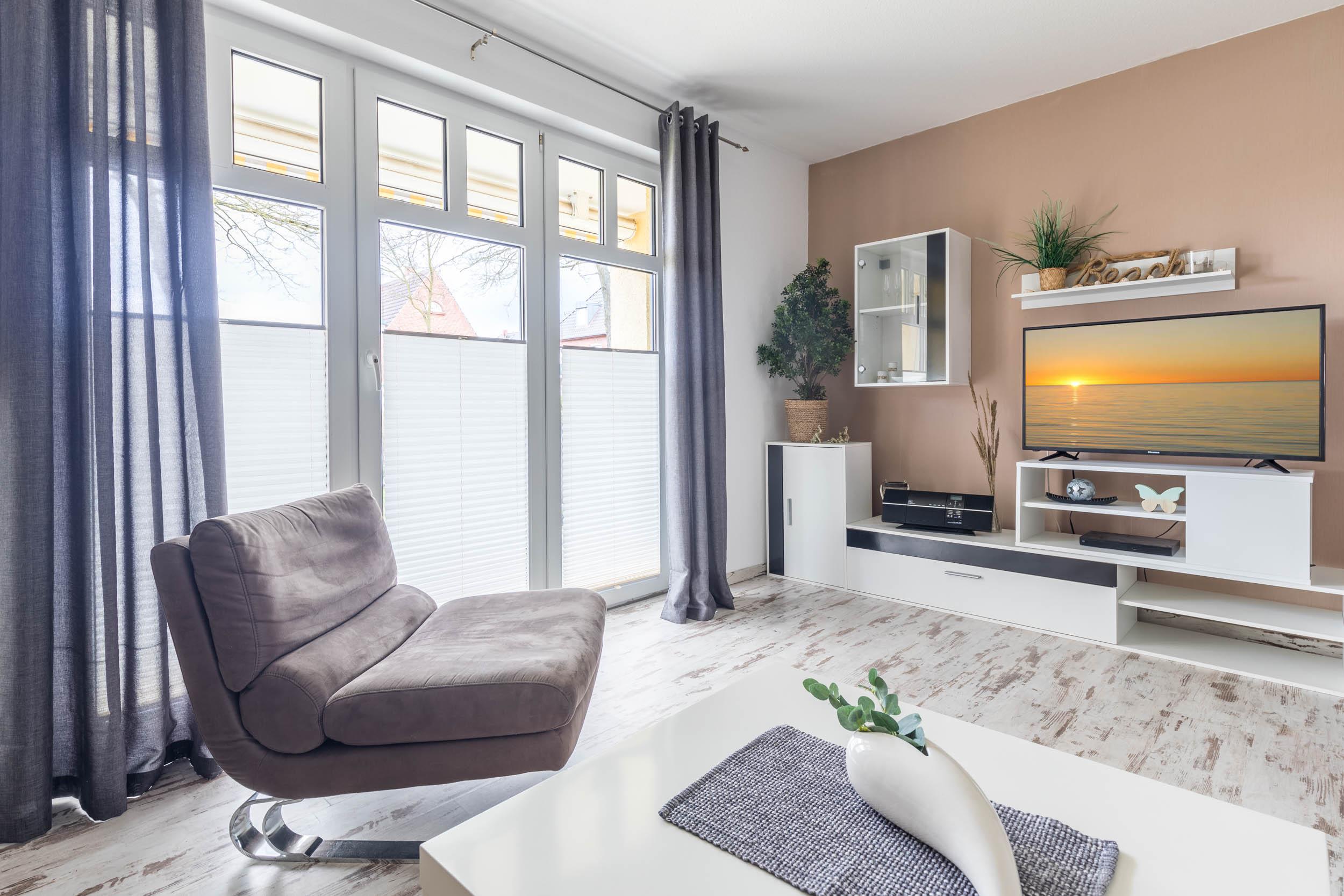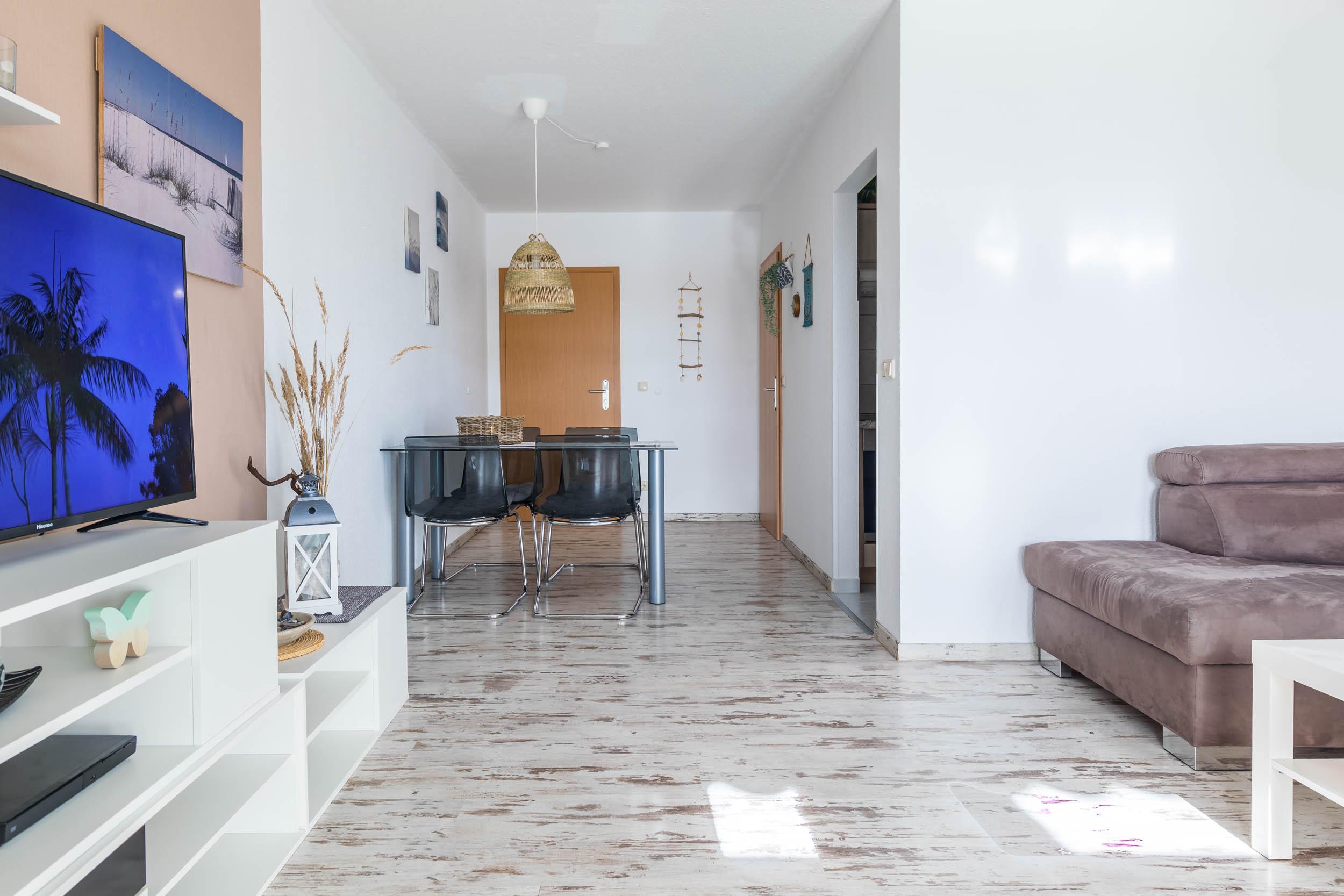 Diese ca. 56qm große, moderne 2-Zimmer-Ferienwohnung liegt im Erdgeschoss und bietet eine Ausstattung für bis zu 4 Gäste.