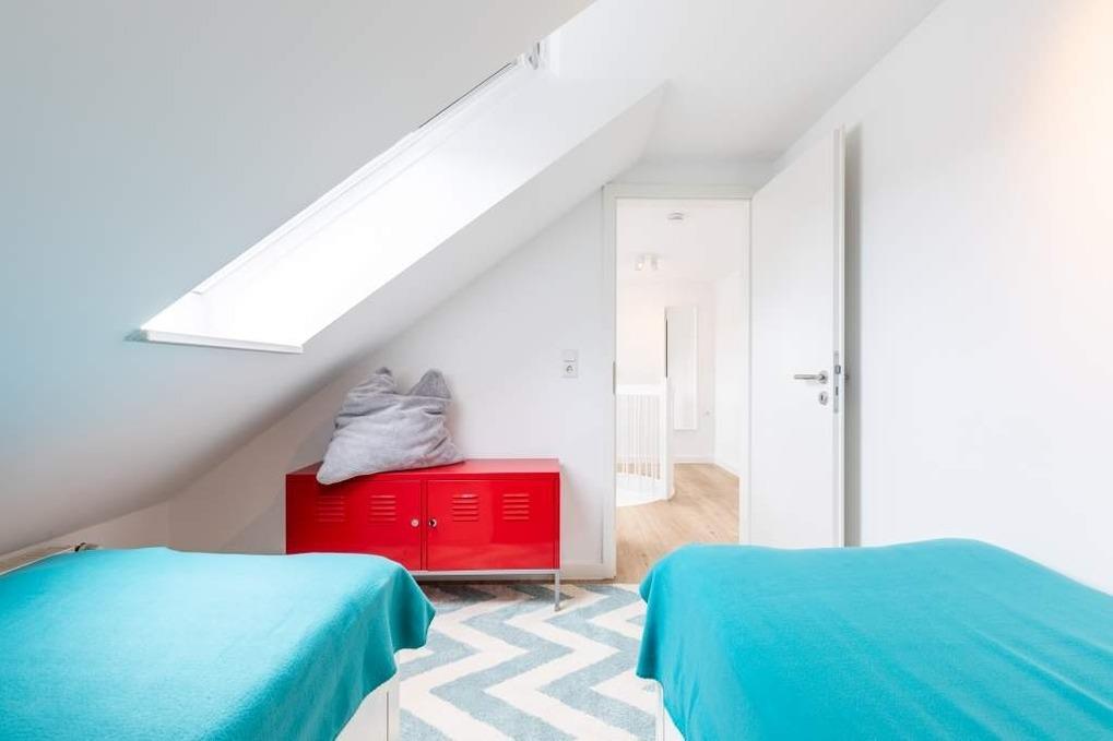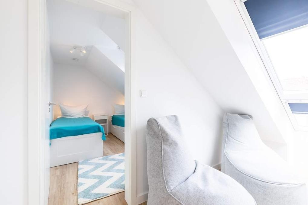 Die moderne 3-Zimmer-Ferienwohnung im 2.OG erstreckt sich mit rund 55qm Wohnfläche über zwei Wohnebenen und bietet eine familienfreundliche Ausstattung für bis zu 4 Gäste.