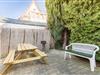 An langen Sommertagen steht Ihnen auf der Rückseite des Grundstückes ein zweiter Platz als Terrasse zur Verfügung. Um auf die Terrasse zu gelangen, verlassen Sie die Ferienwohnung durch den Hauseingang und laufen zum Ende des Grundstücks.