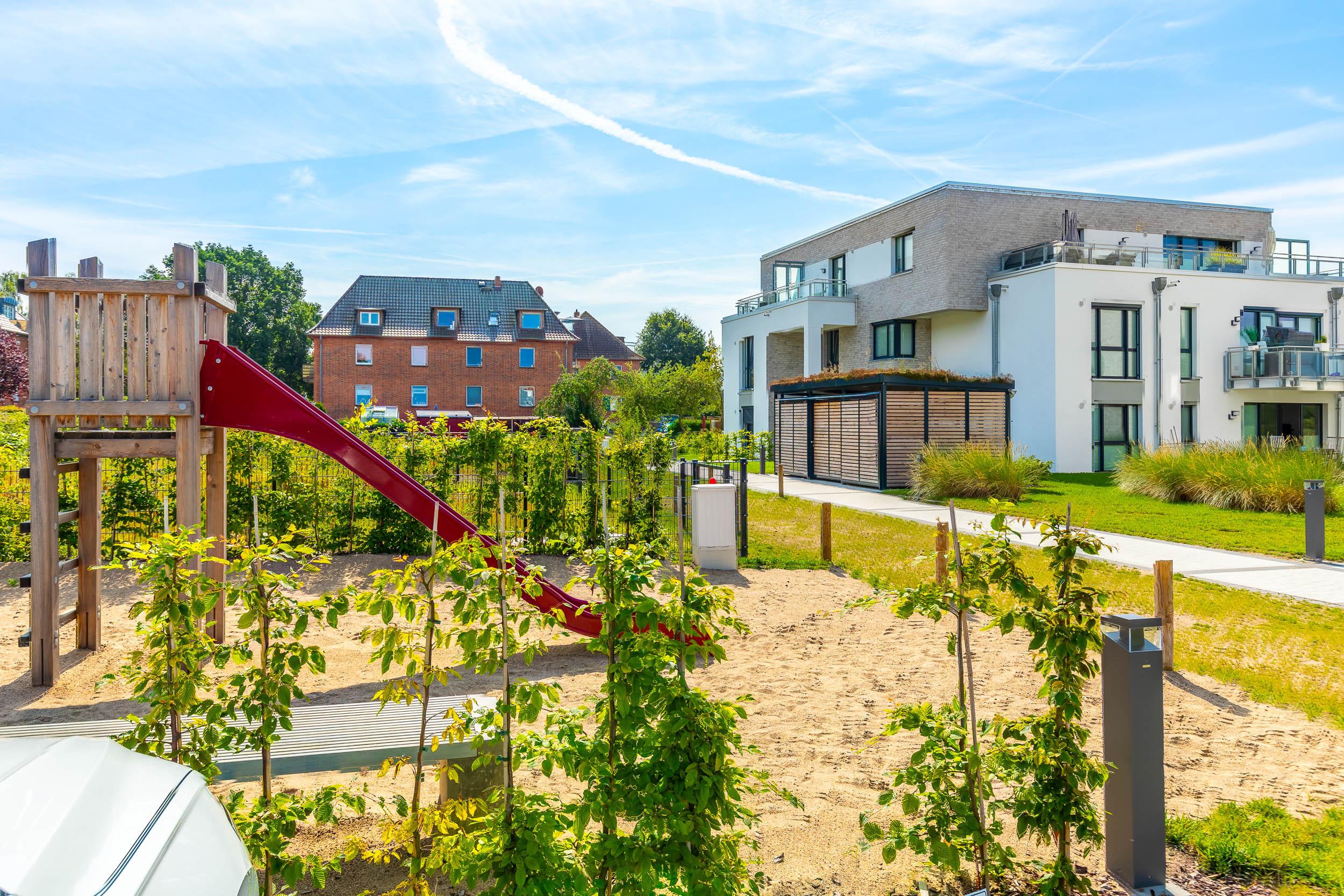 Es handelt sich um eine Nichtraucher-Wohnung. Das Haus ist mit einem Fahrstuhl ausgestattet, so erreichen Sie bequem jede Etage. Für unsere kleinsten Gäste stehen ein Reisebettchen mit passender Matratze, Kindergeschirr sowie ein Hochstuhl in der Wohnung zur kostenfreien Nutzung bereit. Die beiden Schlafzimmer lassen sich mittels einem schwarzen Rollo abdunkeln. Zudem befinden sich an den Fenstern der Schlafzimmer Fliegengitter für einen erholsamen Schlaf. Kinder können sich auf dem kleinen Spielplatz auf dem eingezäunten Gelände der Anlage austoben.