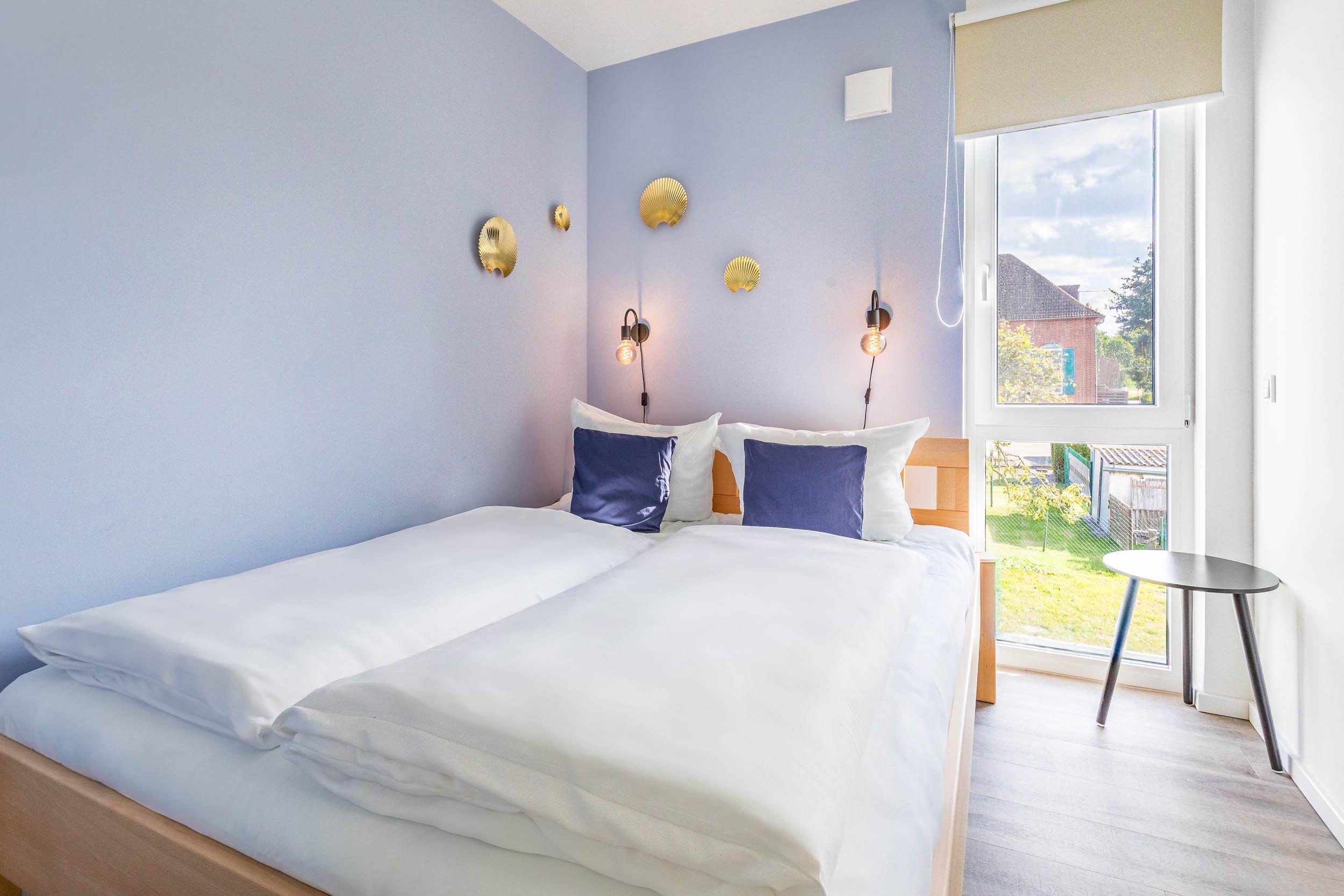 Die moderne Wohnung verfügt über zwei separate Schlafzimmer, die beide mit gemütlichen Echtholzbetten ohne Metall ausgestattet sind. Das größere Schlafzimmer besitzt ein großzügiges Doppelbett (180x200cm/ Höhe 60cm) und einen praktischen Kleiderschrank, während das zweite Schlafzimmer mit einem Doppelbett (160x200cm/ Höhe 57cm) und einem weiteren Fernseher (Magenta!) versehen ist.