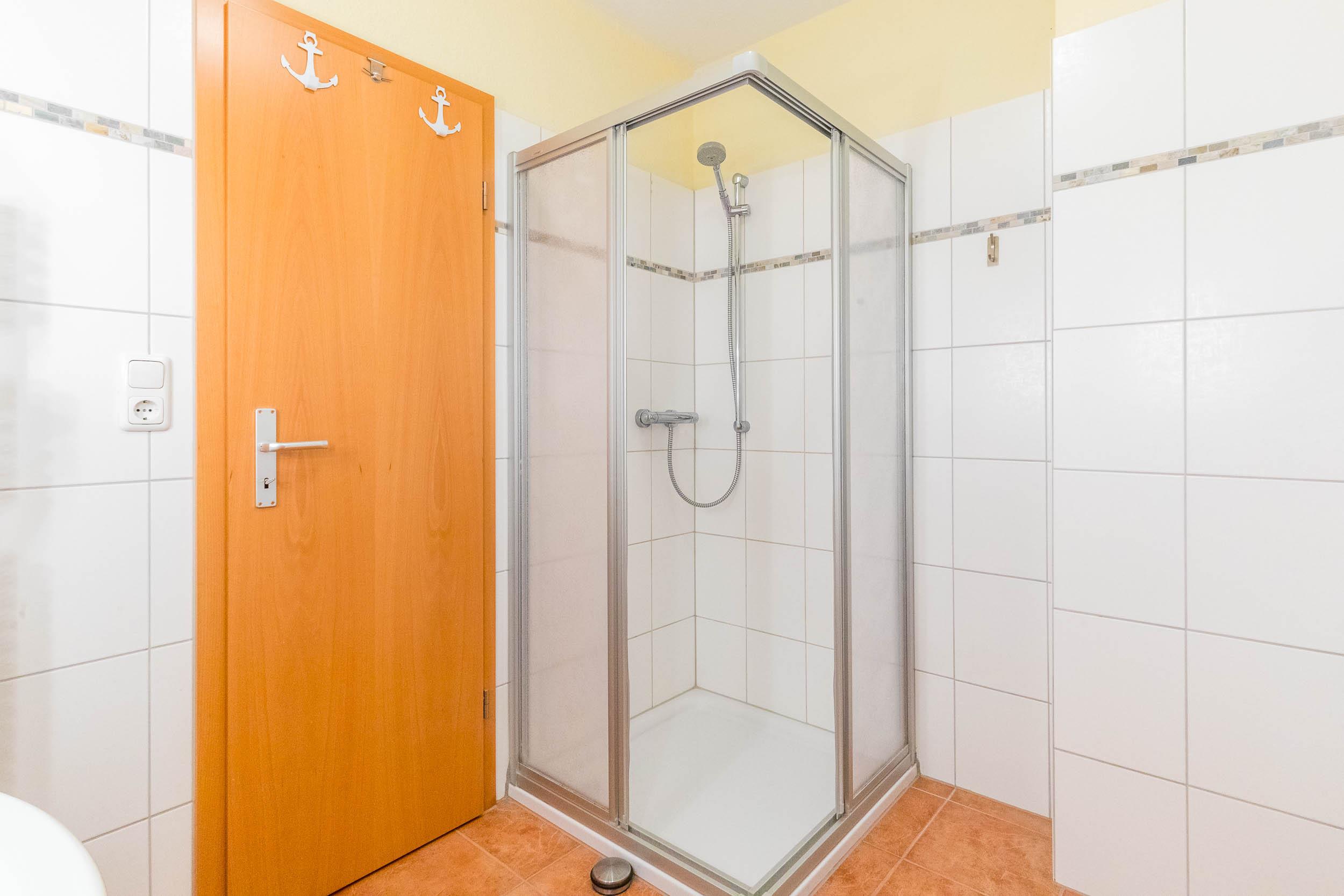 Das innenliegende Duschbad ist mit Dusche und WC ausgestattet. Die Handtuchheizung sorgt zusätzlich für wohlige Wärme.