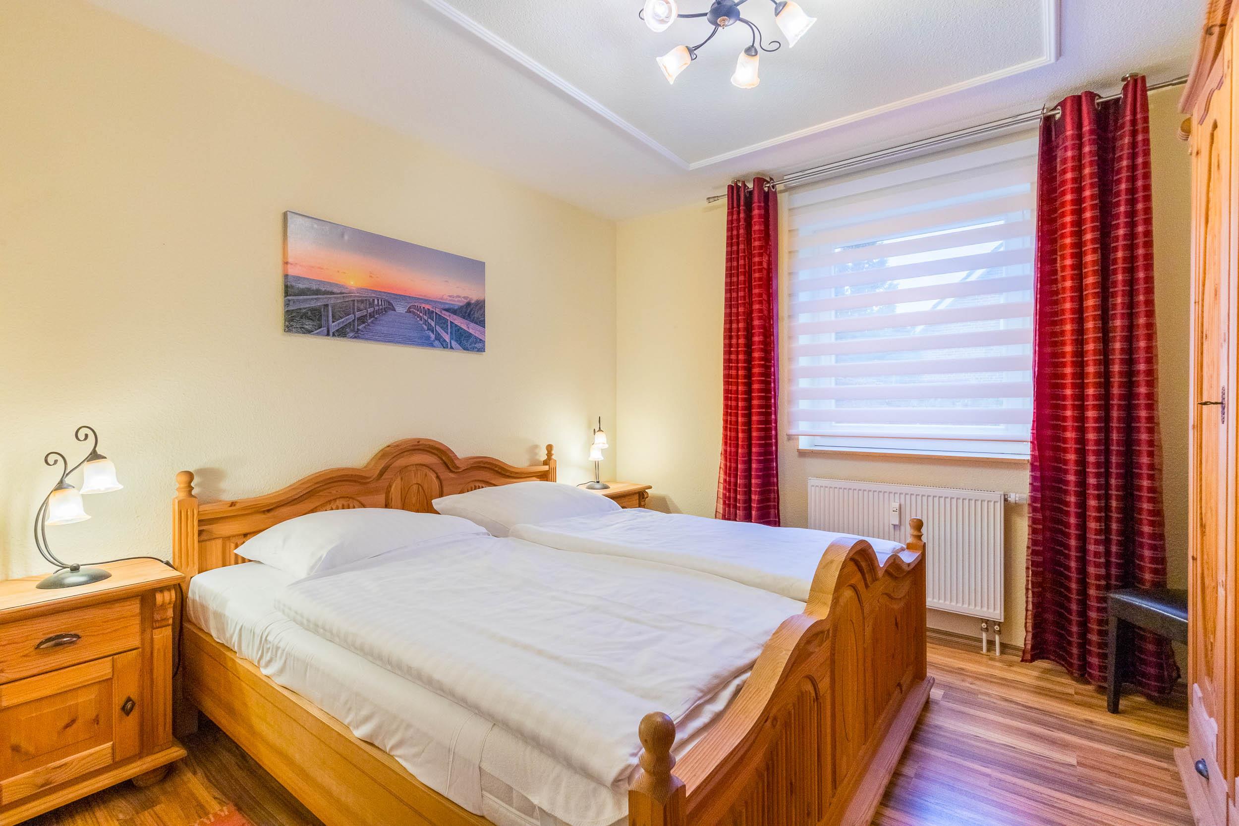 Das Schlafzimmer ist mit einem bequemen Doppelbett (180x200m/Höhe 57cm) und ein großem Kleiderschrank eingerichtet.