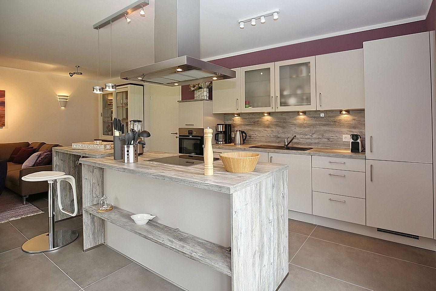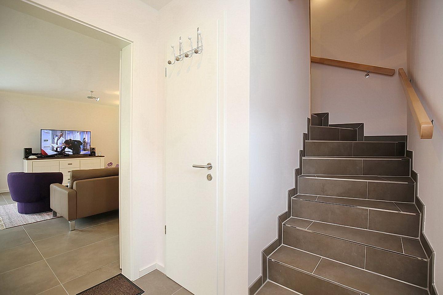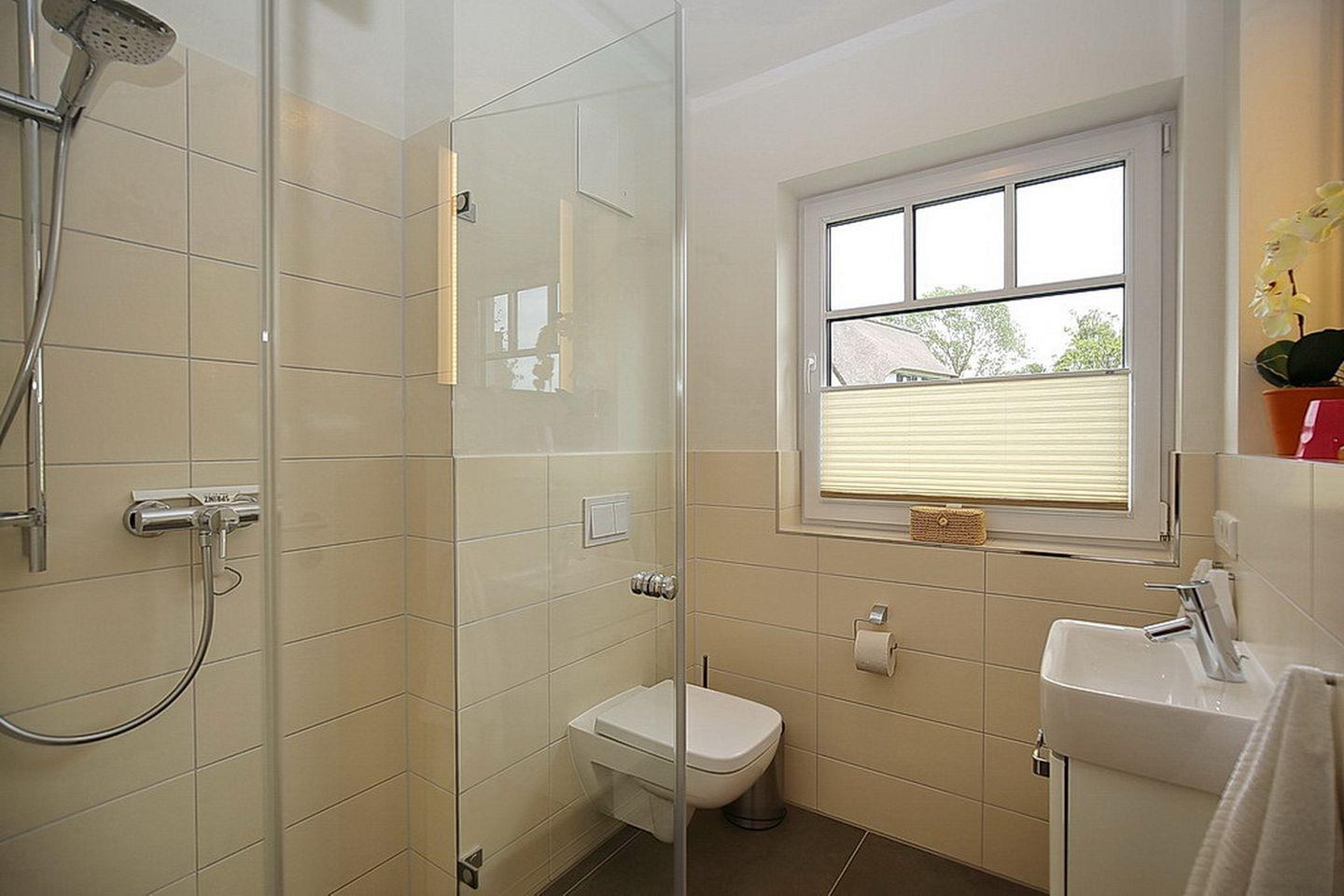 Im Erdgeschoss des Ferienhauses befinden sich der Wohnraum, eine gemütliche Essgruppe, ein Sofa sowie die integrierte Küchenzeile mit Kochinsel. Auch das Gäste-WC mit bodengleicher Dusche sowie der Eingangsbereich befinden sich hier. Der Zugang zur großzügigen Süd-West Terrasse mit einem Strandkorb und zwei Sonnenliegen erfolgt direkt vom Wohnzimmer aus. Für deine Unterhaltung stehen dir ein Flachbild-TV, ein DVD-Player und eine Stereoanlage zur Verfügung. In der modernen Küchenzeile findest du einen Geschirrspüler, eine Mikrowelle, einen Induktionsherd mit Backofen, einen Kühlschrank mit Gefrierfach und eine Nespressomaschine vor.