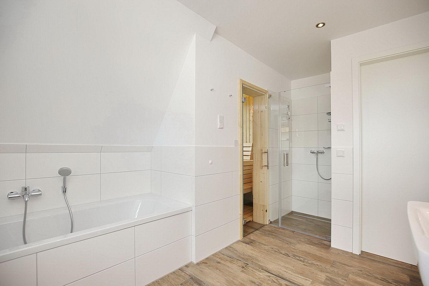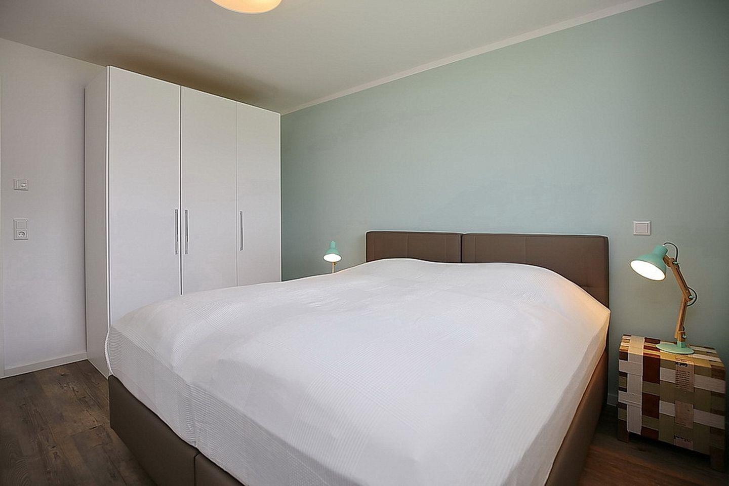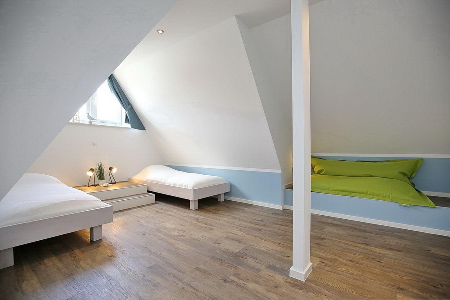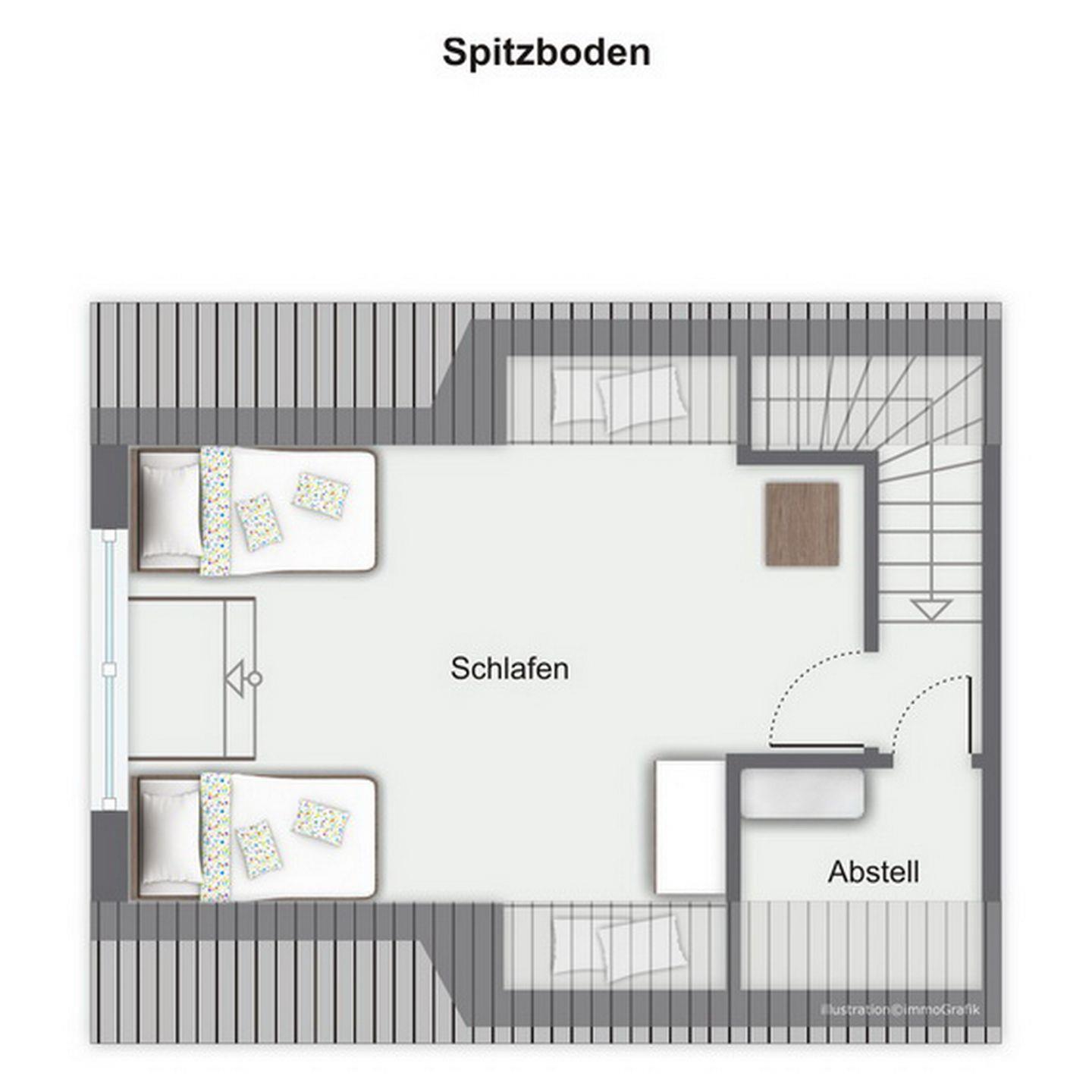 In den zwei Schlafzimmern im Dachgeschoss stehen dir ein Doppelbett (1x 180 cm x 210 cm), zwei zusammenstehende Einzelbetten (90 cm x 210 cm) und Schränke mit ausreichend Platz für deine Urlaubsgarderobe zur Verfügung. Des Weiteren verfügt das Dachgeschoss über ein Bad mit Badewanne, Dusche, Sauna und den Flur. Im Spitzboden befindet sich ein weiteres Schlafzimmer mit zwei Einzelbetten (90 x 200 cm). Zwei Schlafzimmer verfügen zusätzlich über jeweils einen Fernseher.