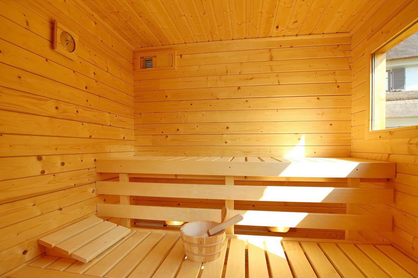 Auf dem Grundstück befindet sich nah am Haus die eigene kostenpflichtige Blockhaussauna (den Schlüssel erhältst du in der Rezeption). Hier genießt du entspannende Saunagänge. Für sommerliche Grillabende steht im Außenbereich des Hauses der Elektro - Grill der Marke Char-Broil® bereit.