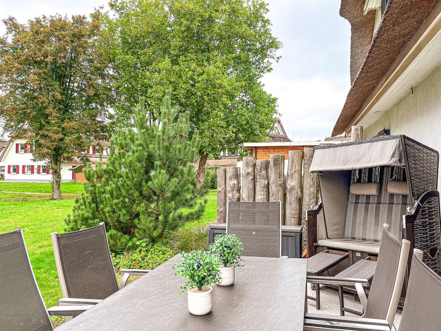 Auf drei Etagen vereint das Ferienhaus mit Reetdach einen Wohnraum mit Zugang zur Terrasse, drei Schlafzimmer und zwei Bäder. Zusammen mit dem Spitzboden hast du hier auf 105 m² viel Platz für deinen Urlaub. Erstes Strandflair bietet dir der eigene Strandkorb auf der Terrasse.