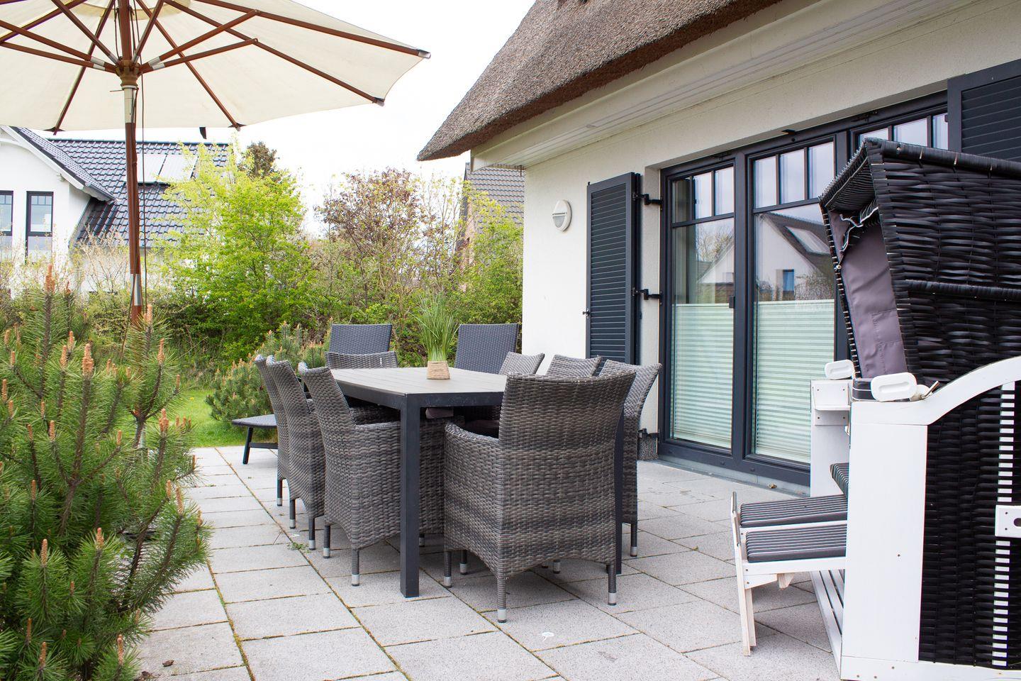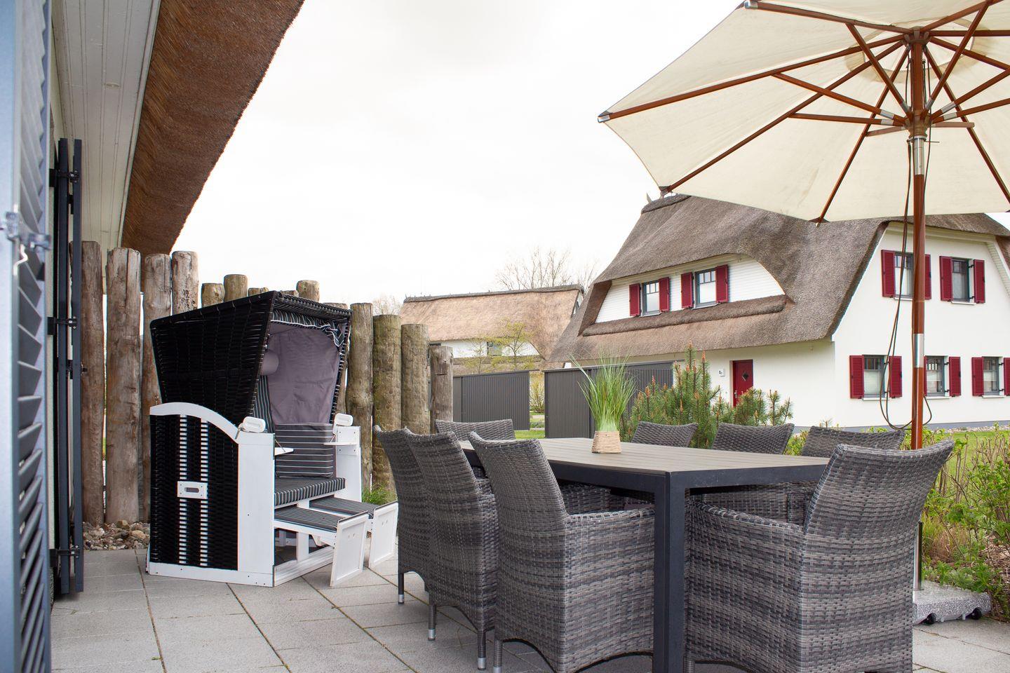 Das Reethaus Am Mariannenweg 05b in Boltenhagen bietet strandnahen Komfort mit Terrasse und moderner Ausstattung für sechs Personen.