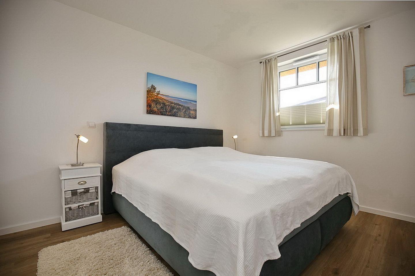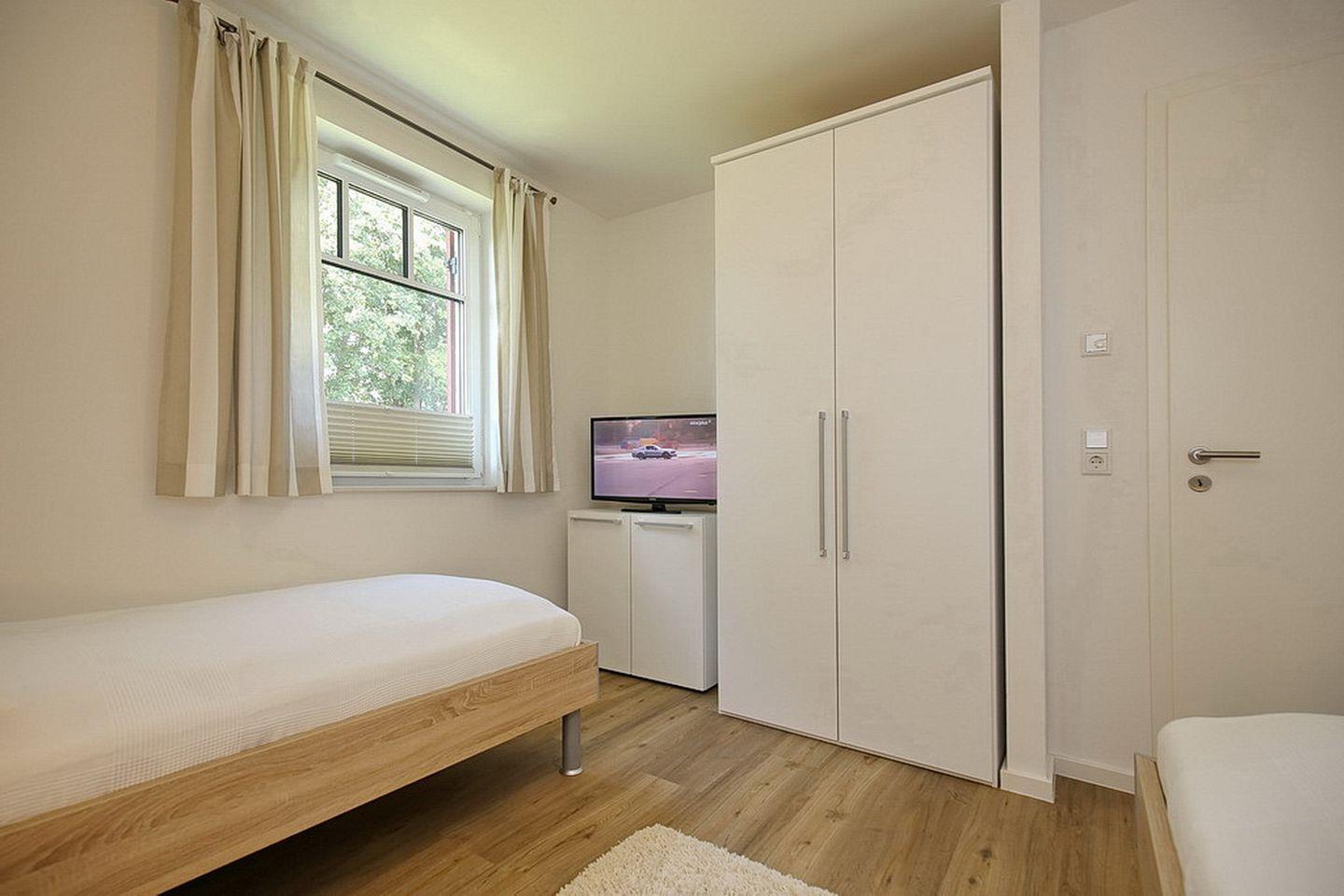 In den zwei Schlafzimmern im Obergeschoss stehen dir ein Boxspringbett mit durchgehender Matratze (180 x 200 cm) , zwei Einzelbetten (90 x 200 cm) und Schränke mit ausreichend Platz für deine Urlaubsgarderobe zur Verfügung. Außerdem zu deiner Unterhaltung ein Fernseher. Des Weiteren verfügt das Obergeschoss über ein Bad mit Badewanne und Waschbecken und WC.