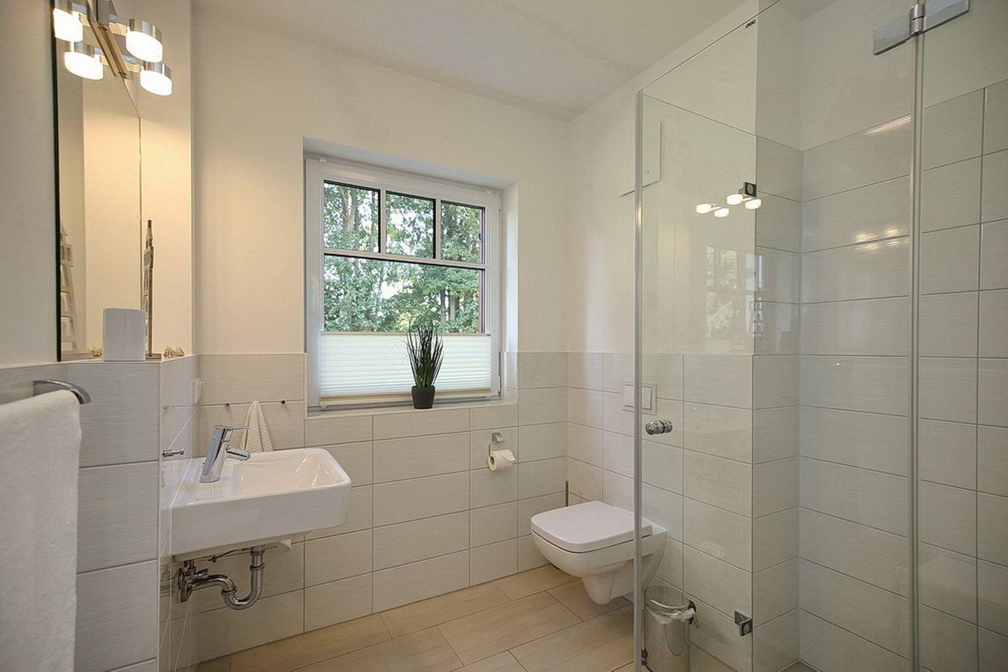 Auch das Gäste-WC mit Dusche sowie der Eingangsbereich befinden sich im Erdgeschoss.