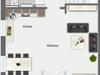 Im Erdgeschoss des Ferienhauses befinden sich der Wohnraum, eine gemütliche Essgruppe sowie die integrierte Küchenzeile. Auch das Duschbad sowie der Eingangsbereich befinden sich hier.