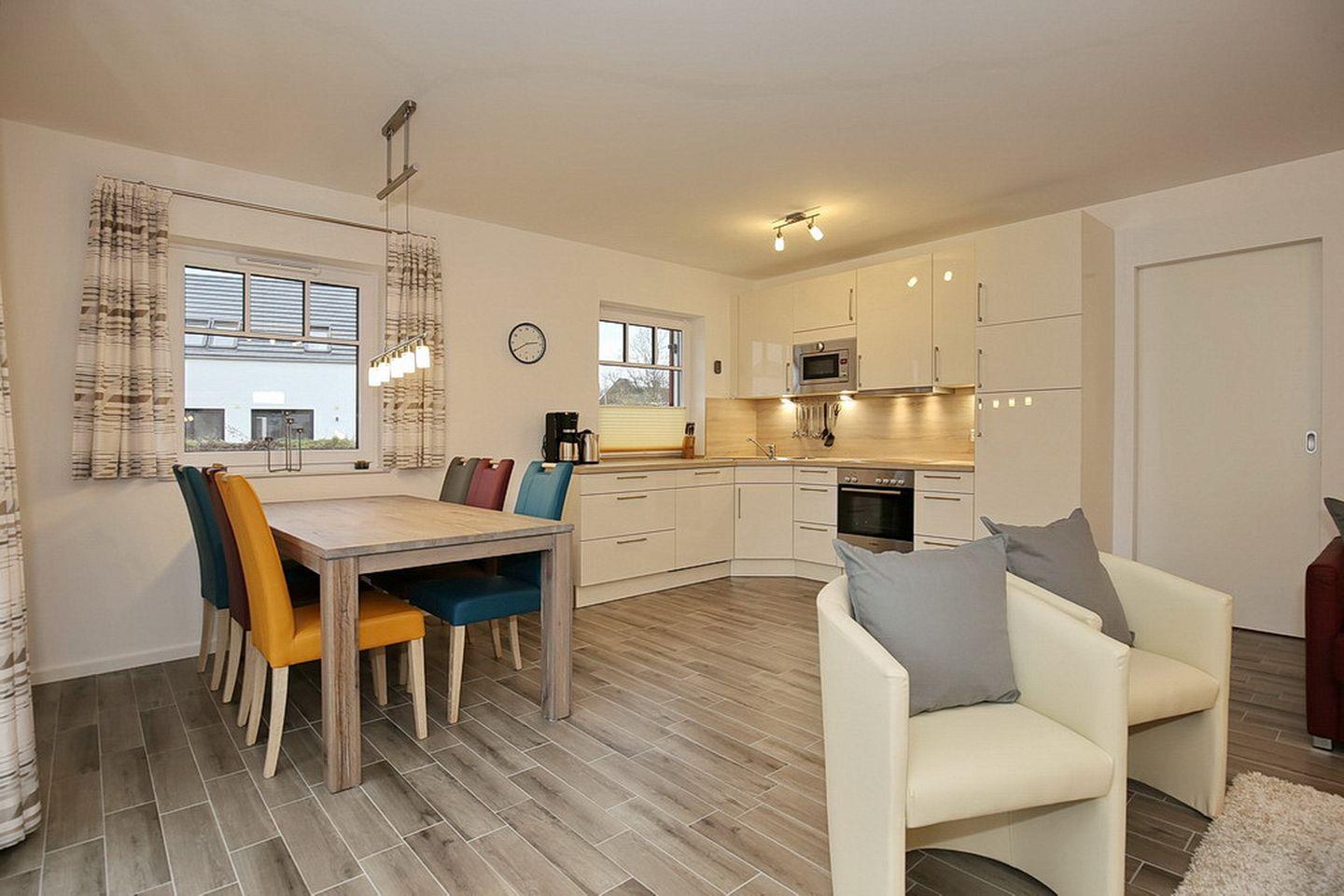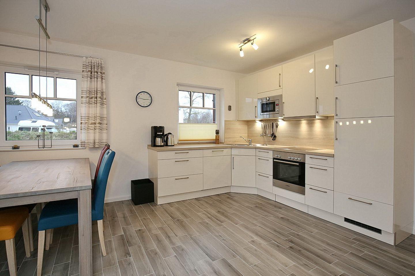 Der Zugang zur großzügigen, mit einem zusätzlichen Strandkorb möblierten West-Terrasse erfolgt direkt vom Wohnzimmer aus. Die Morgensonne kannst du auf dem gepflasterten Freisitz hinter dem Haus (Eingangsbereich) mit Sitzgelegenheiten genießen. In der hochwertig eingerichteten Küchenzeile findest du einen Geschirrspüler, eine Mikrowelle, ein 4- Platten- Cerankochfeld und Backofen, einen Kühlschrank mit Gefrierfach, eine Kaffeemaschine und vieles mehr vor.