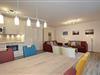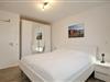 Modern und sehr geschmackvoll eingerichtet ist das Wohnzimmer. Hier findest du eine hochwertige Doppelschlafcouch (150 x 200 cm) vor. Im Wohnzimmerschrank kannst du zwei Personen deine Urlaubsgarderobe verstauen. Der Wohnbereich kann durch eine Schiebetür vom Eingangsbereich abgeschirmt werden. Für deine Unterhaltung sorgen ein Flachbild-TV, ein Blue-Ray-Player und eine Kompaktstereoanlage mit CD-Player und Bluetooth-Funktion.